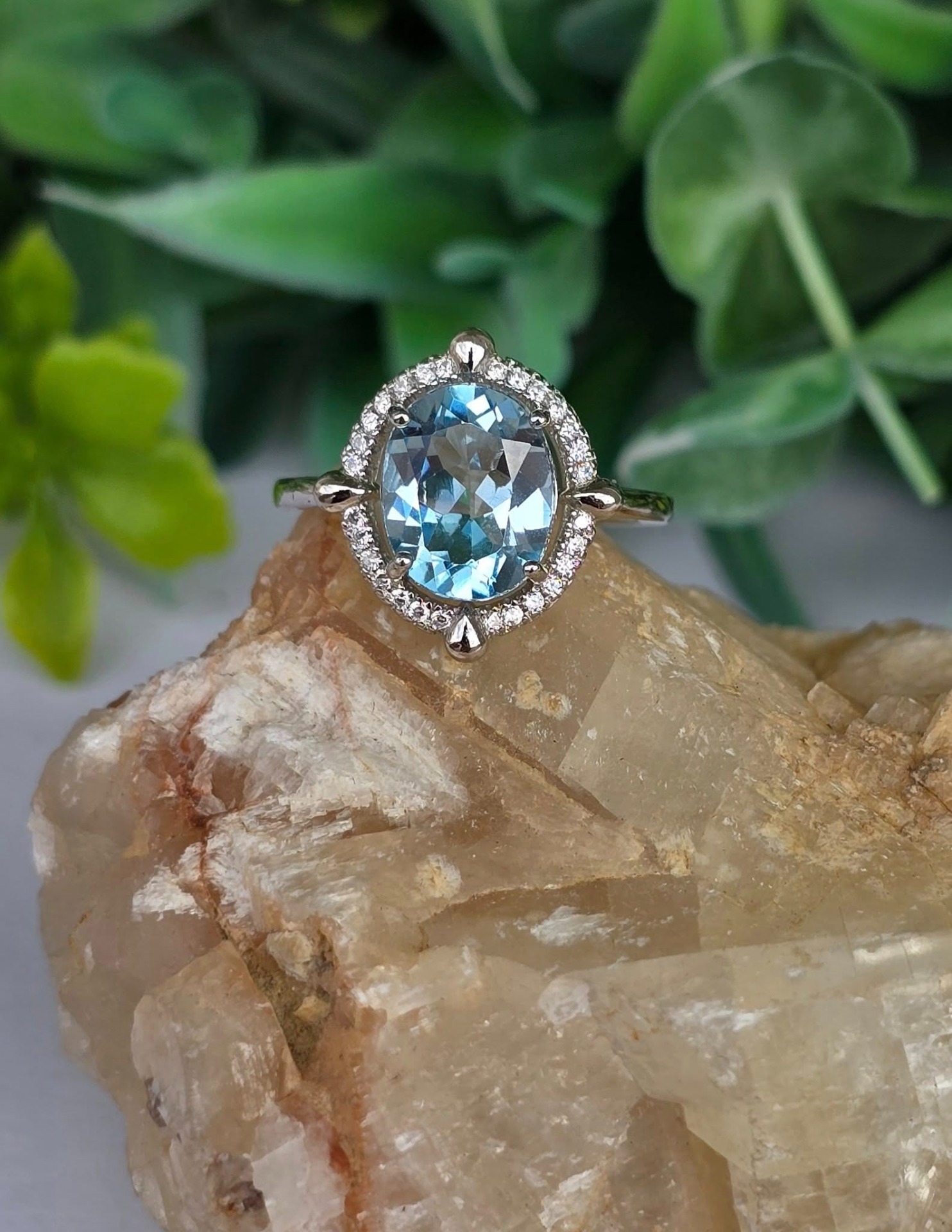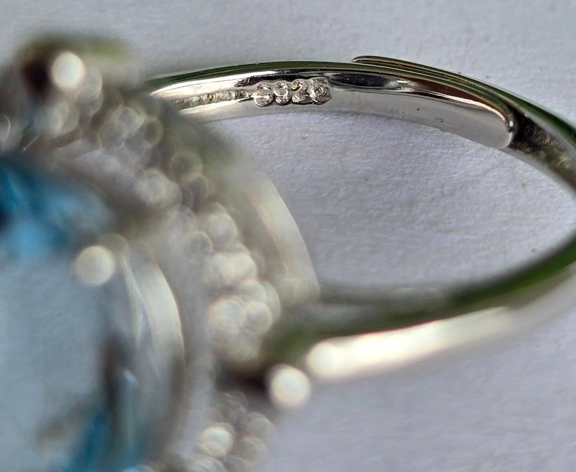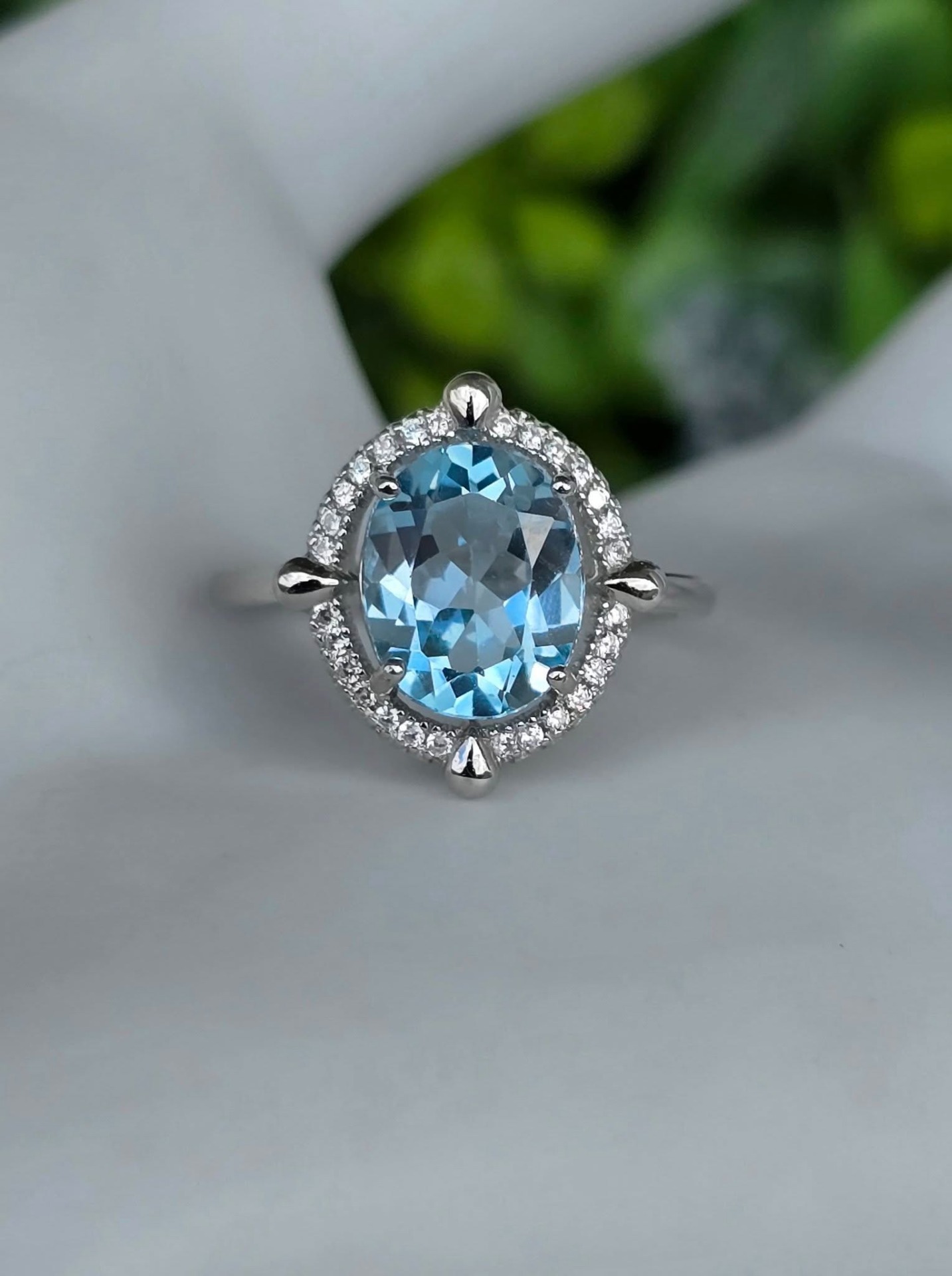 Inel contemporan din argint platinat, cu un superb topaz natural și pietre cubic zirconia.