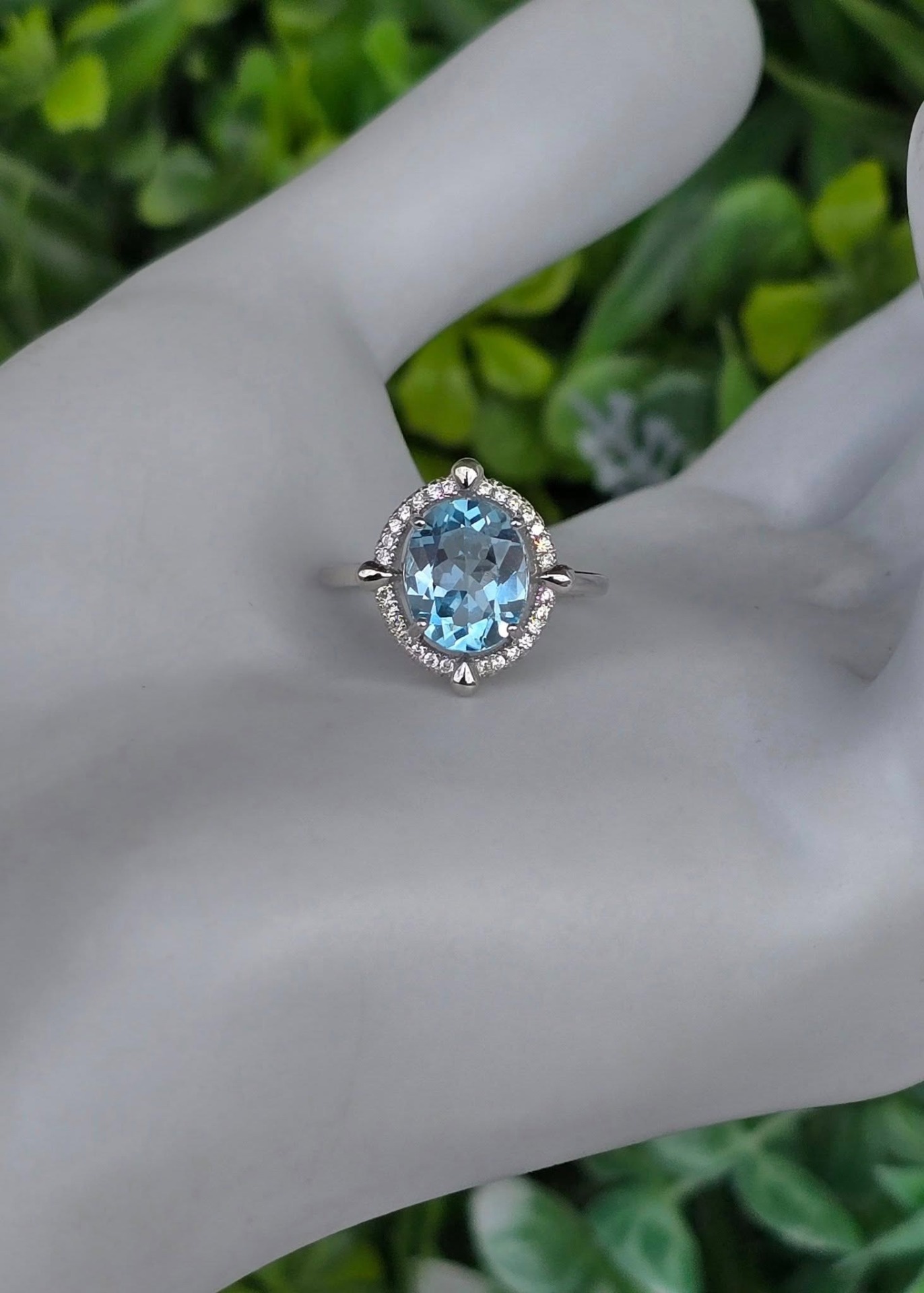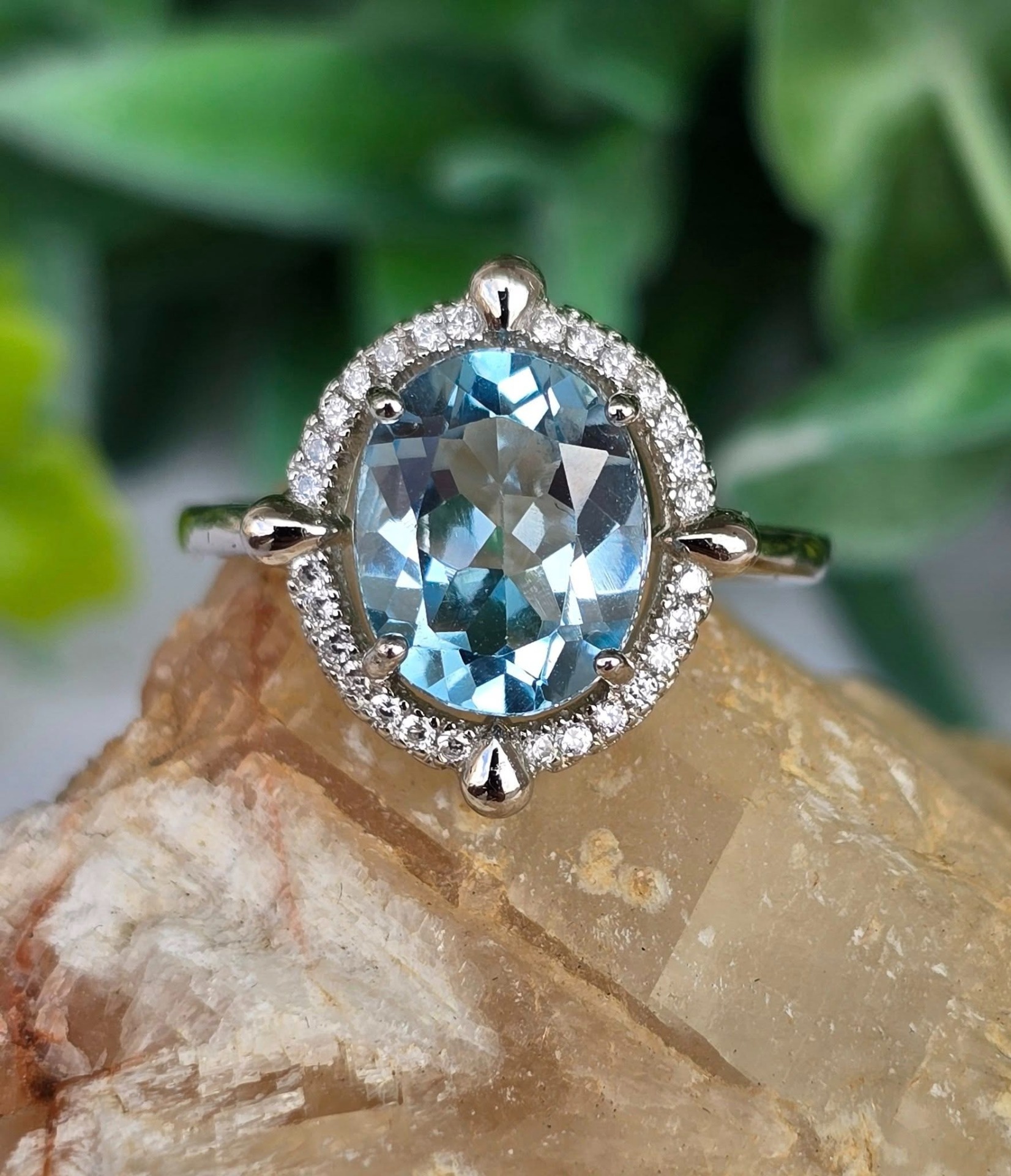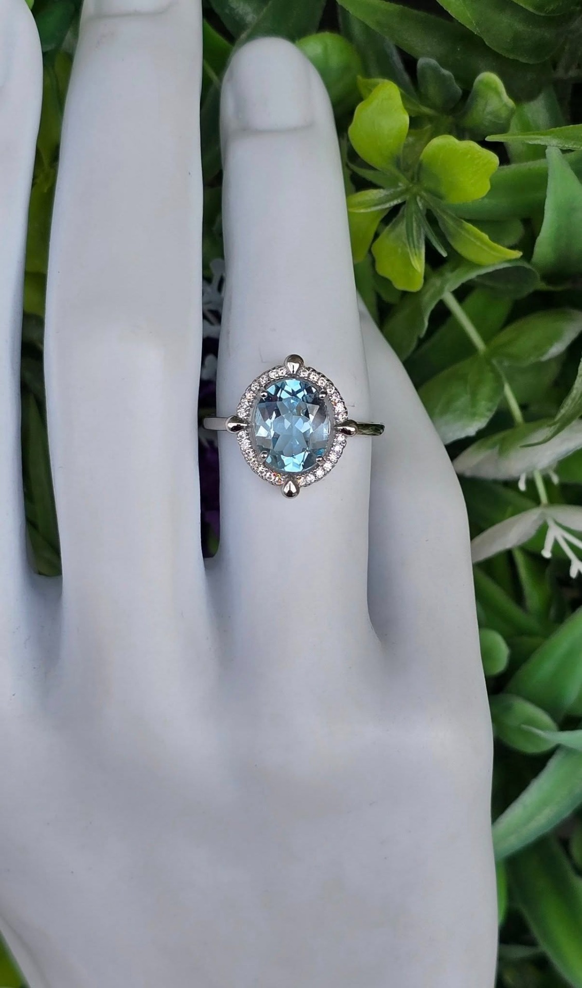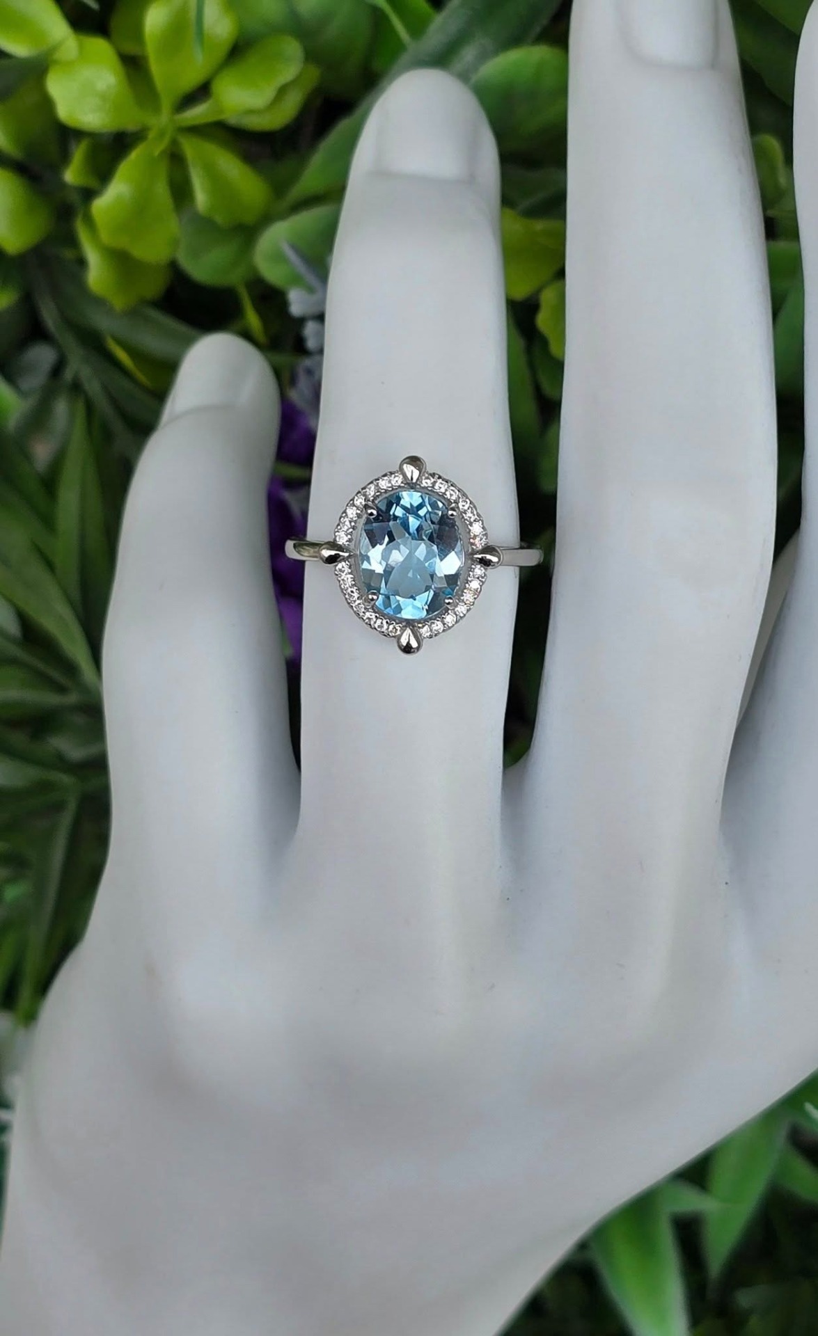 Inel contemporan din argint platinat, cu un superb topaz natural și pietre cubic zirconia.