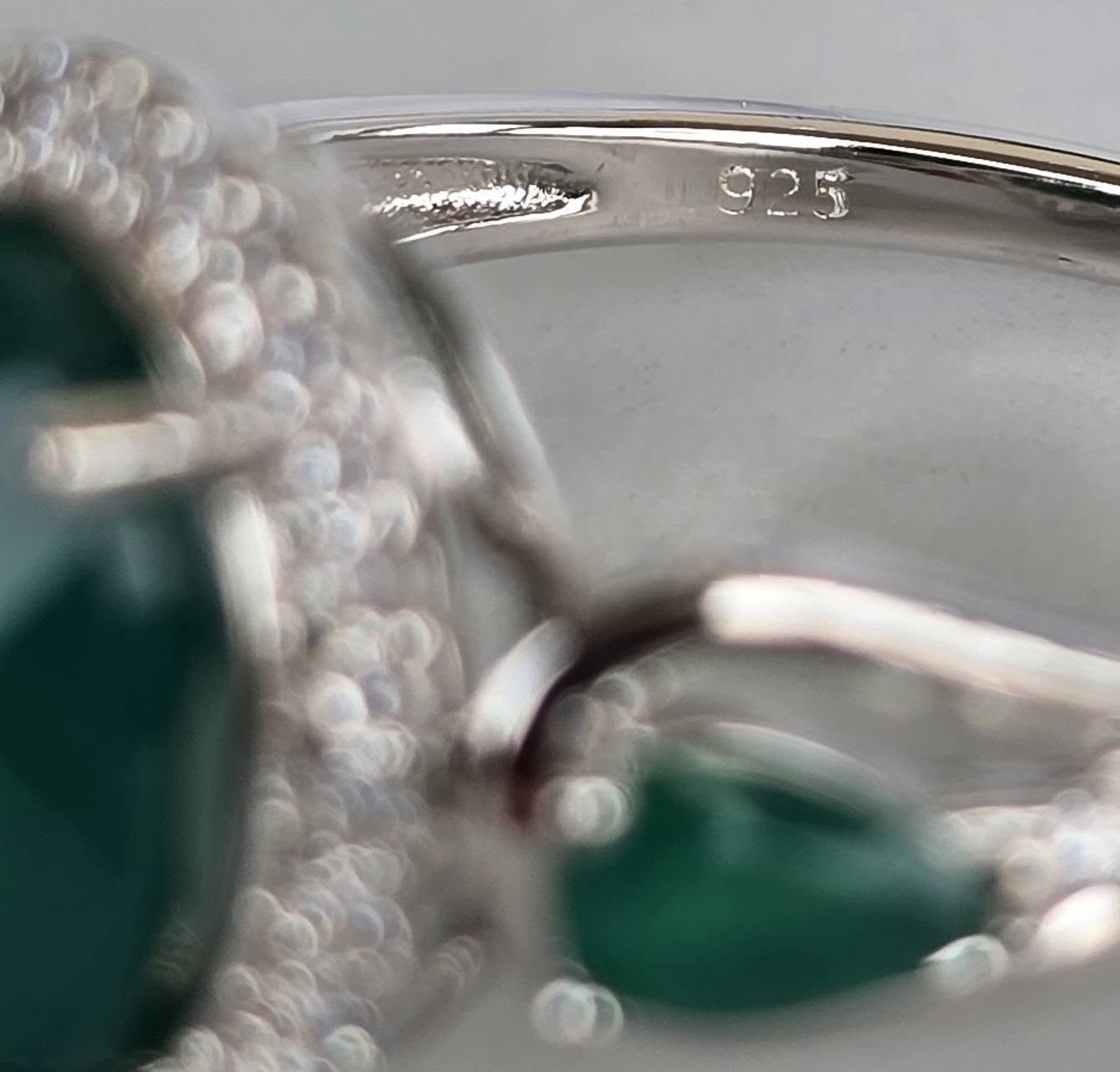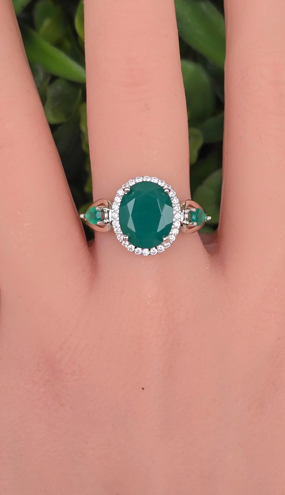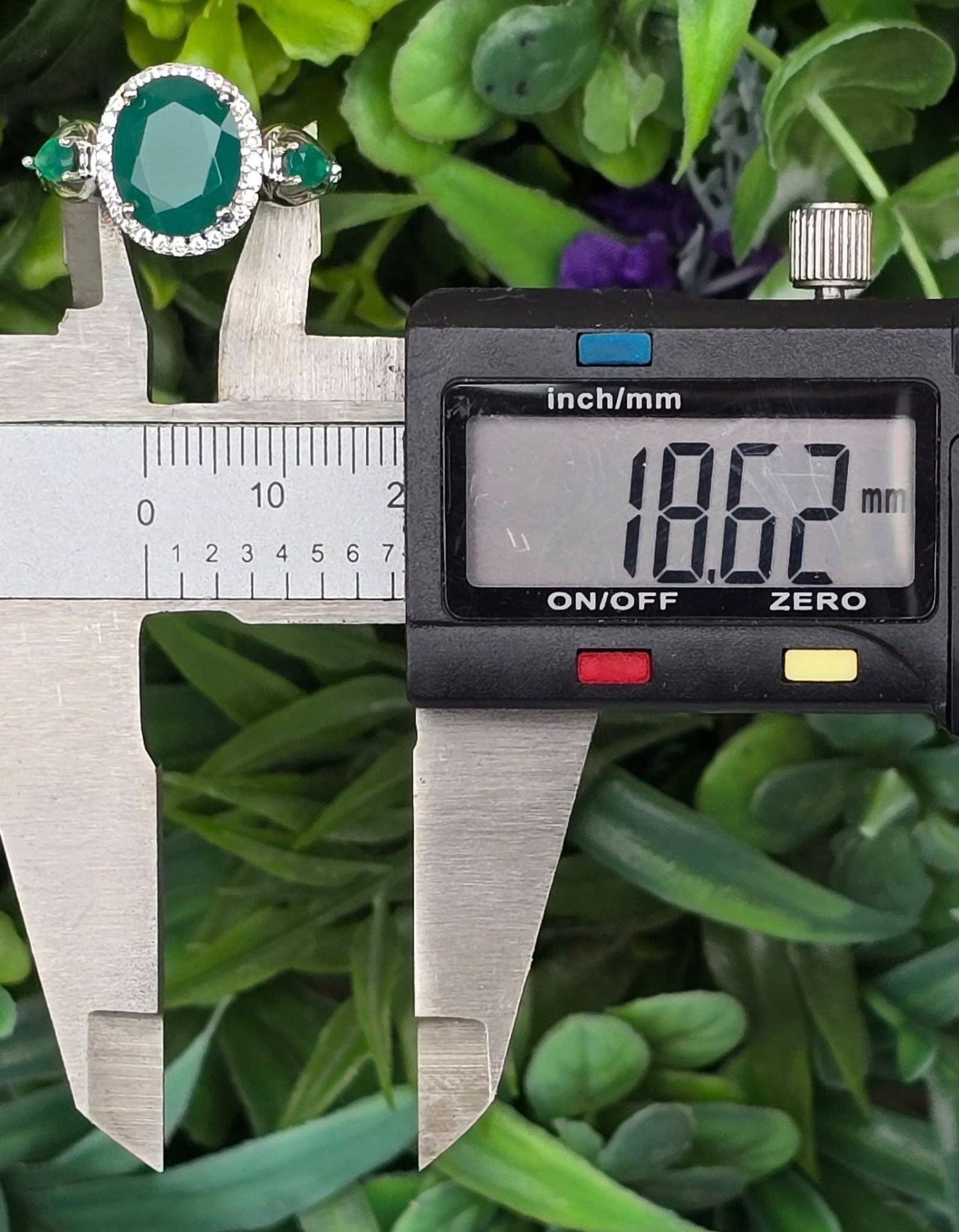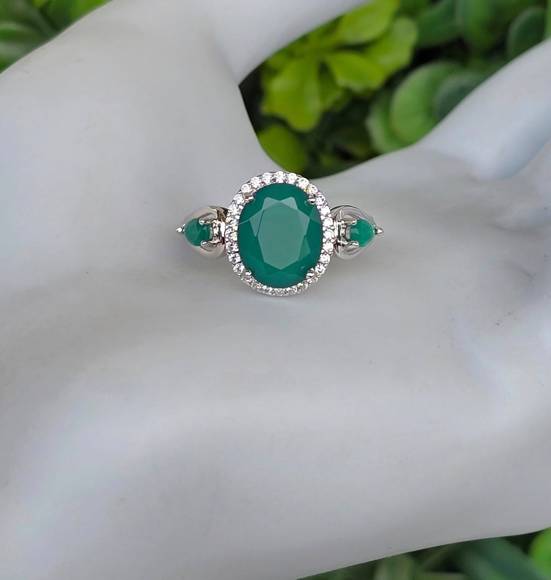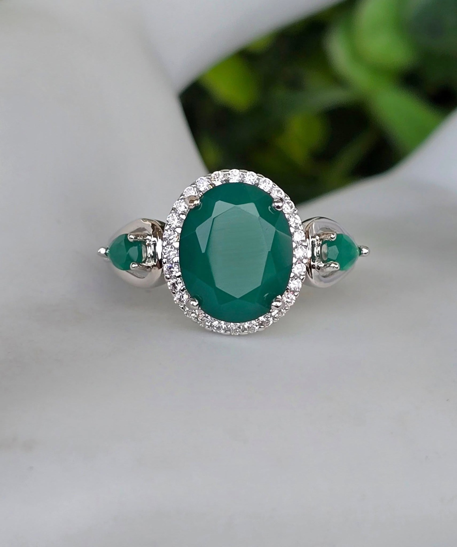 Inel contemporan spectaculos, din argint platinat, cu calcedonie verde naturală și pietre cubic zirconia.