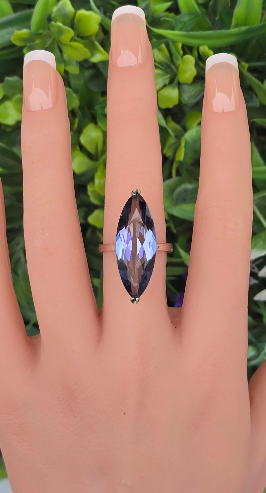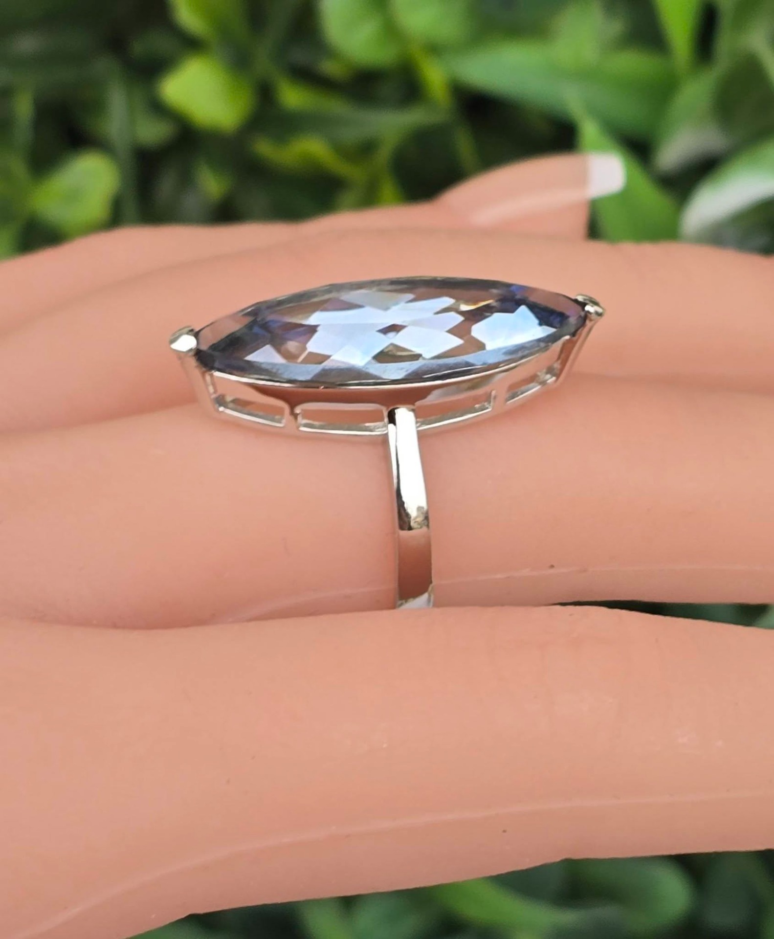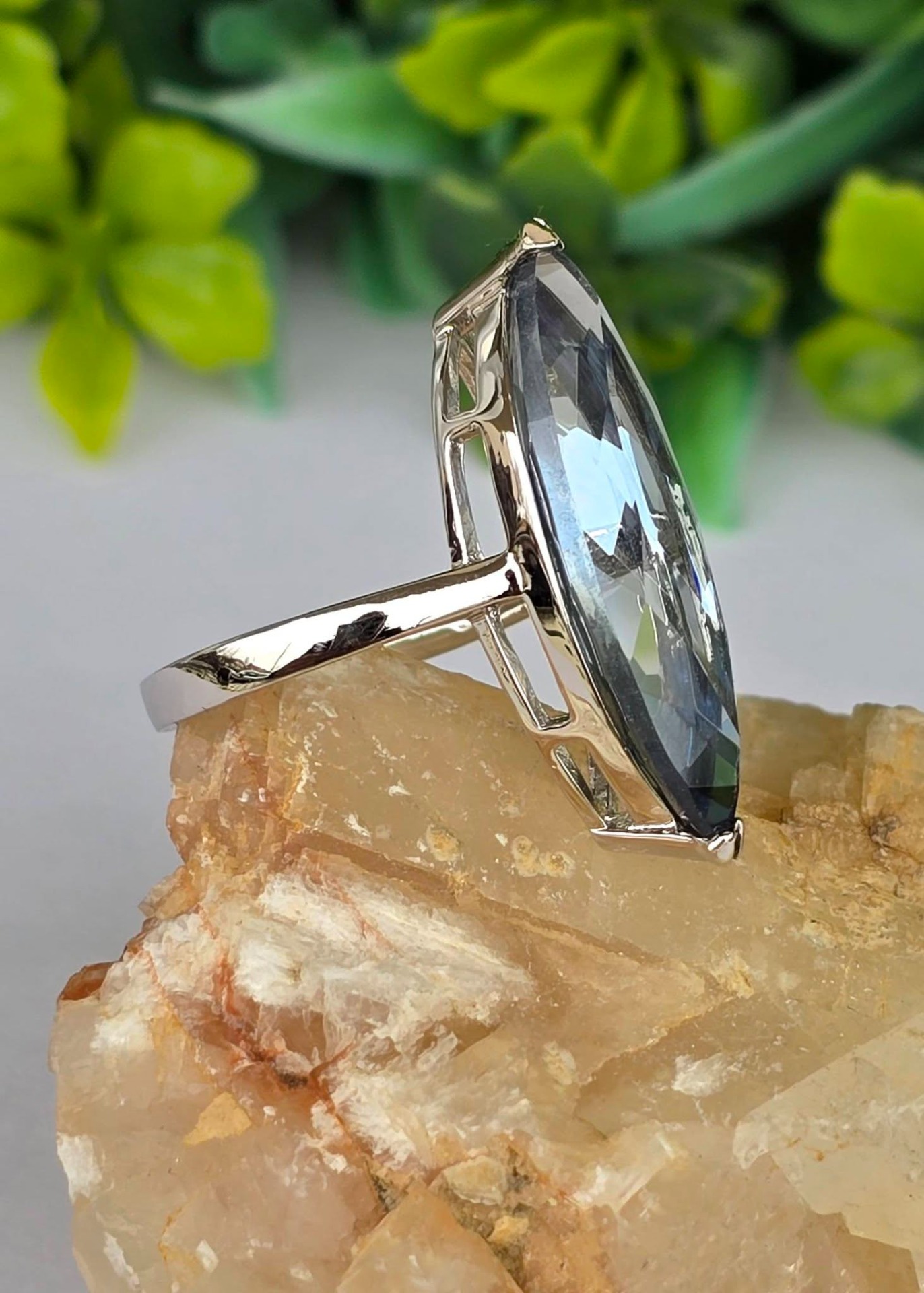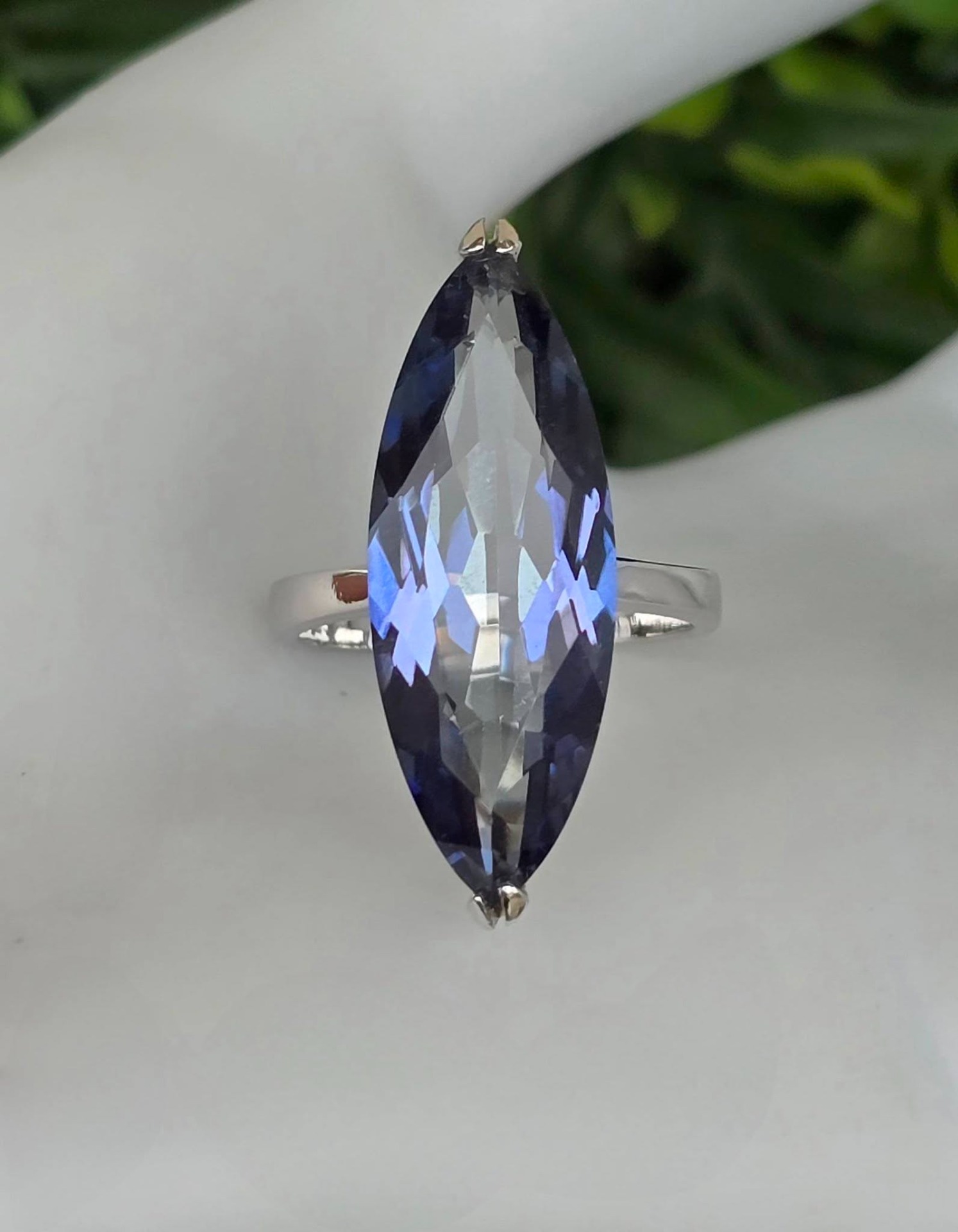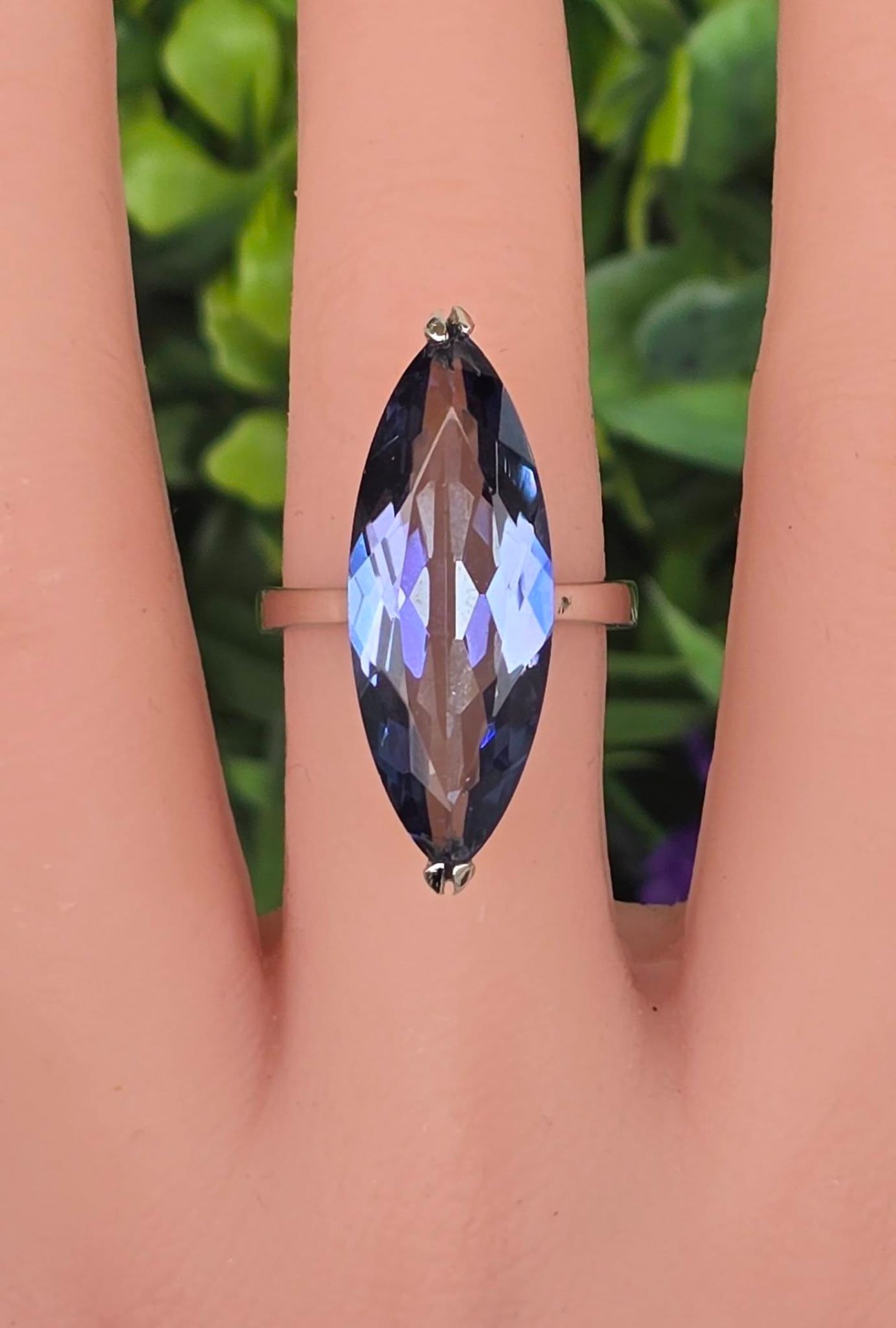 Inel contemporan spectaculos, din argint platinat, cu un superb safir de apă (iolit) natural.