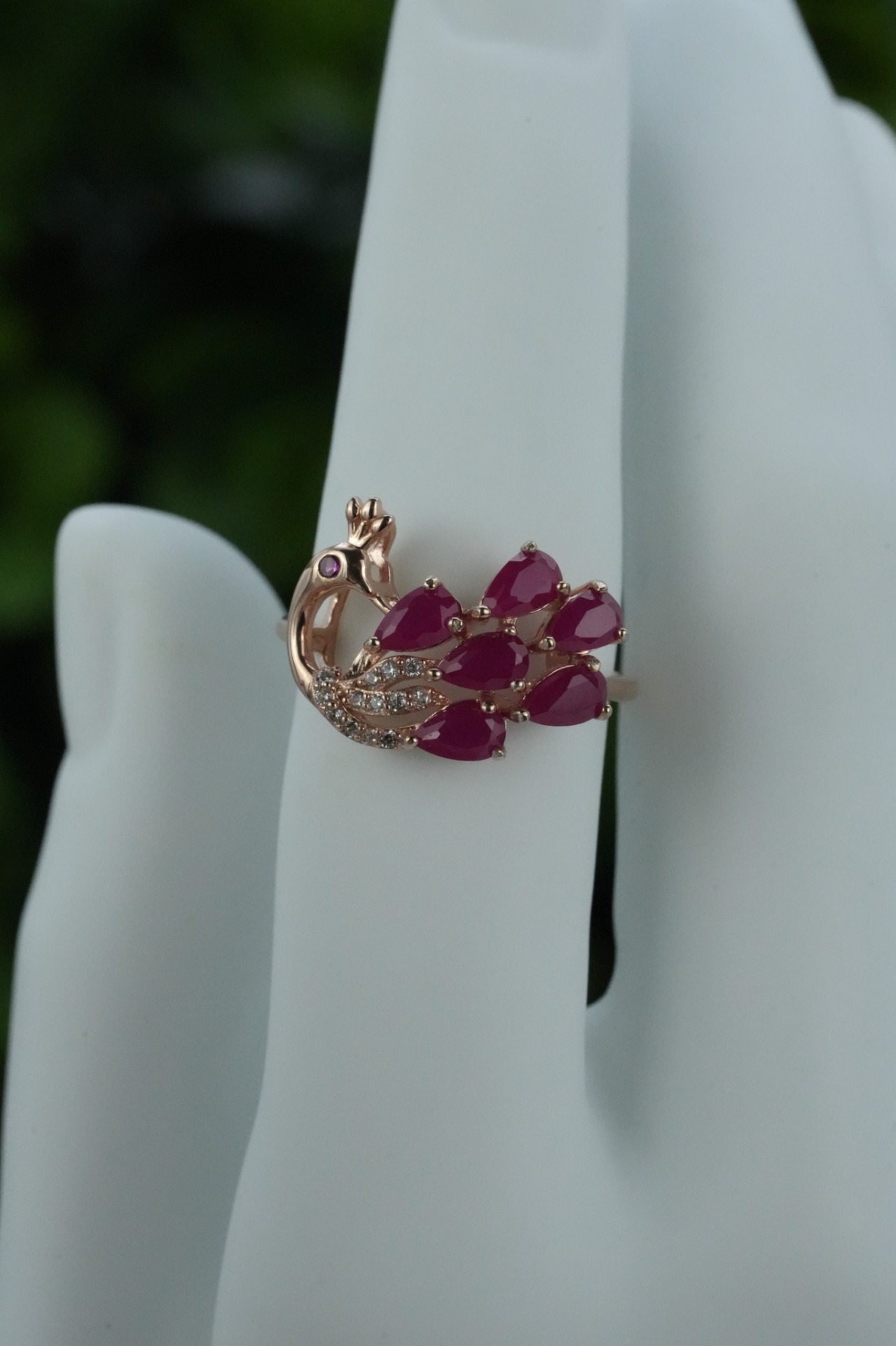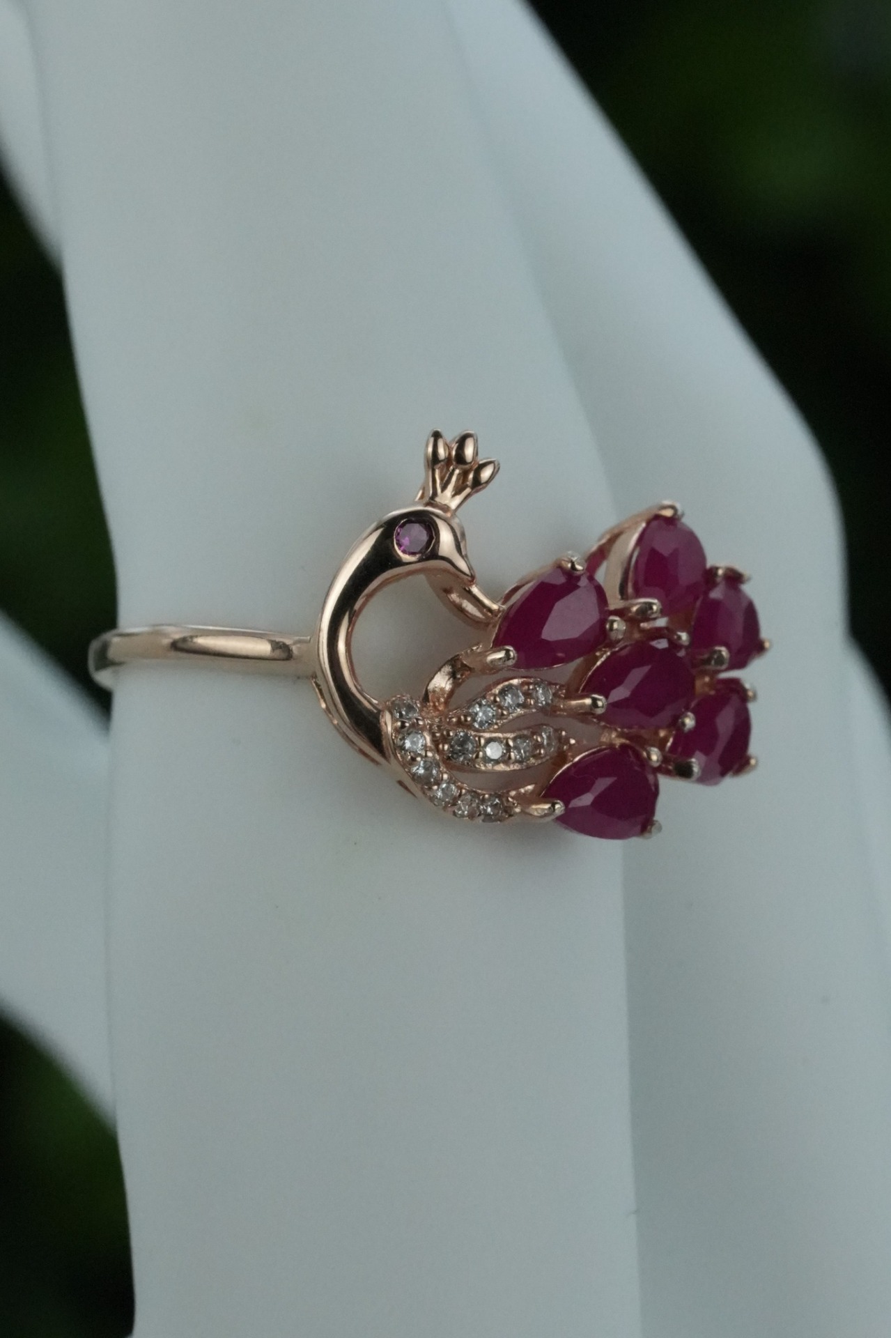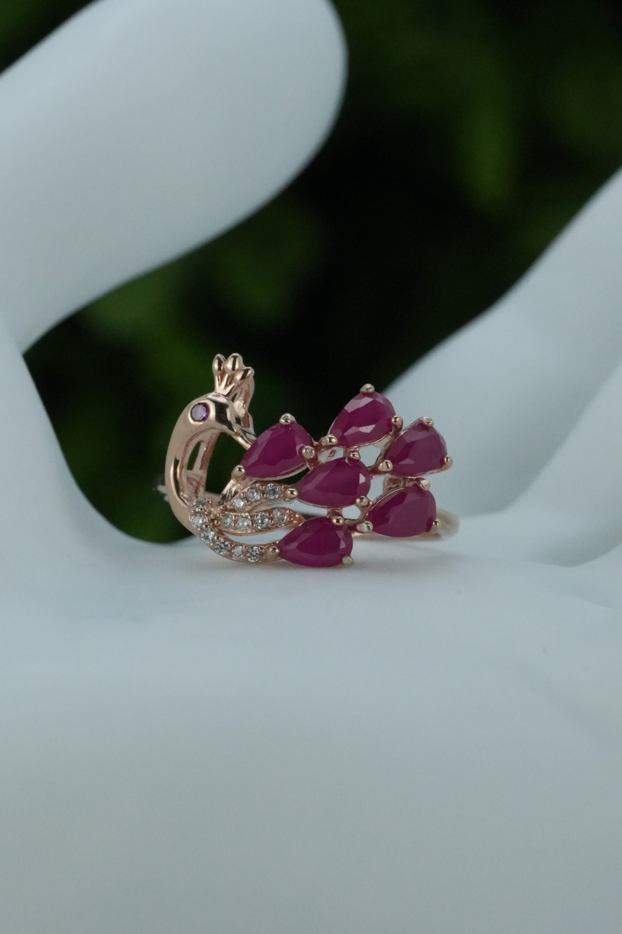 Inel contemporan superb, din argint aurit, cu rubine naturale și pietre cubic zirconia.