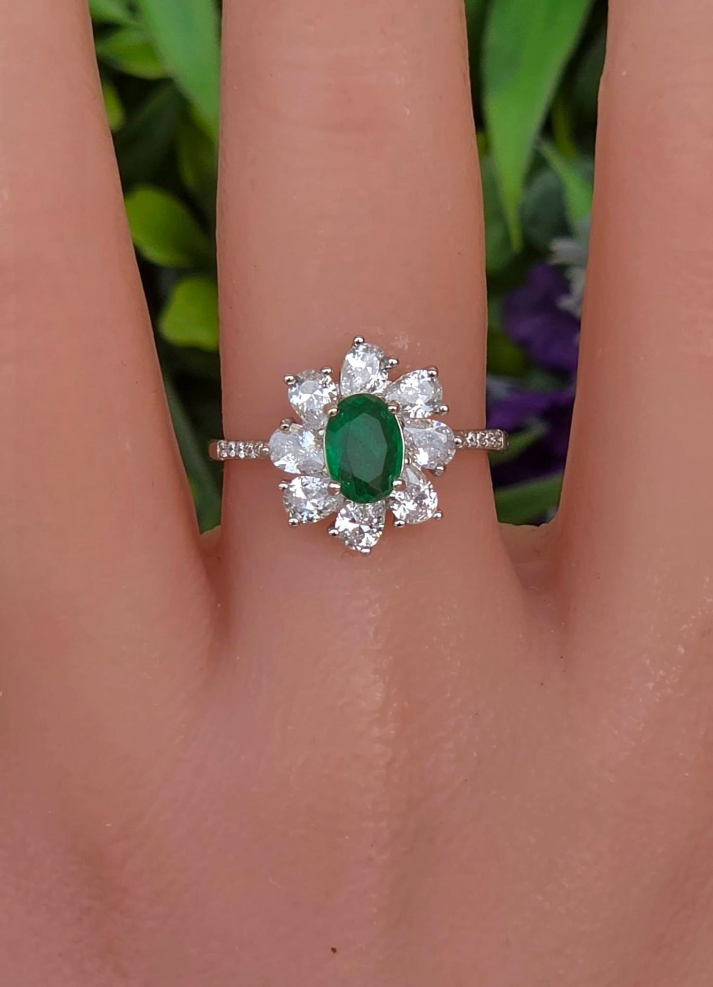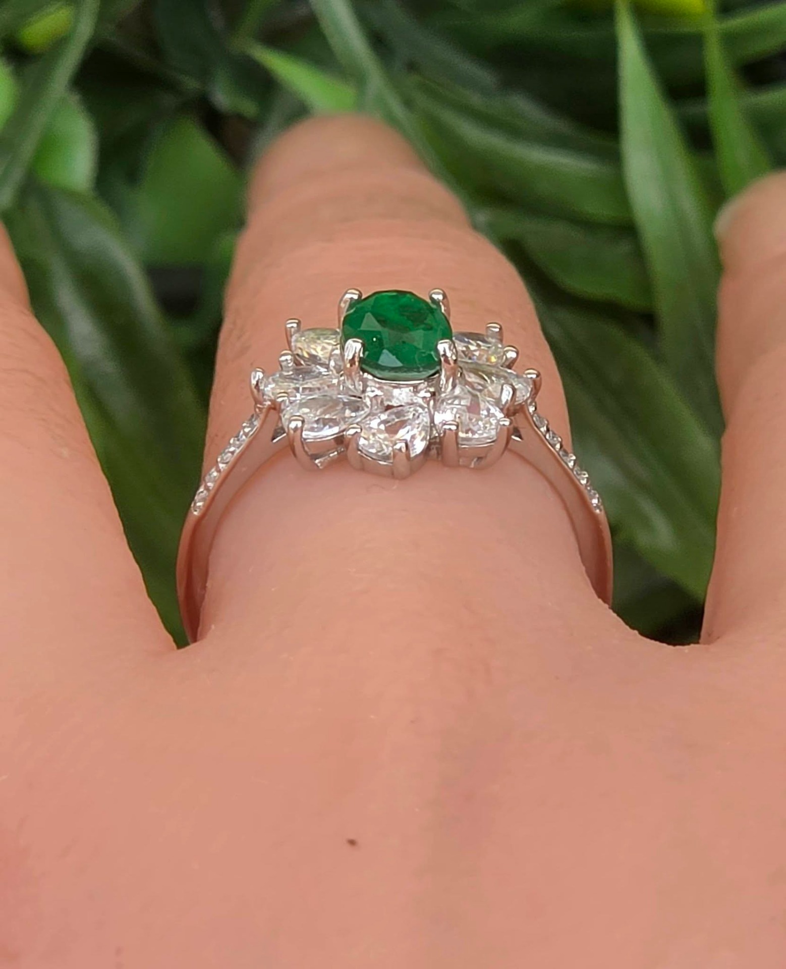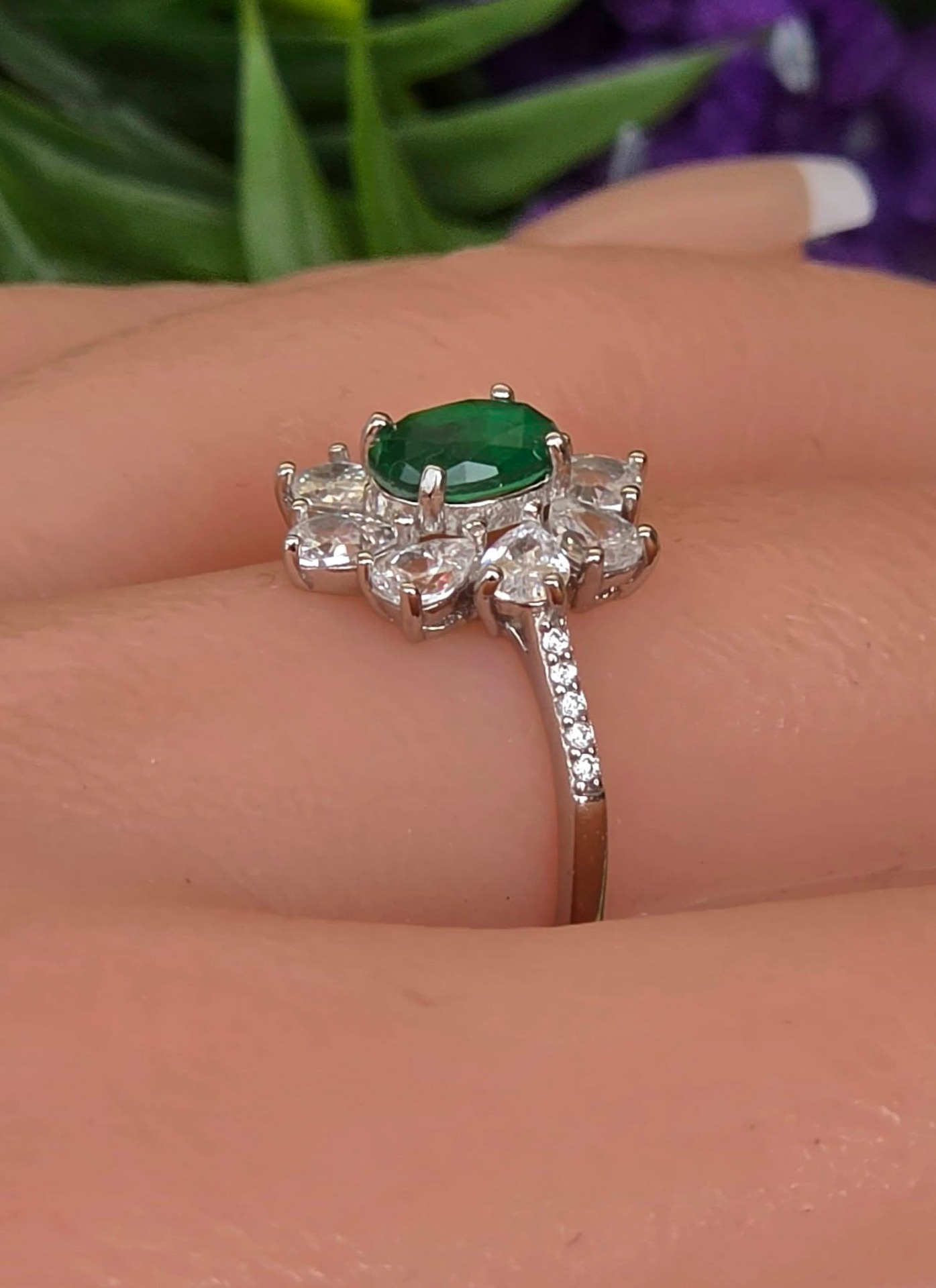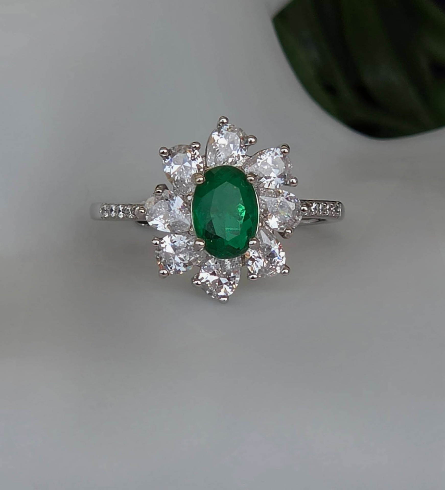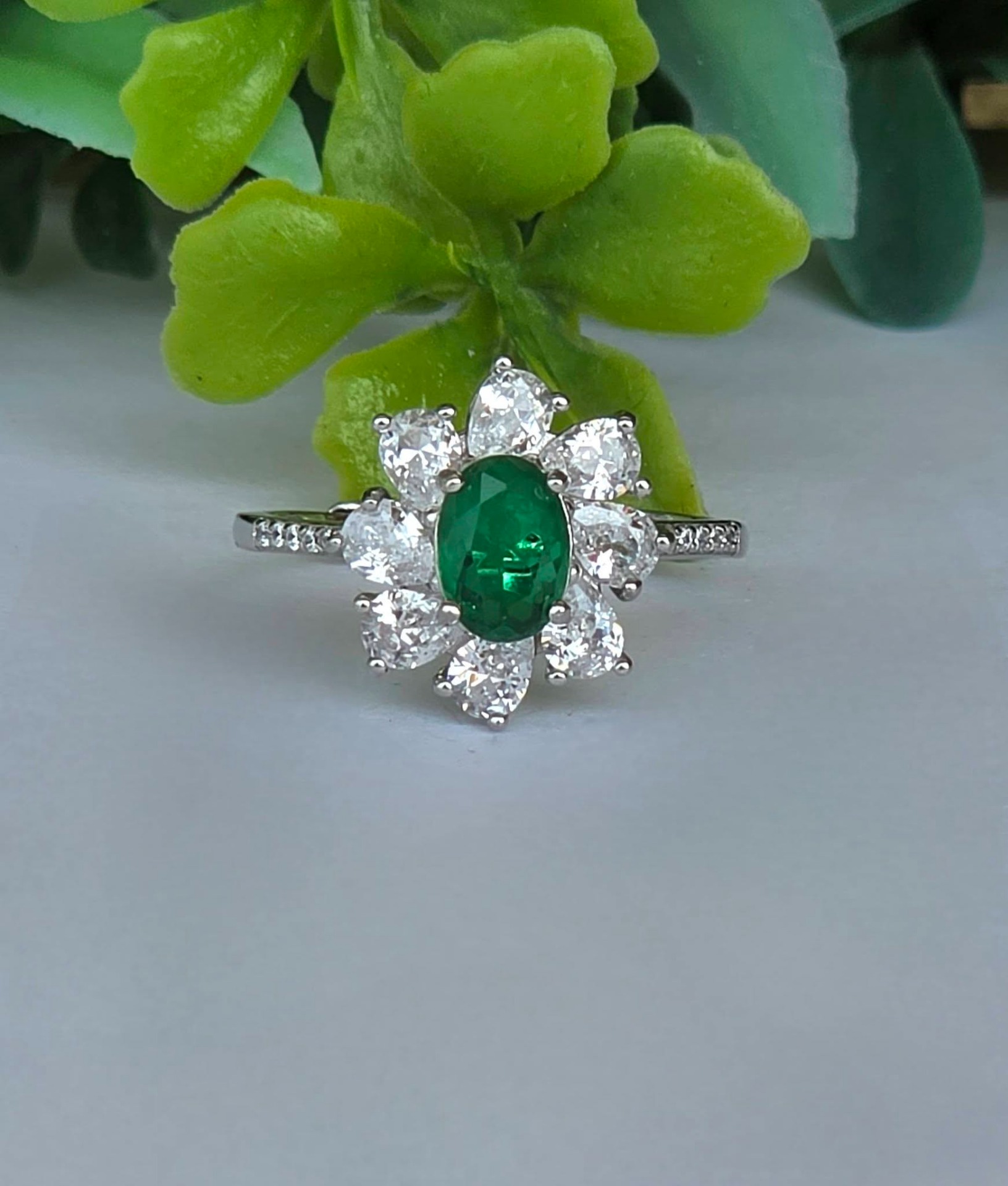Inel contemporan superb, din argint platinat, cu smarald natural "doublet" și pietre cubic zirconia.