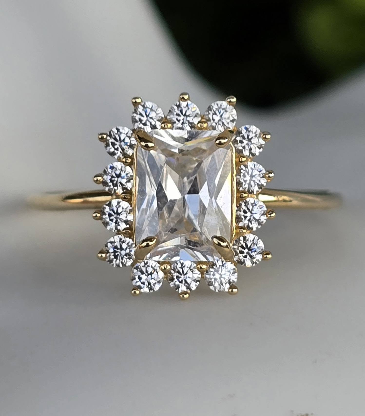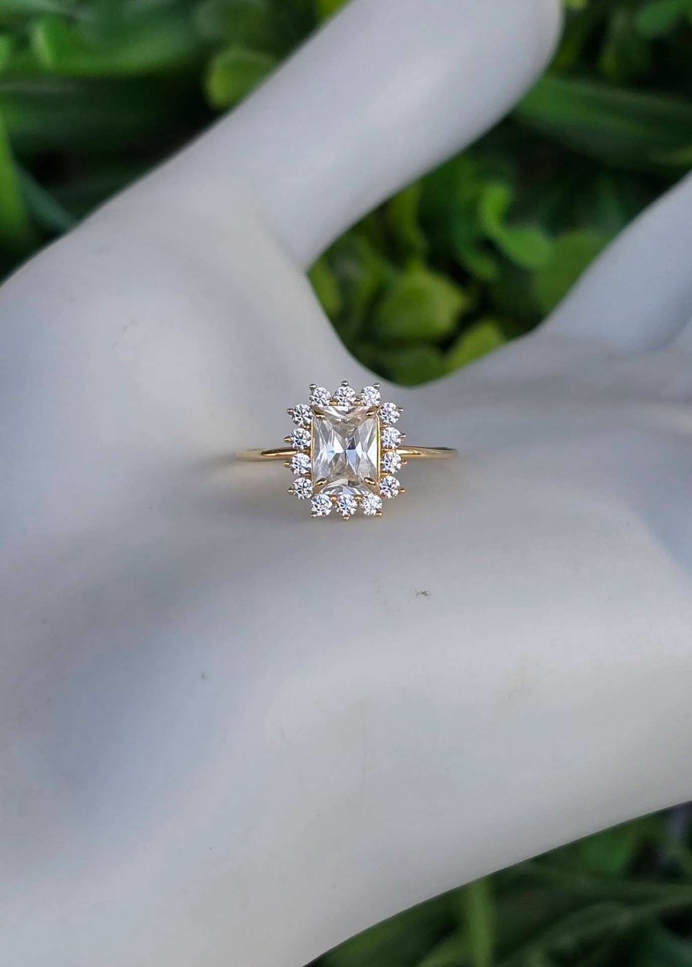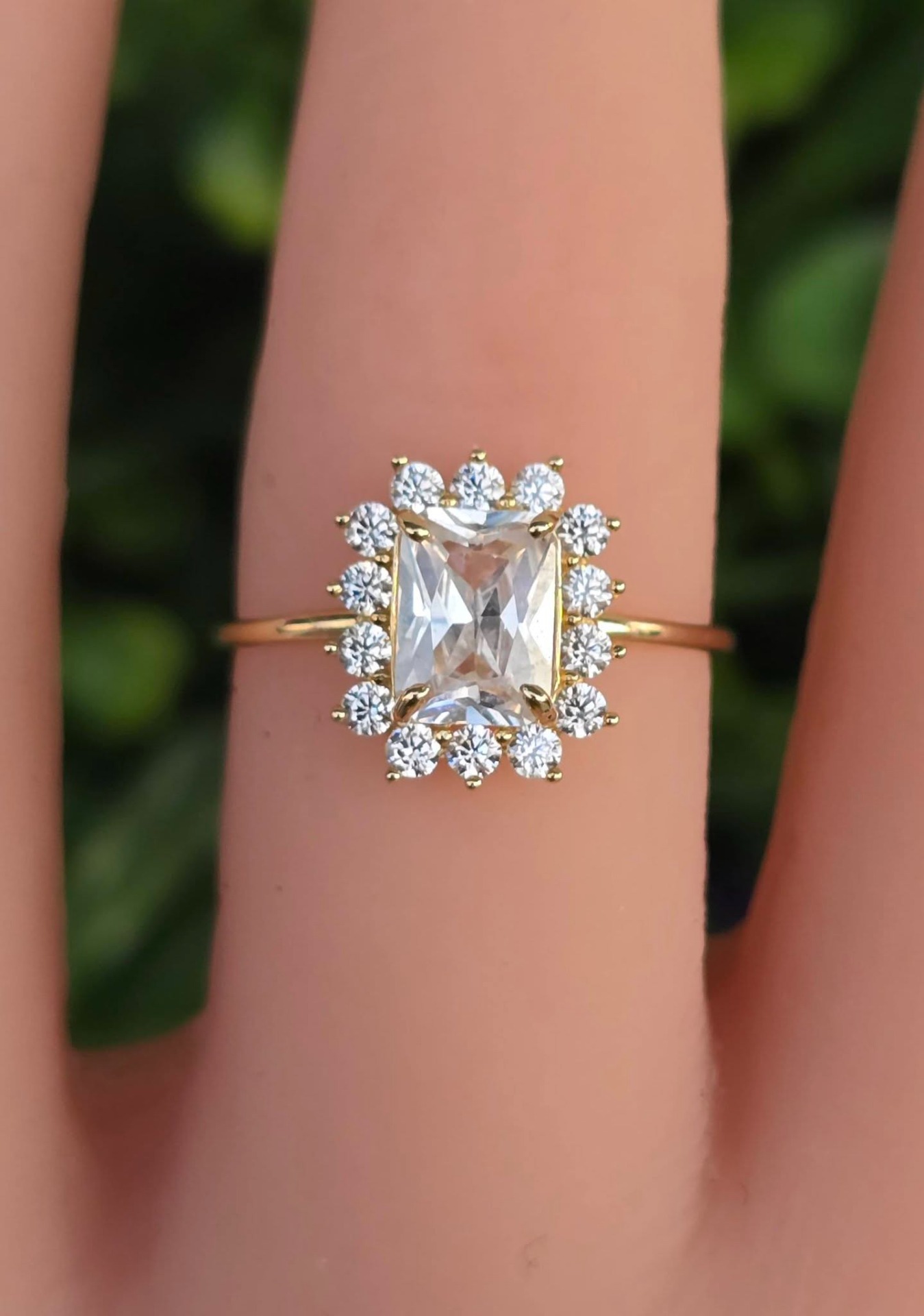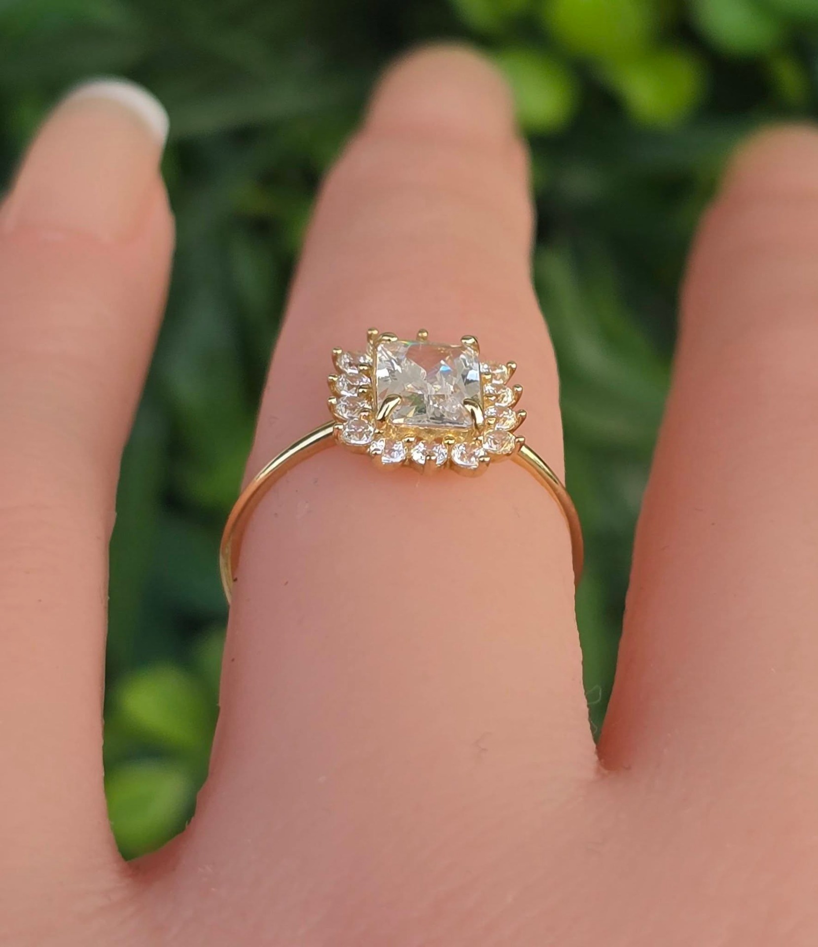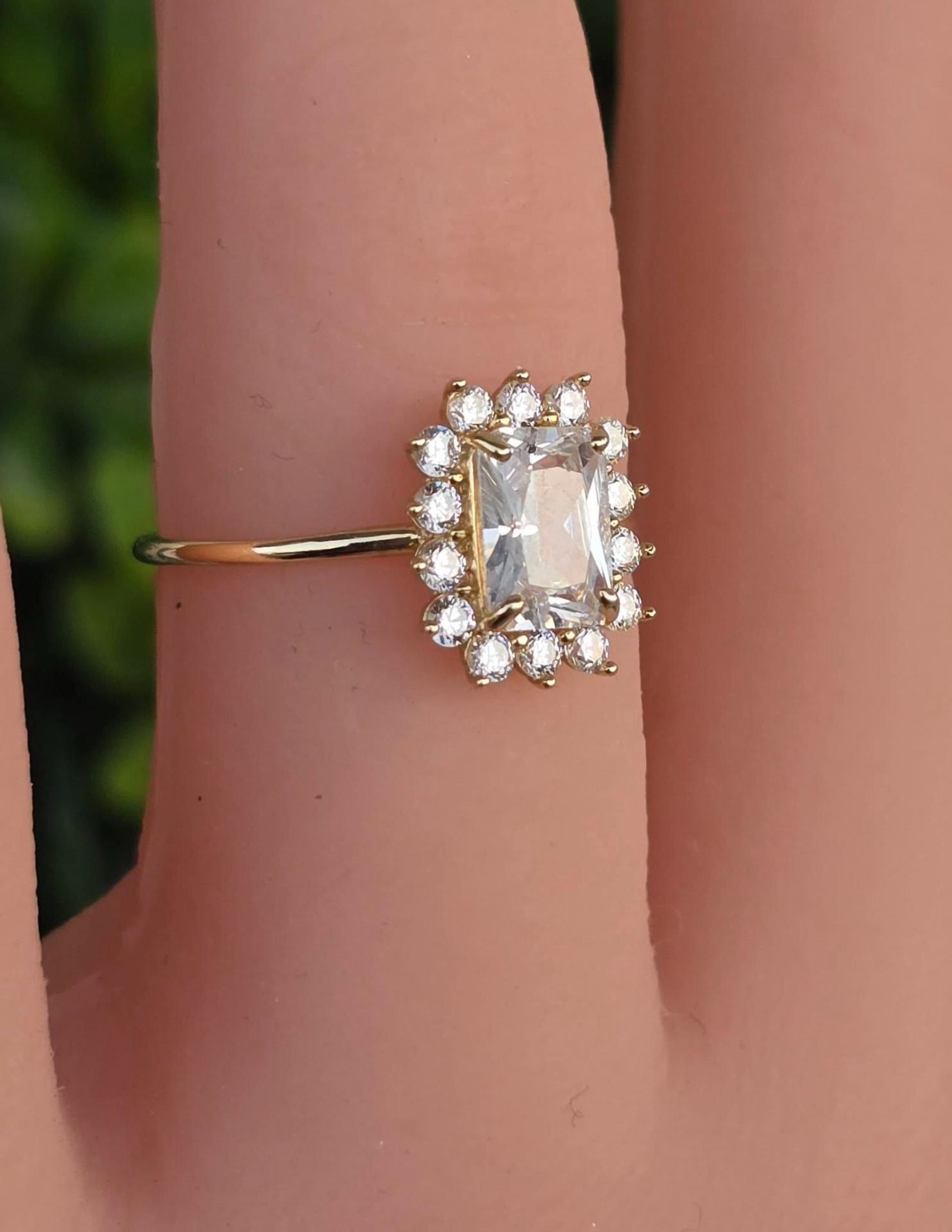 Inel delicat din aur de 9K, cu pietre cubic zirconia.