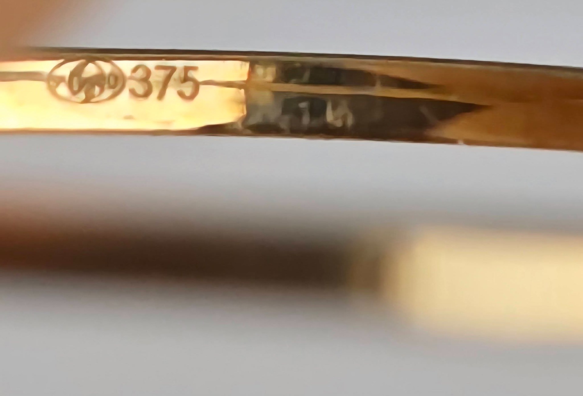 Prezintă marcaj 375 pentru puritate aur de 9K și marcaj de meșter.