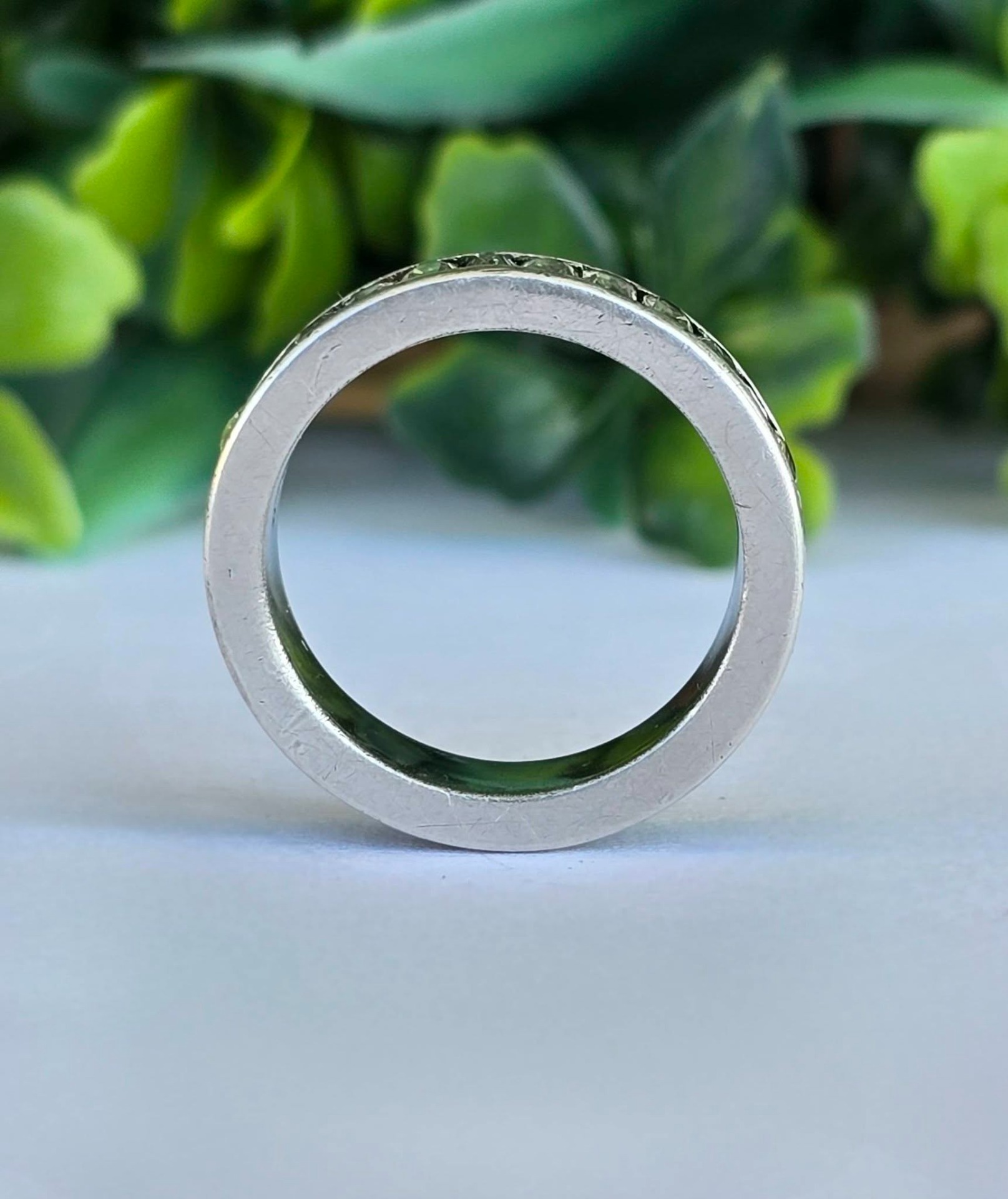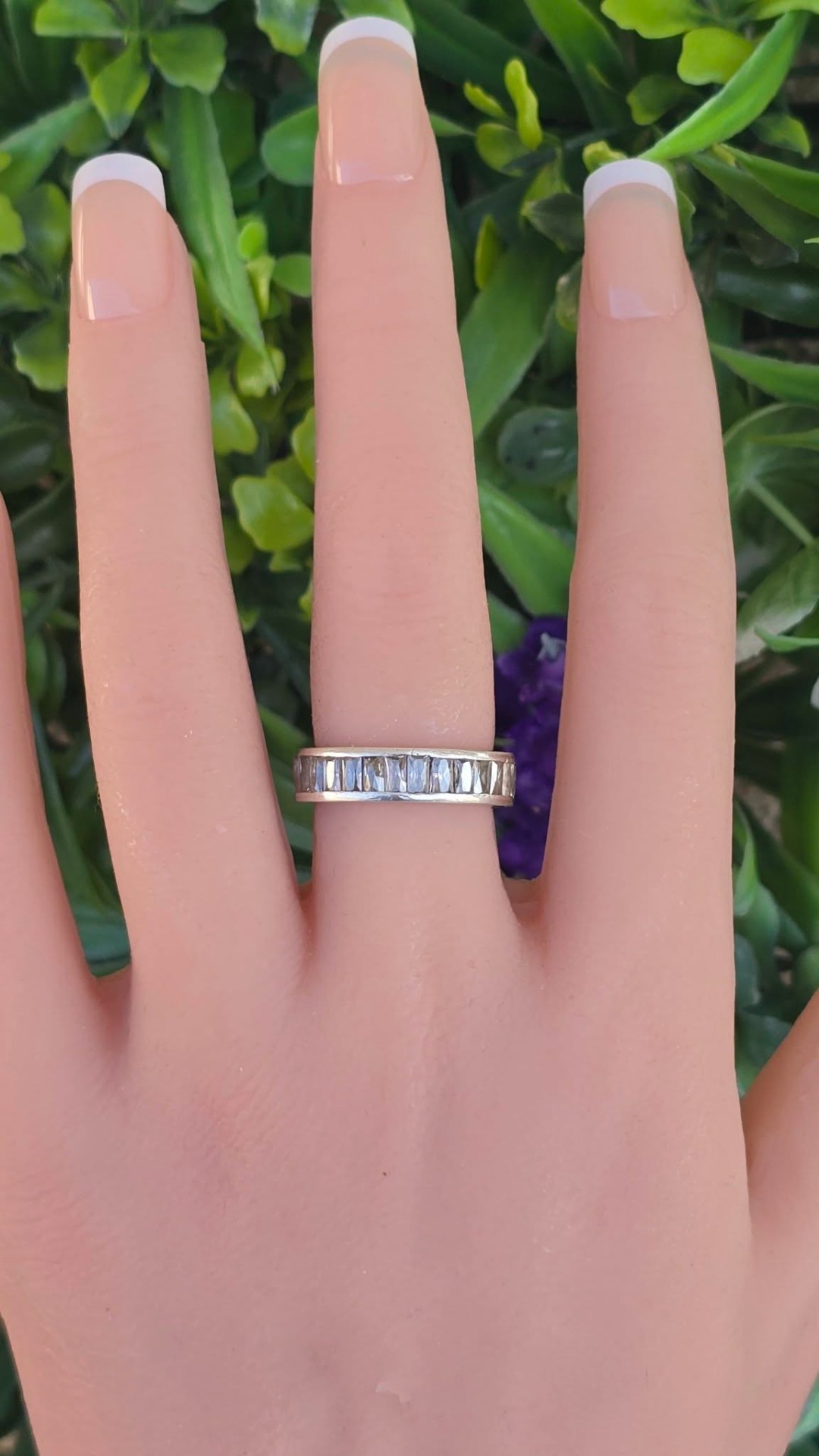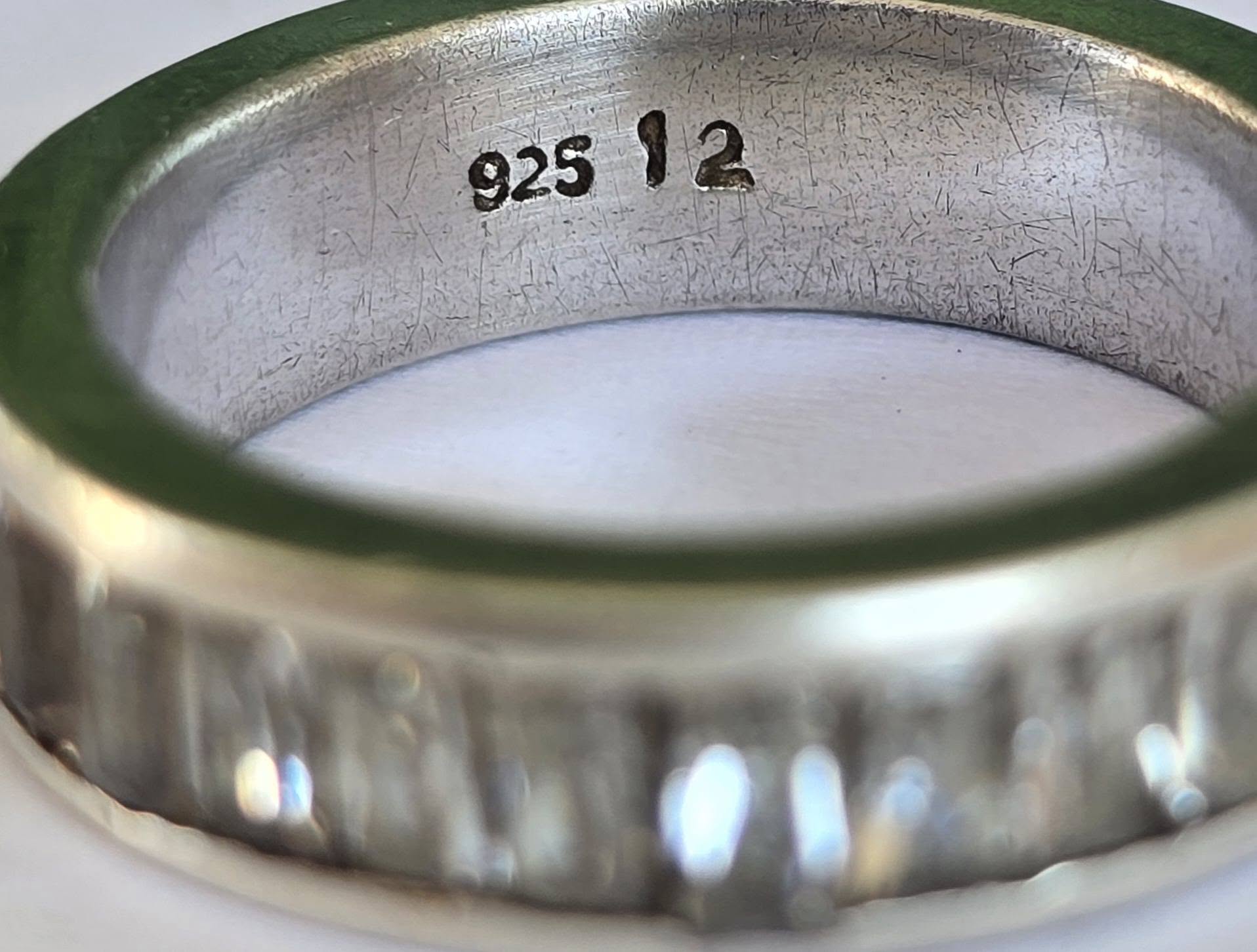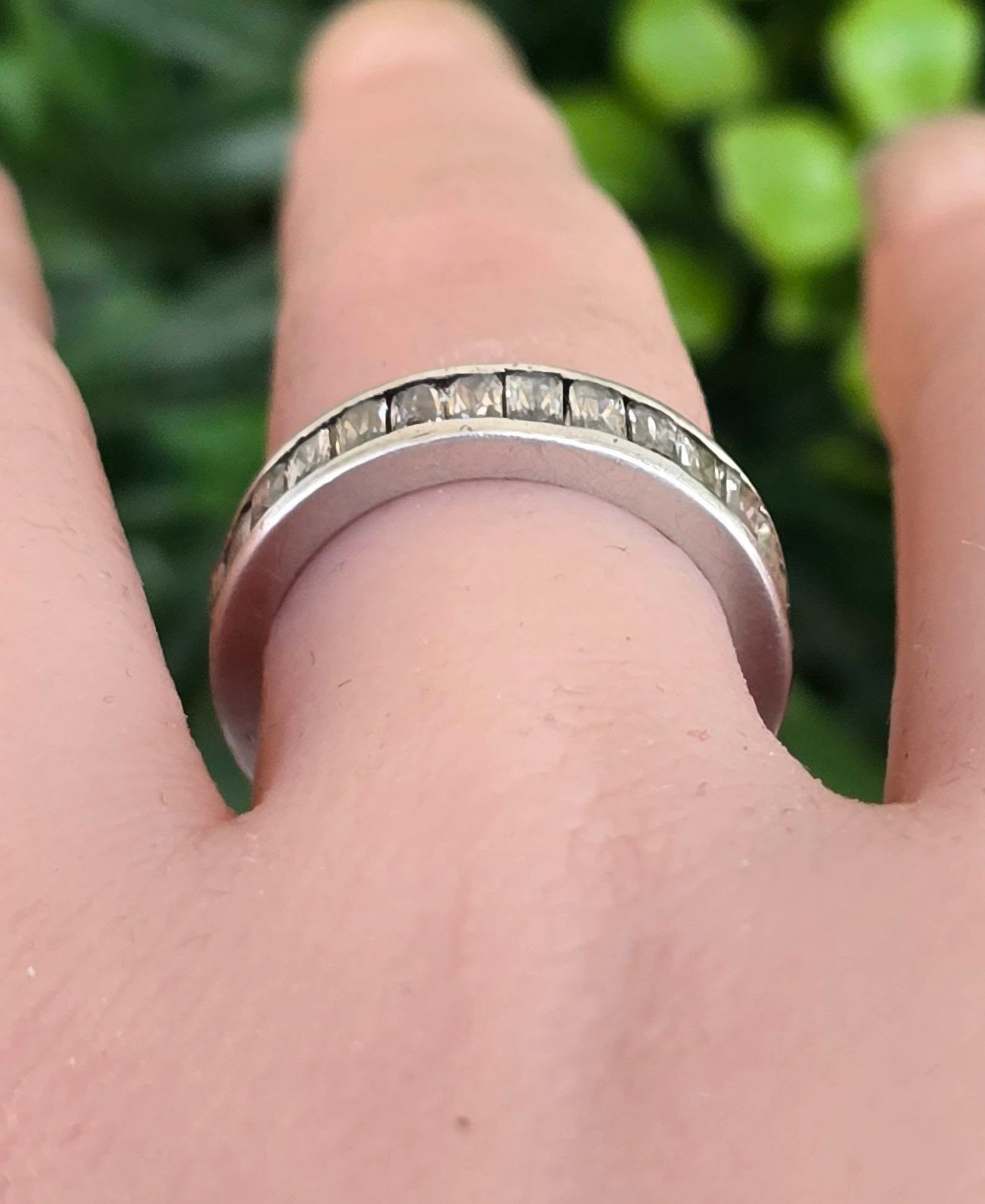 Inel "eternity" vechi, din argint, cu baghete din cuarț alb (cristal de stâncă) natural.