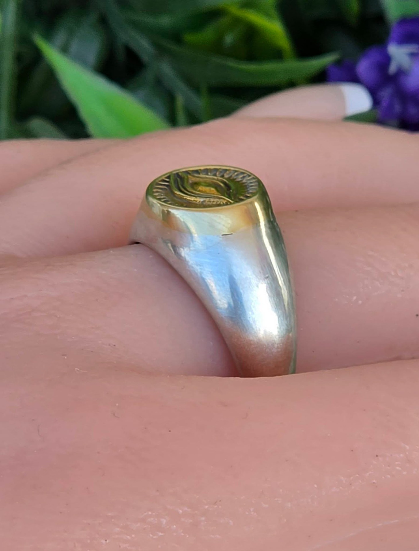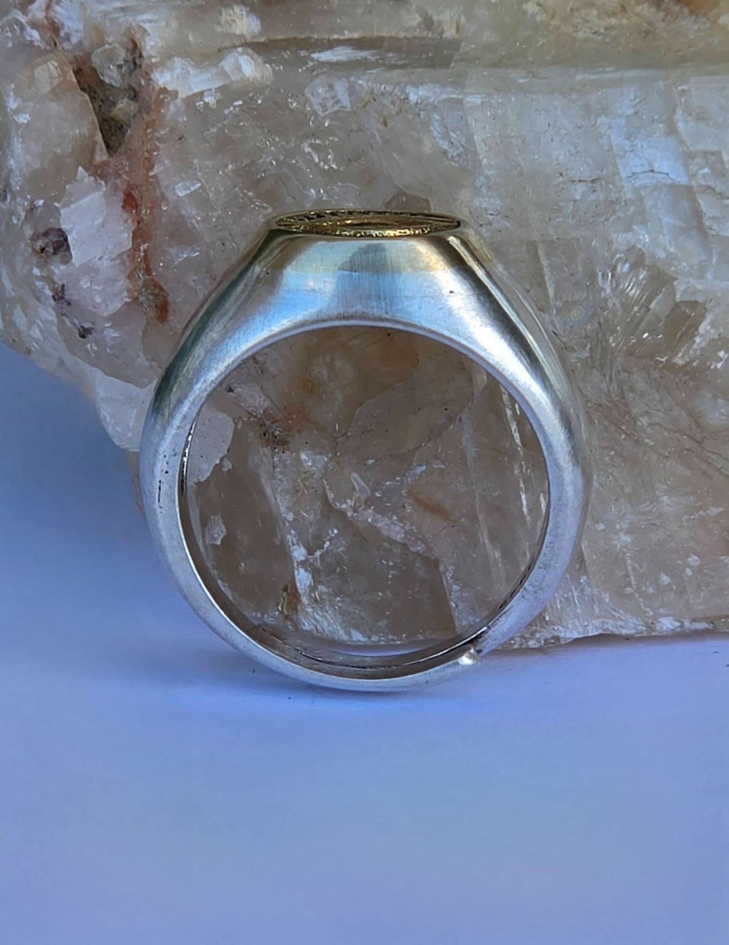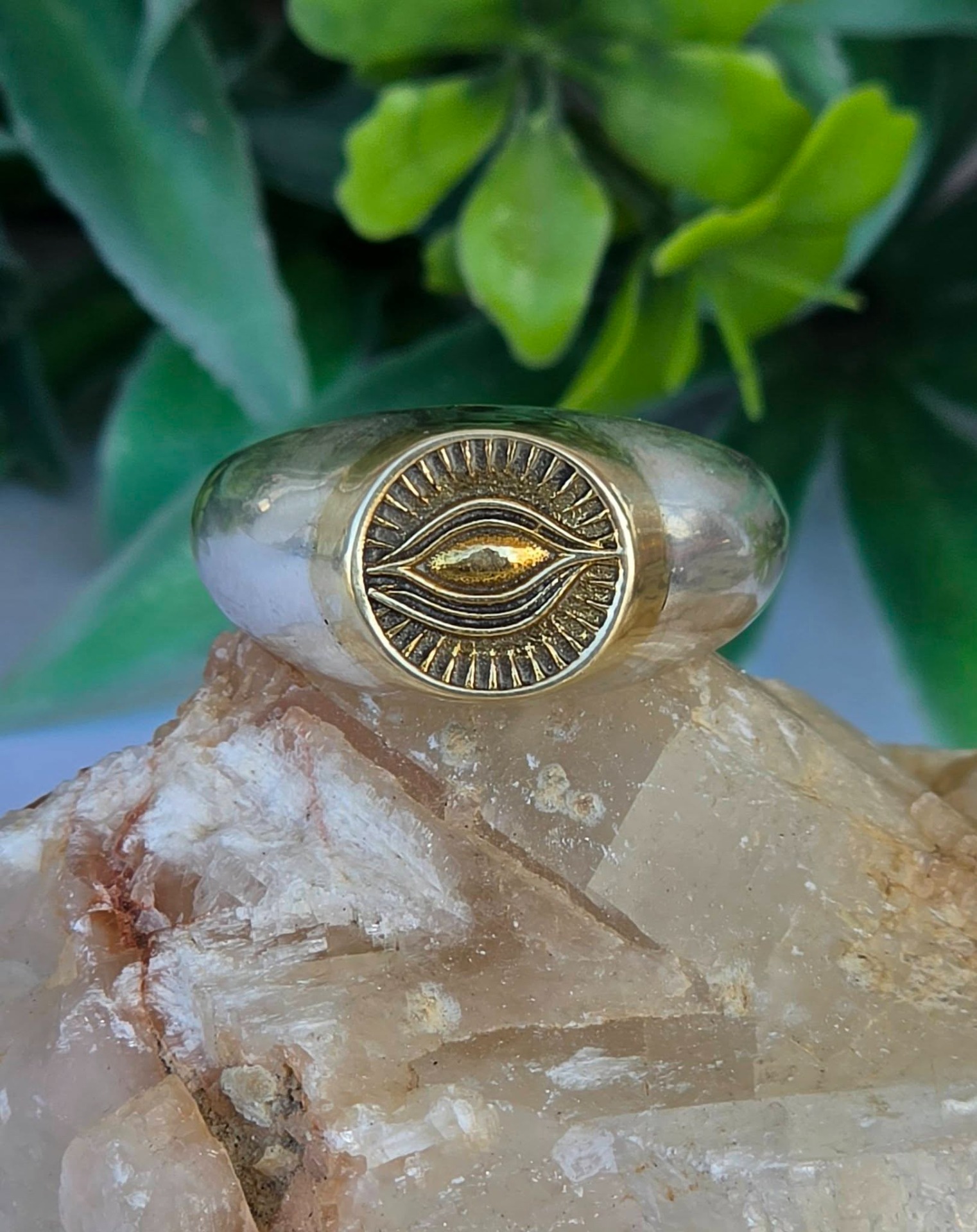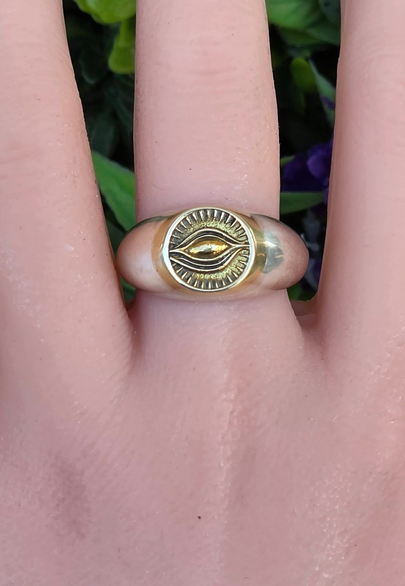 Inel modernist din argint și argint aurit, de tip "sigiliu", cu simbol masonic "Ochiul Providenței" (Ochiul Atotvăzător sau Ochiul lui Dumnezeu).