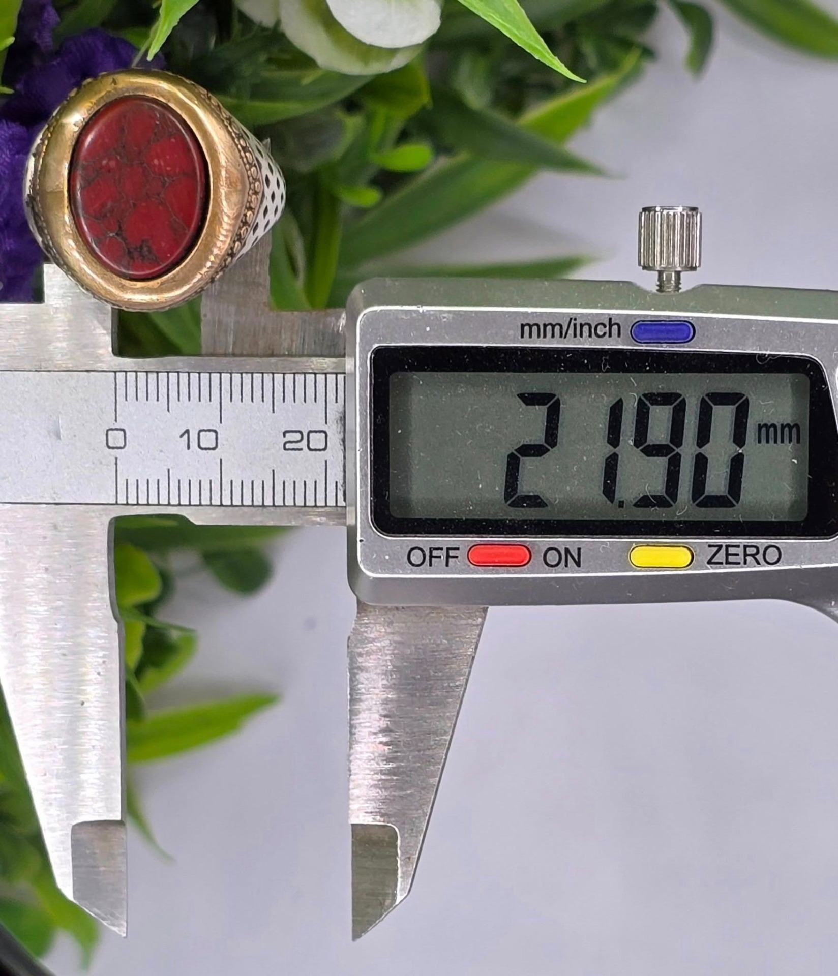 Inel otoman vechi, din argint și bronz, cu jasp roșu natural.