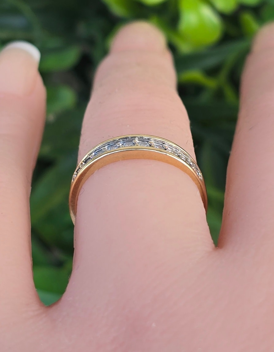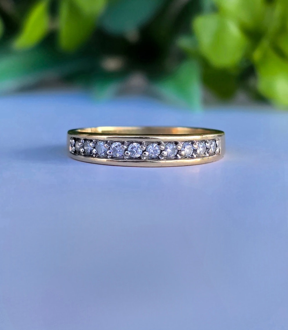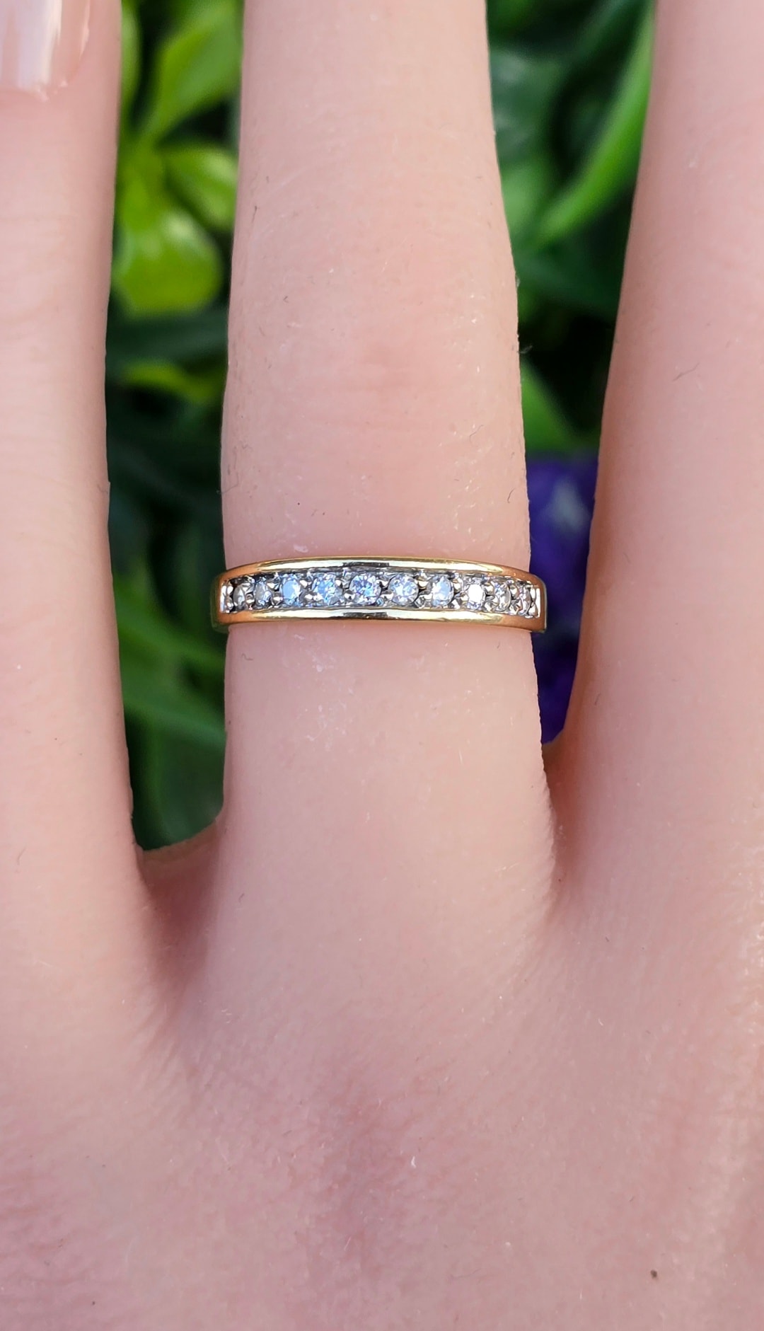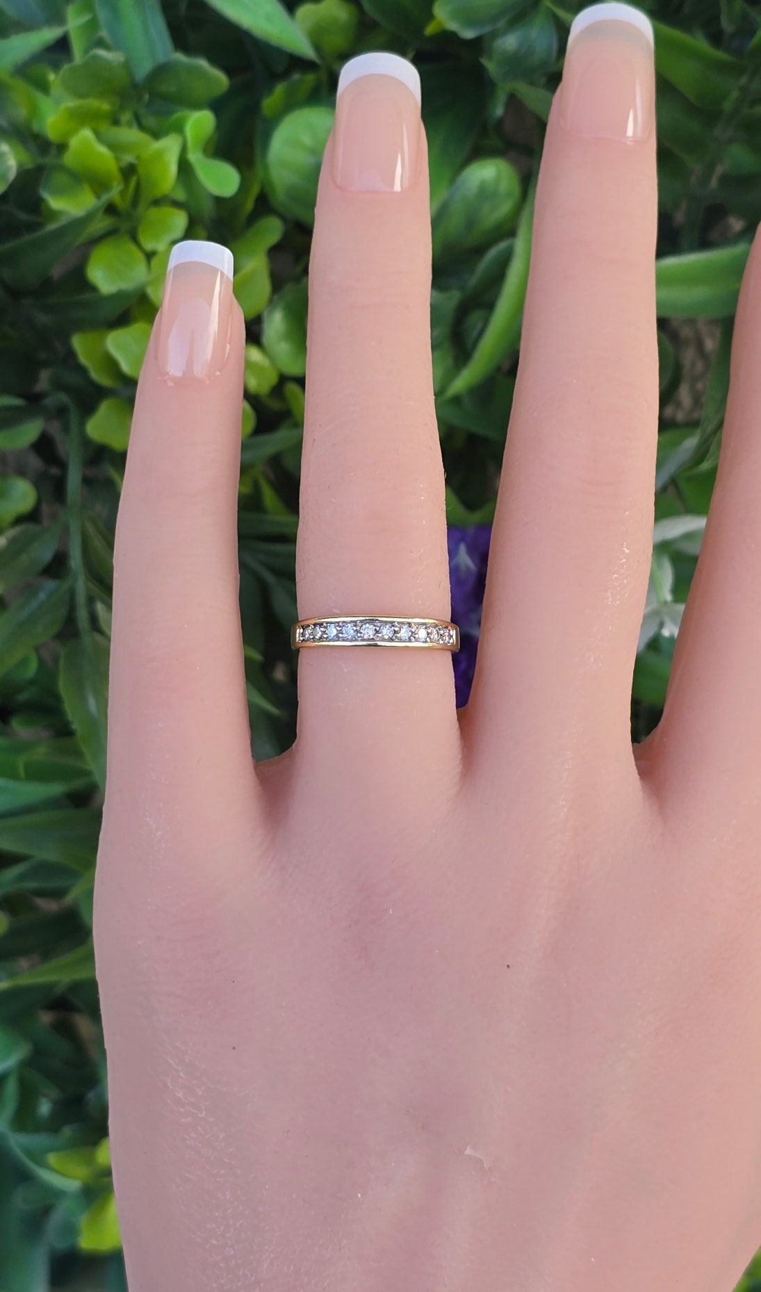 Inel "semi-eternity" din aur de 18K, cu 10 diamante naturale.