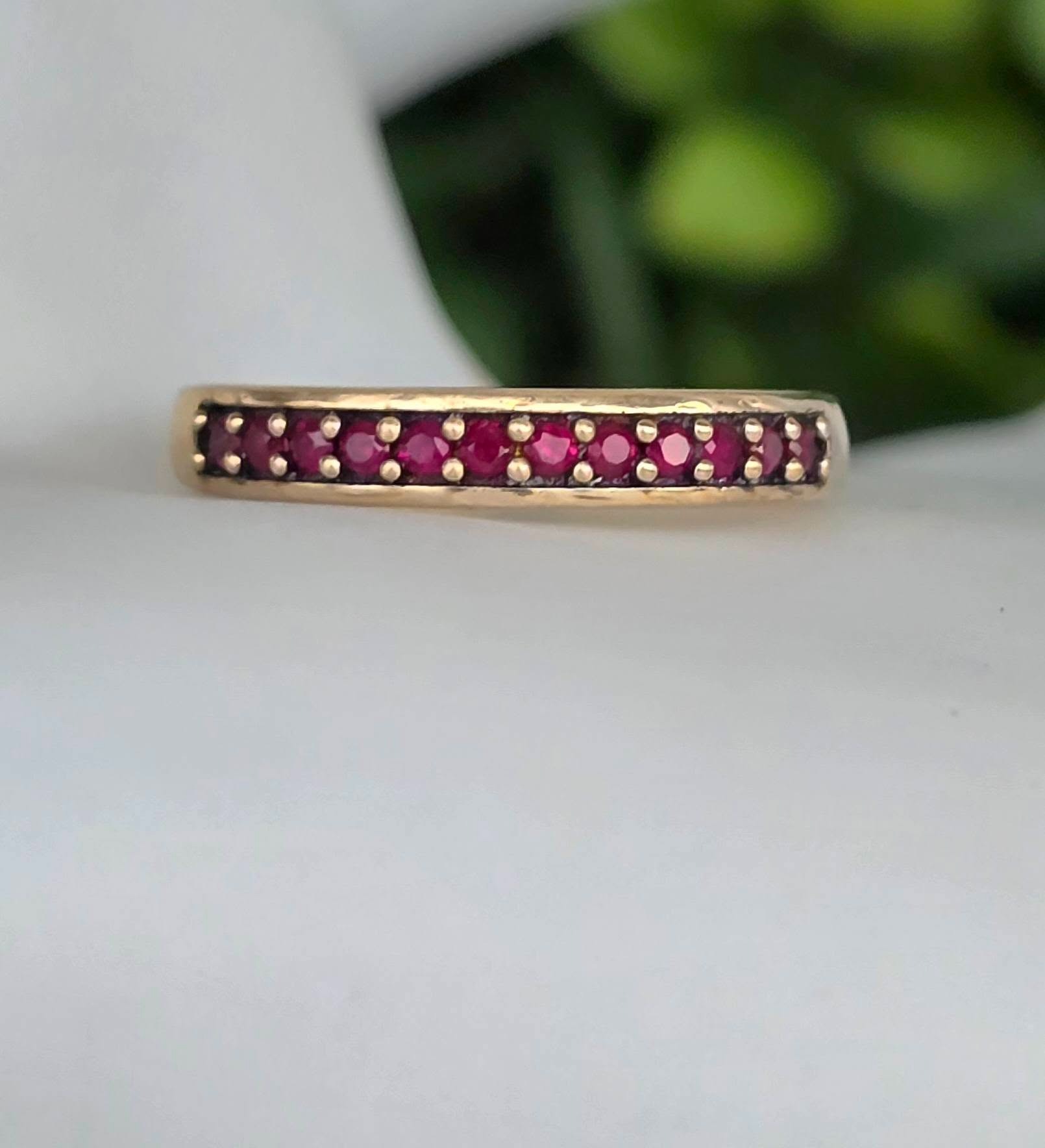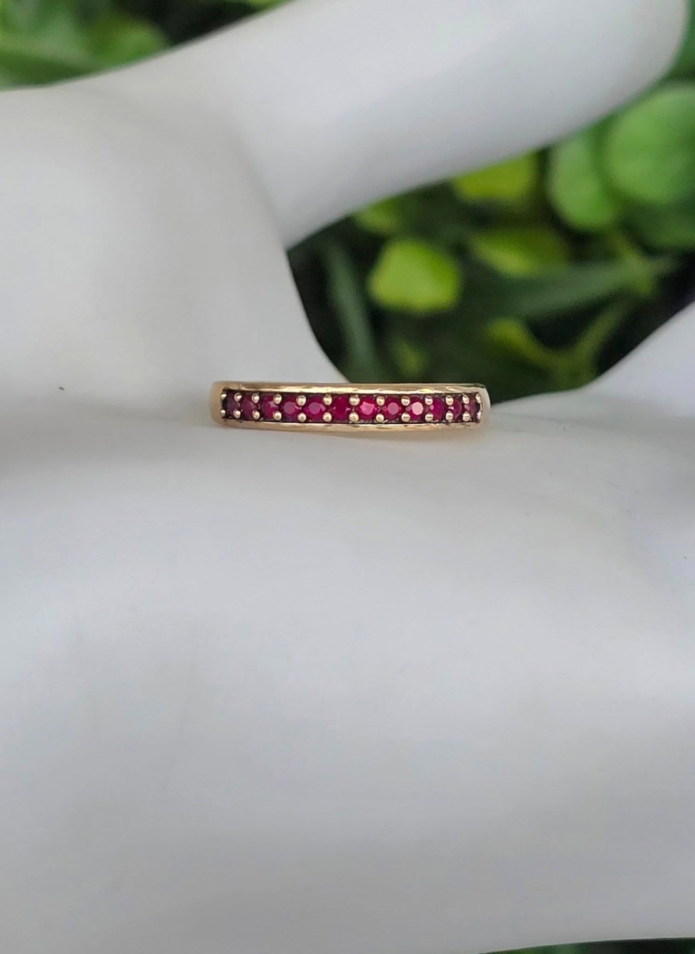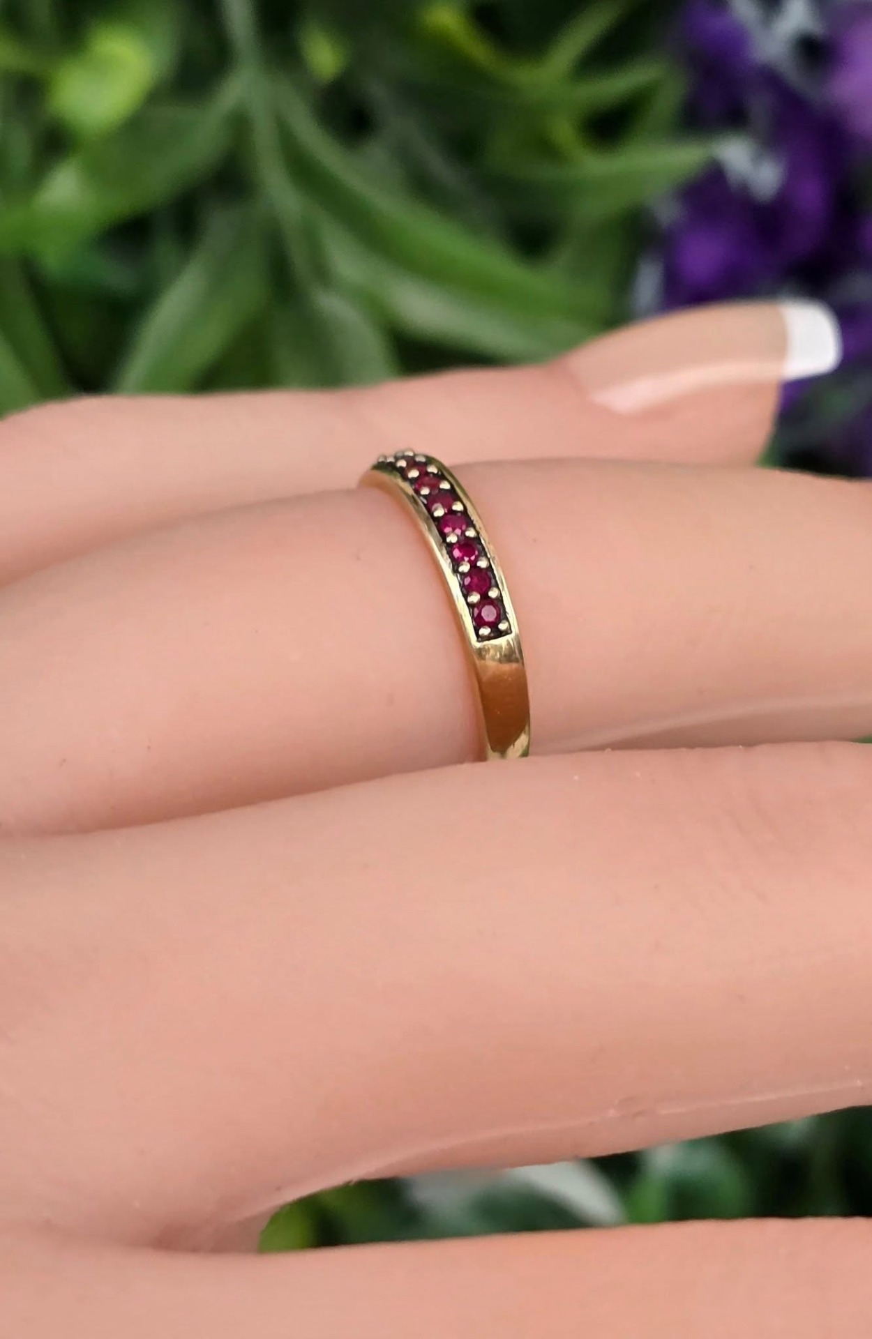 Inel "semi-eternity" din aur de 9K, cu 12 rubine naturale.