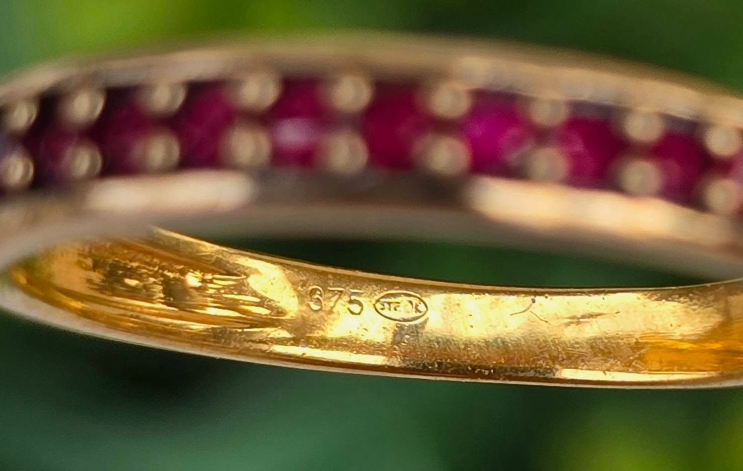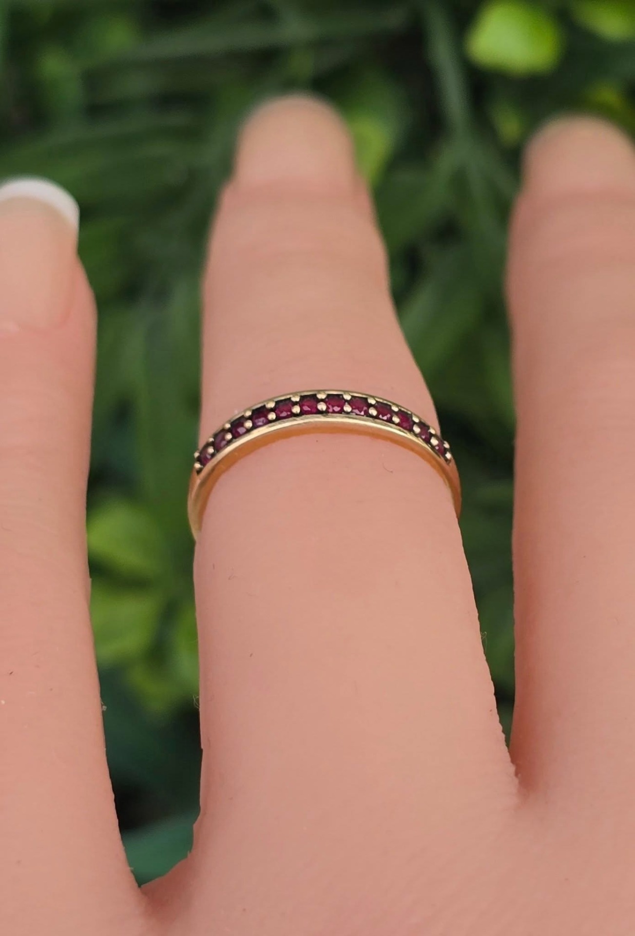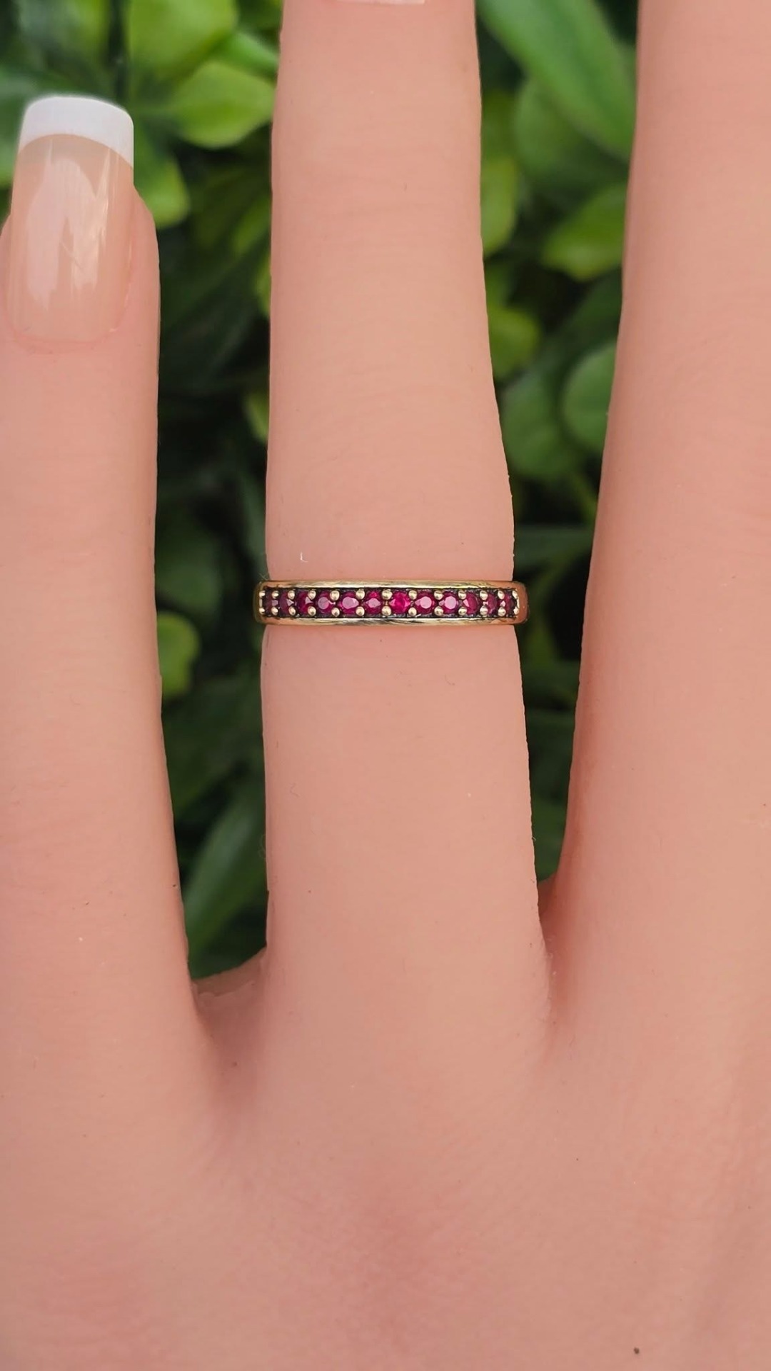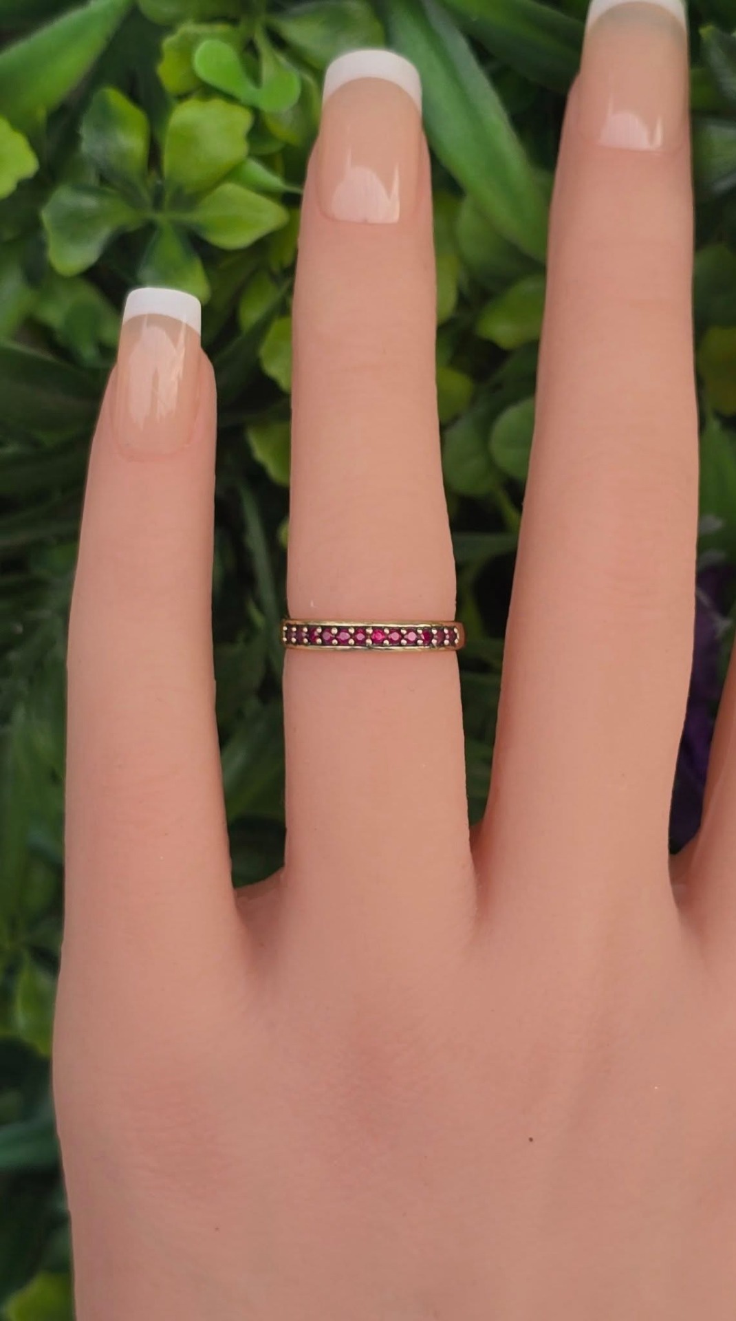 Inel "semi-eternity" din aur de 9K, cu 12 rubine naturale.