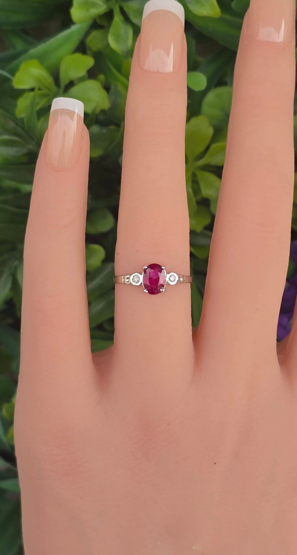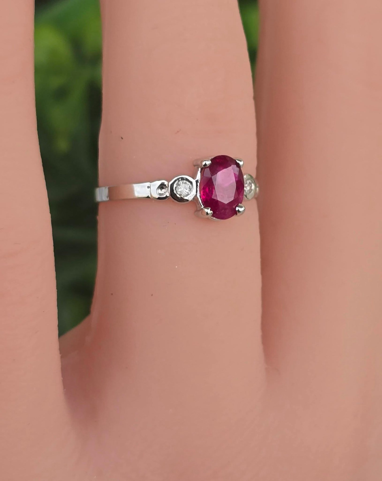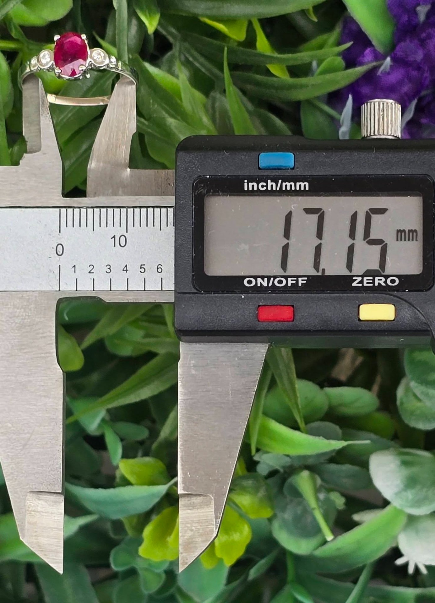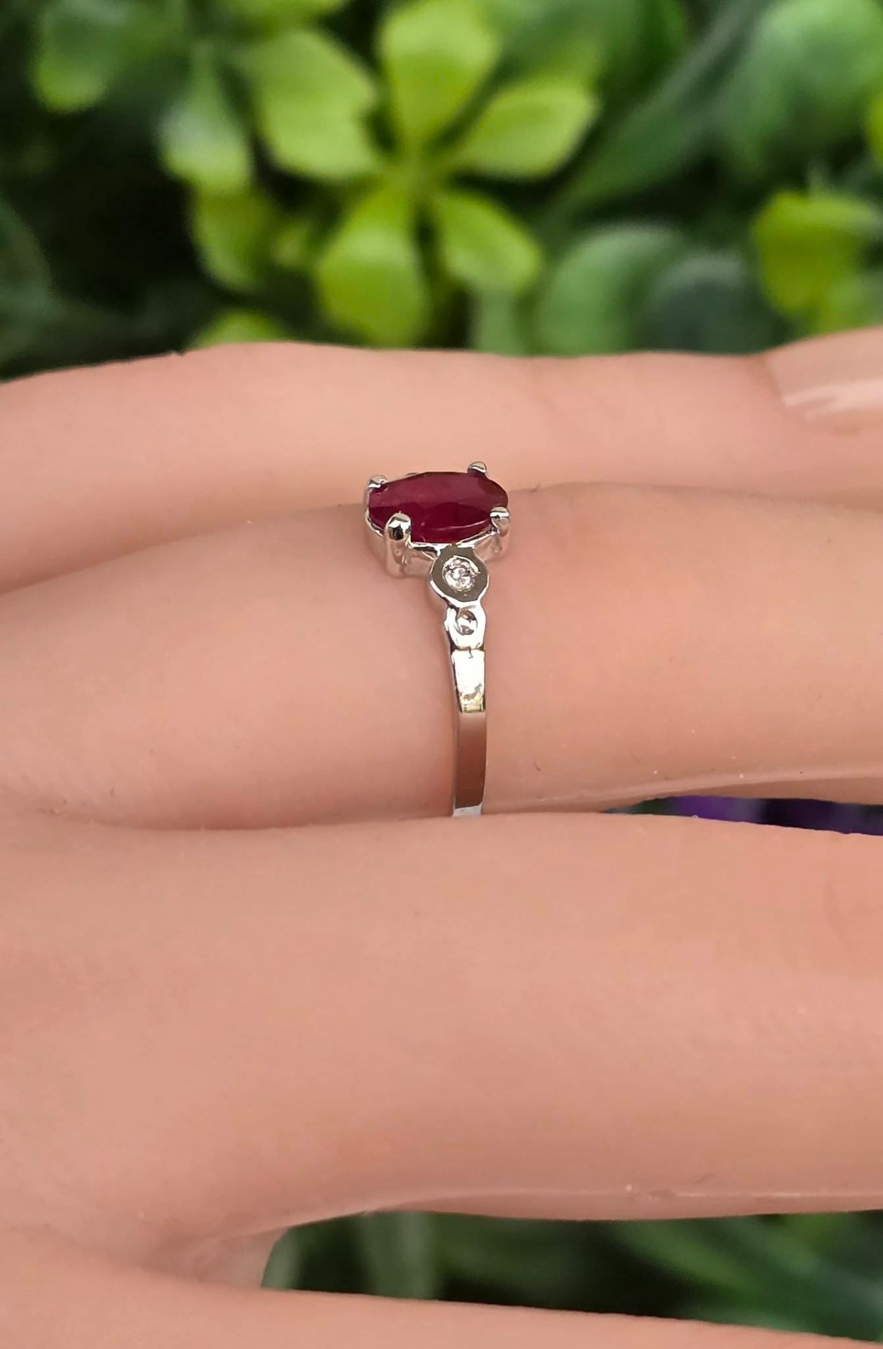 Inel "trio" superb, din aur de 14K, cu rubin și 2 diamante naturale.