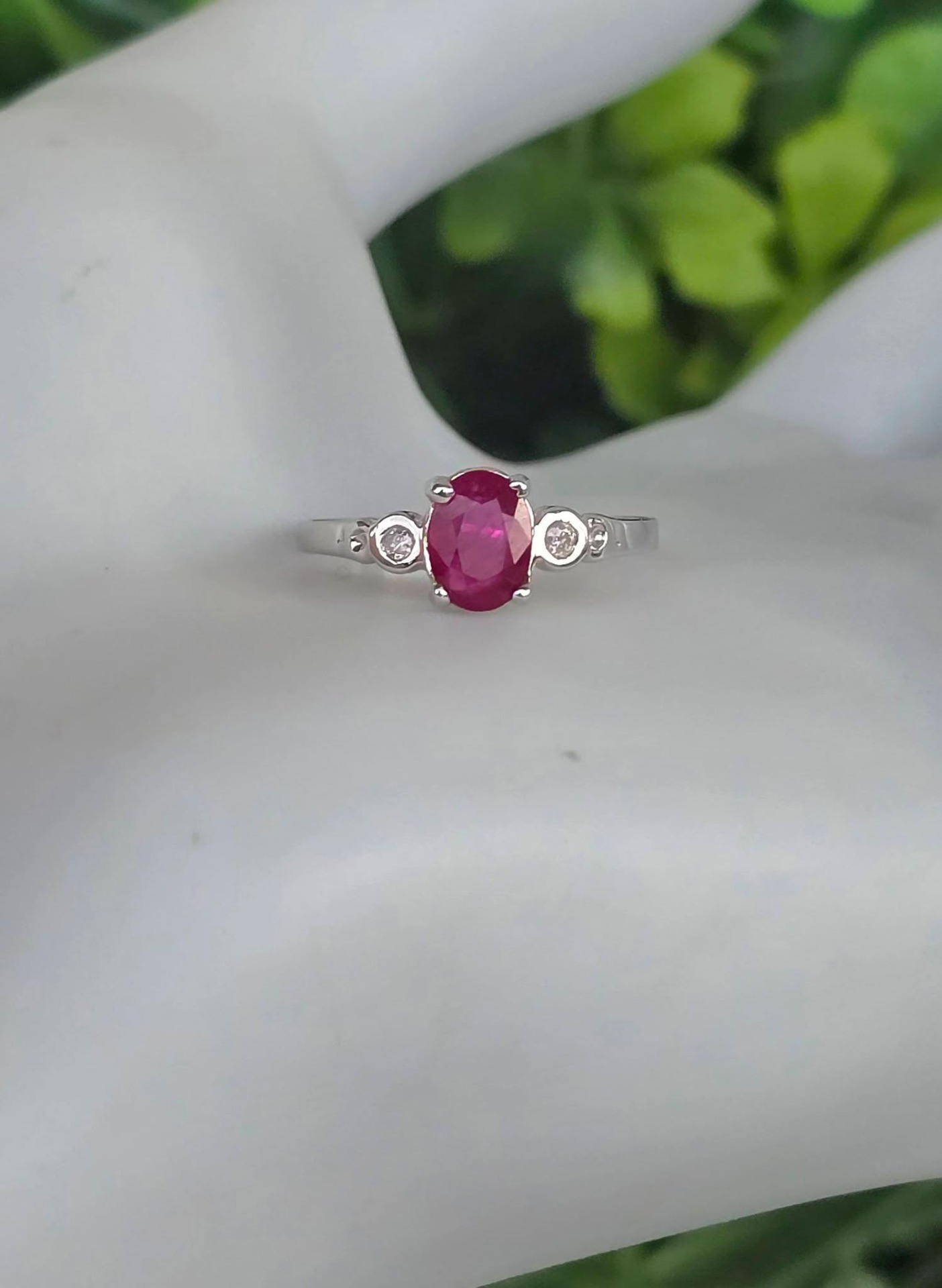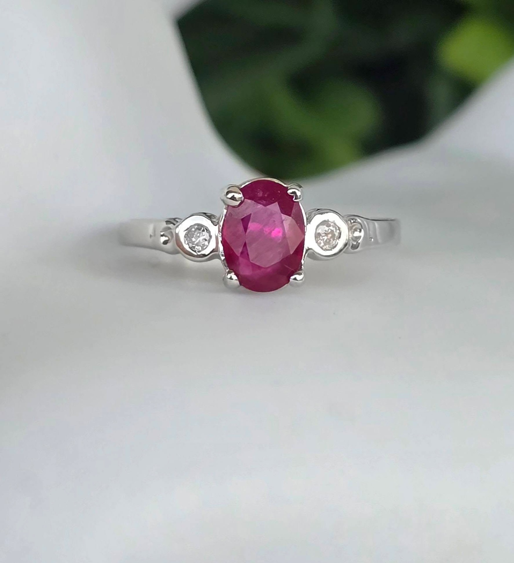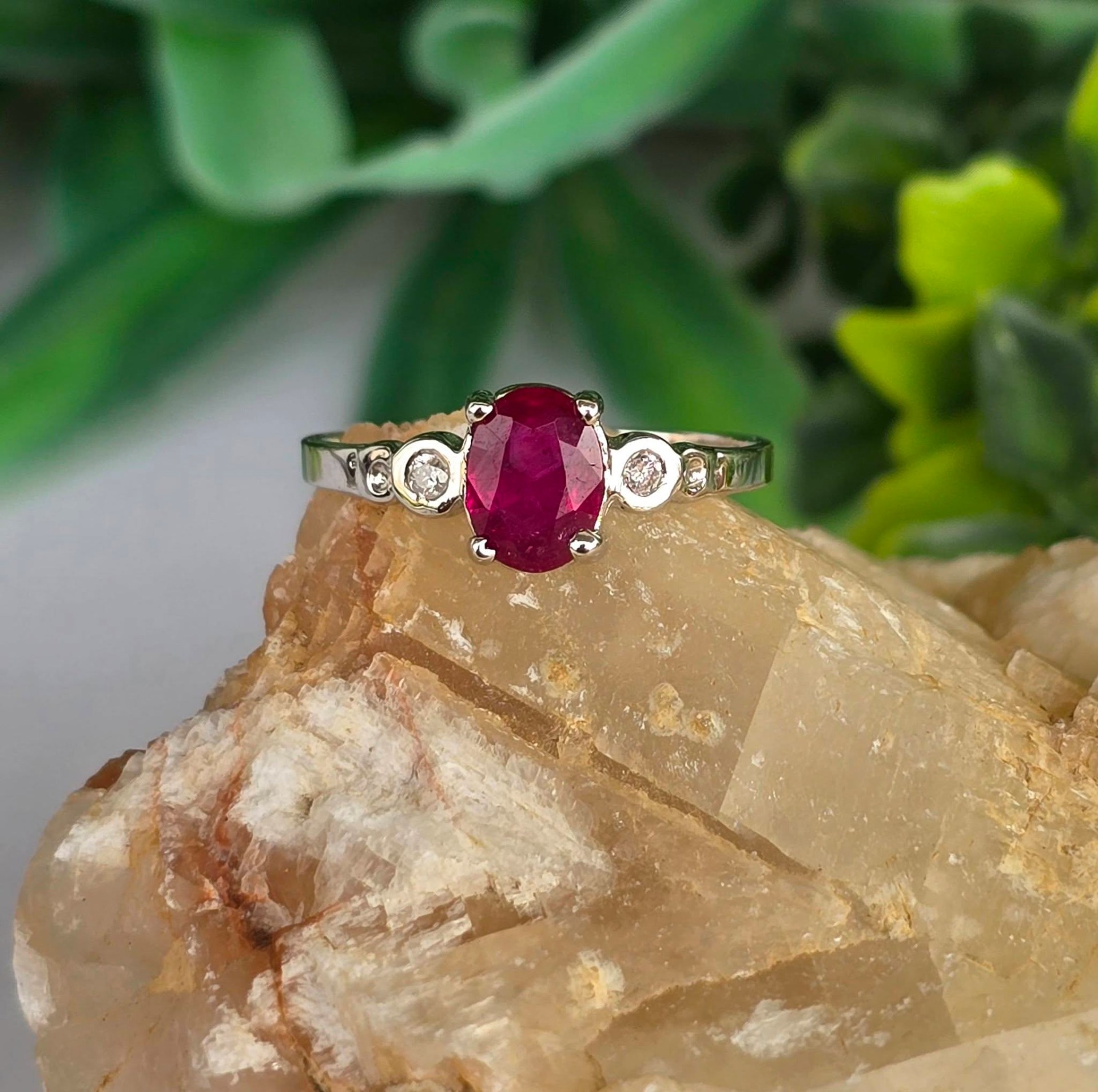 Inel "trio" superb, din aur de 14K, cu rubin și 2 diamante naturale.