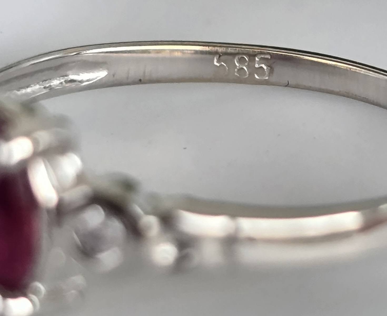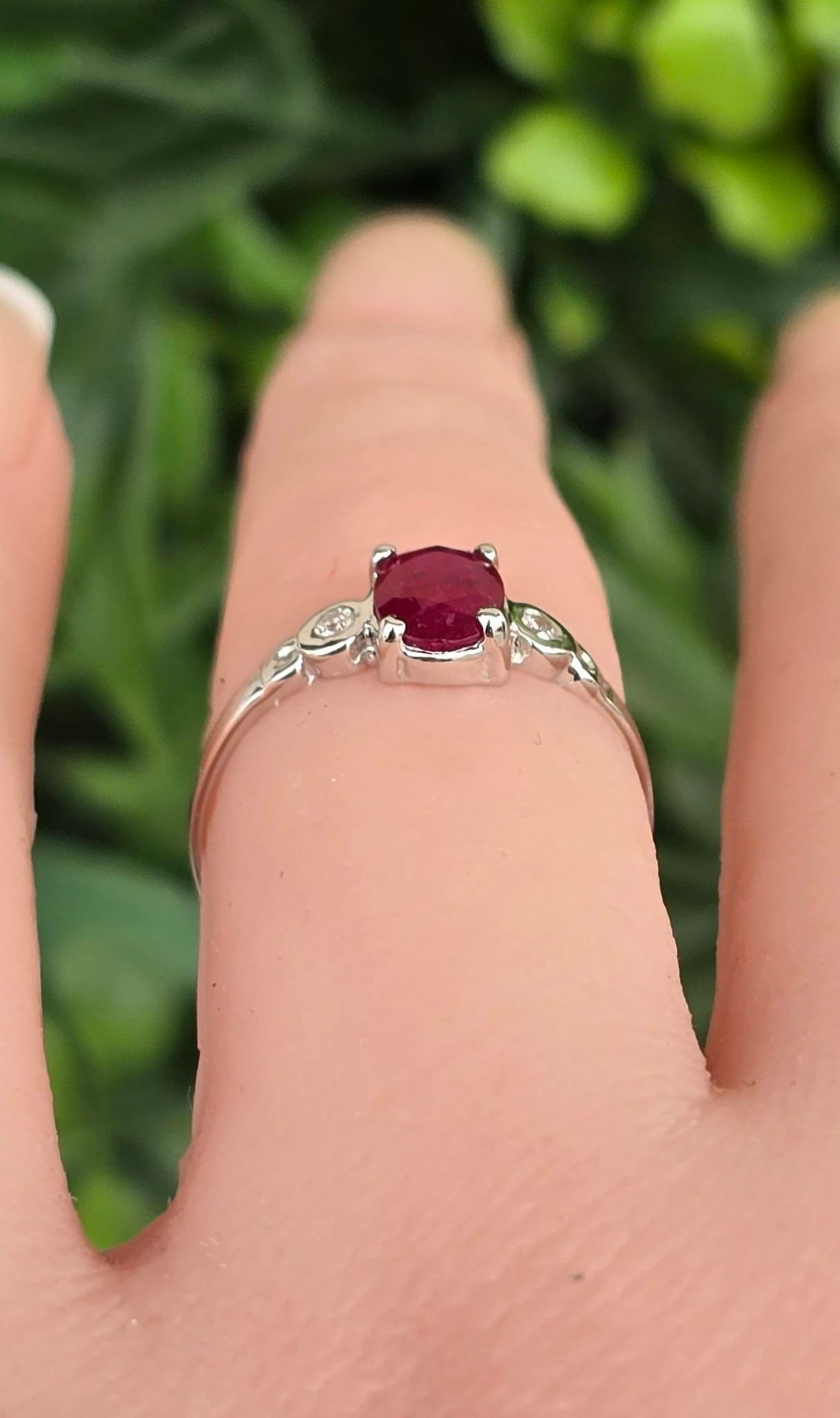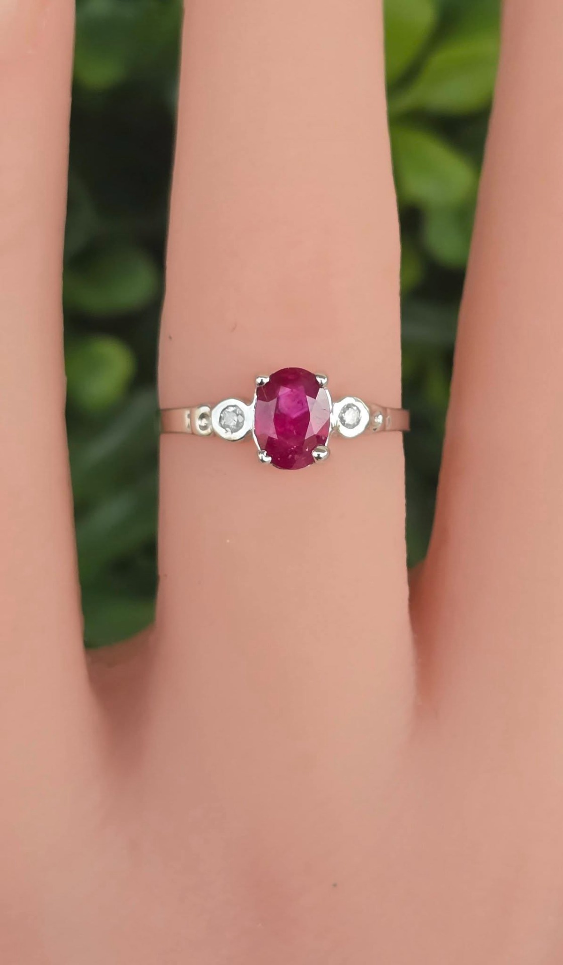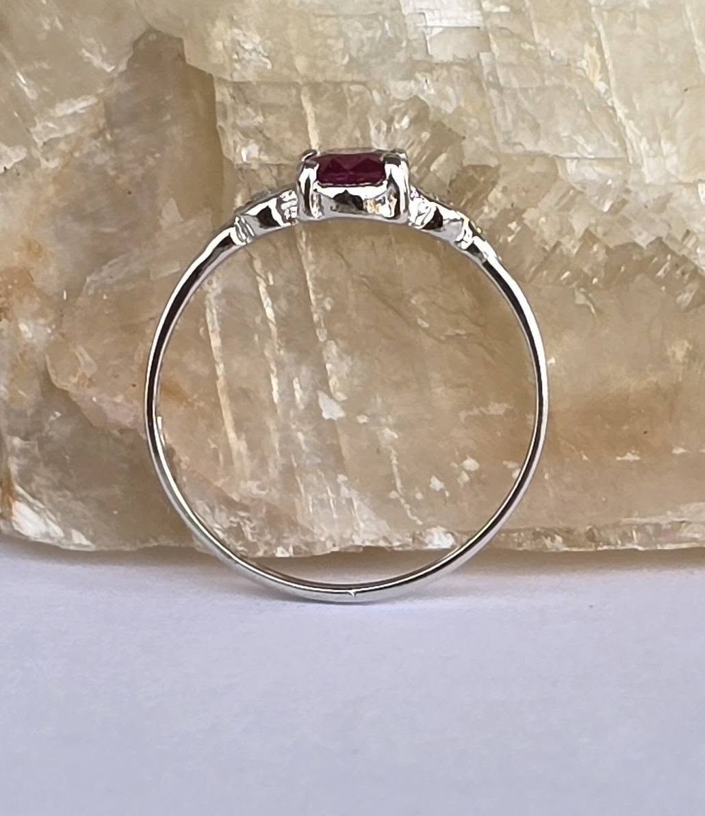 Inel "trio" superb, din aur de 14K, cu rubin și 2 diamante naturale.