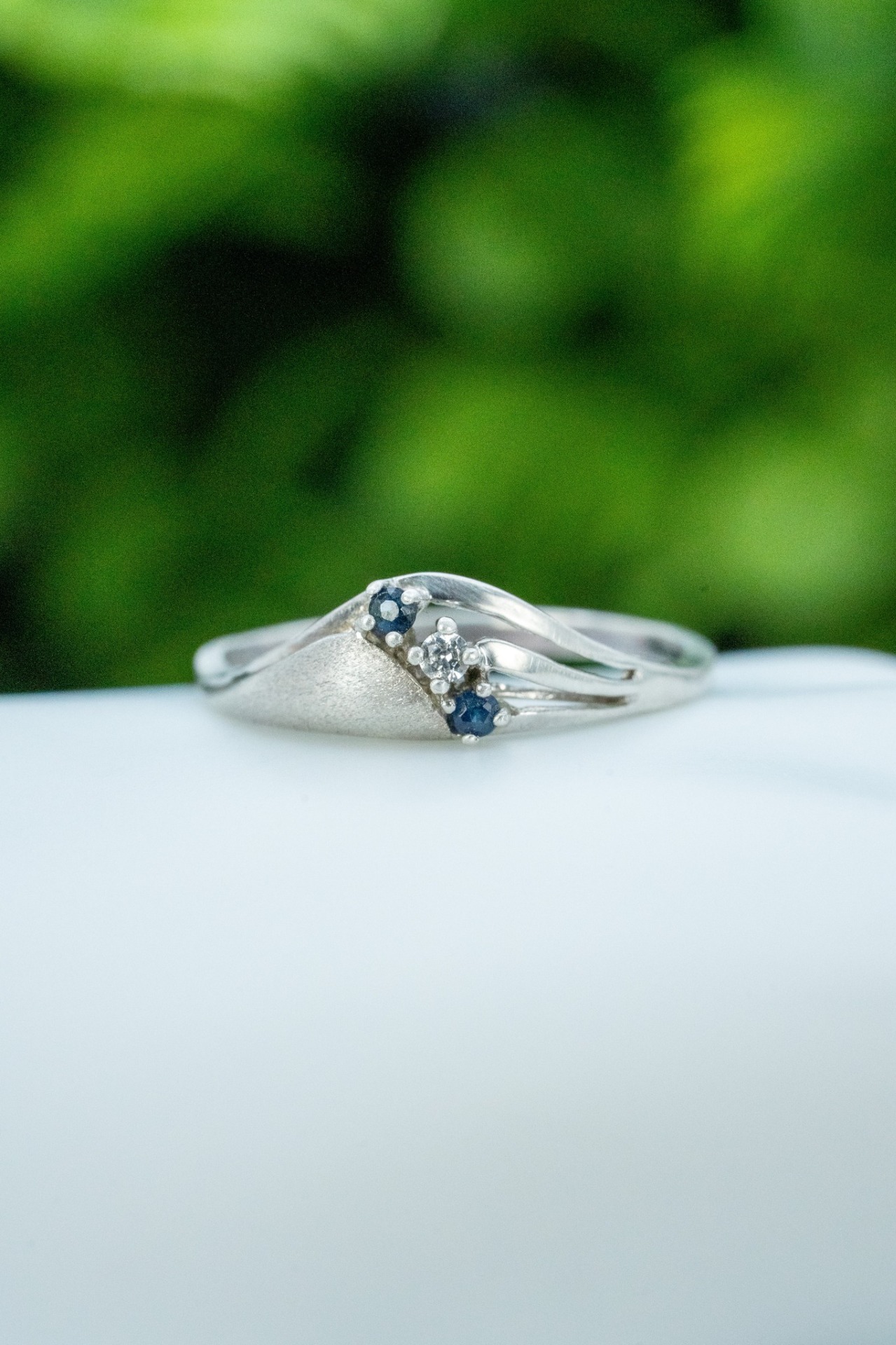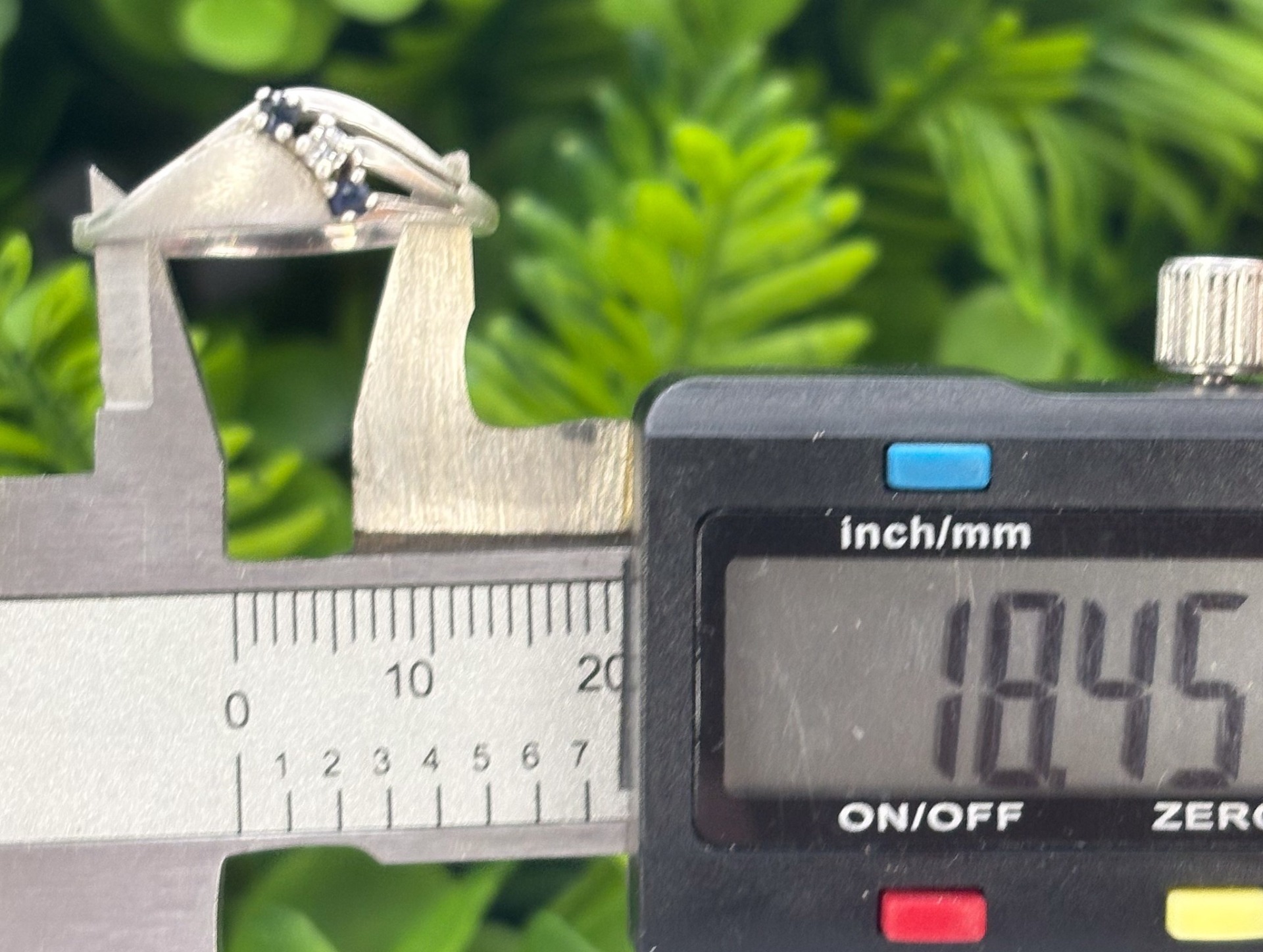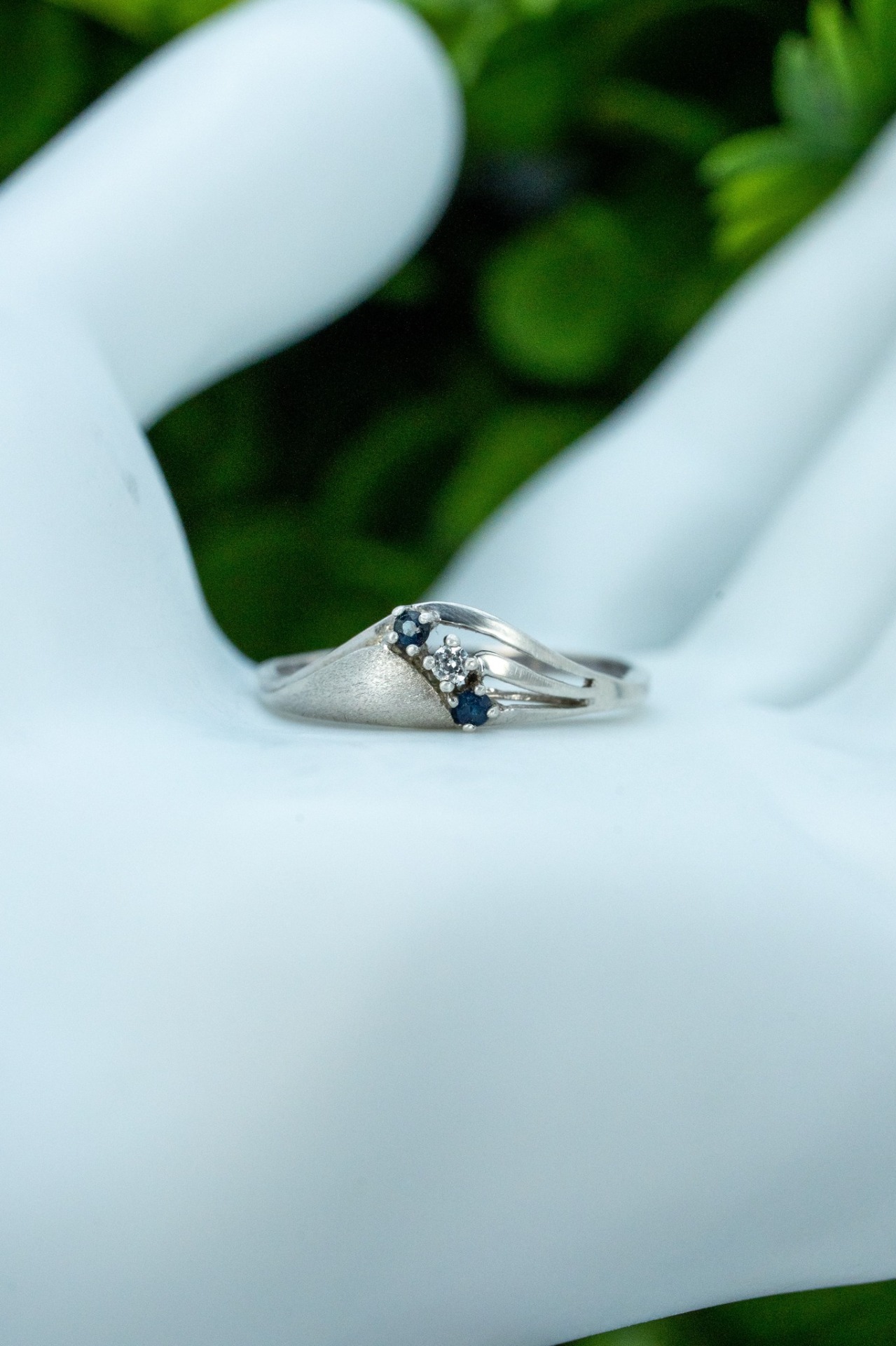 Inel "trio" vechi din argint, cu safire naturale și piatră cubic zirconia.