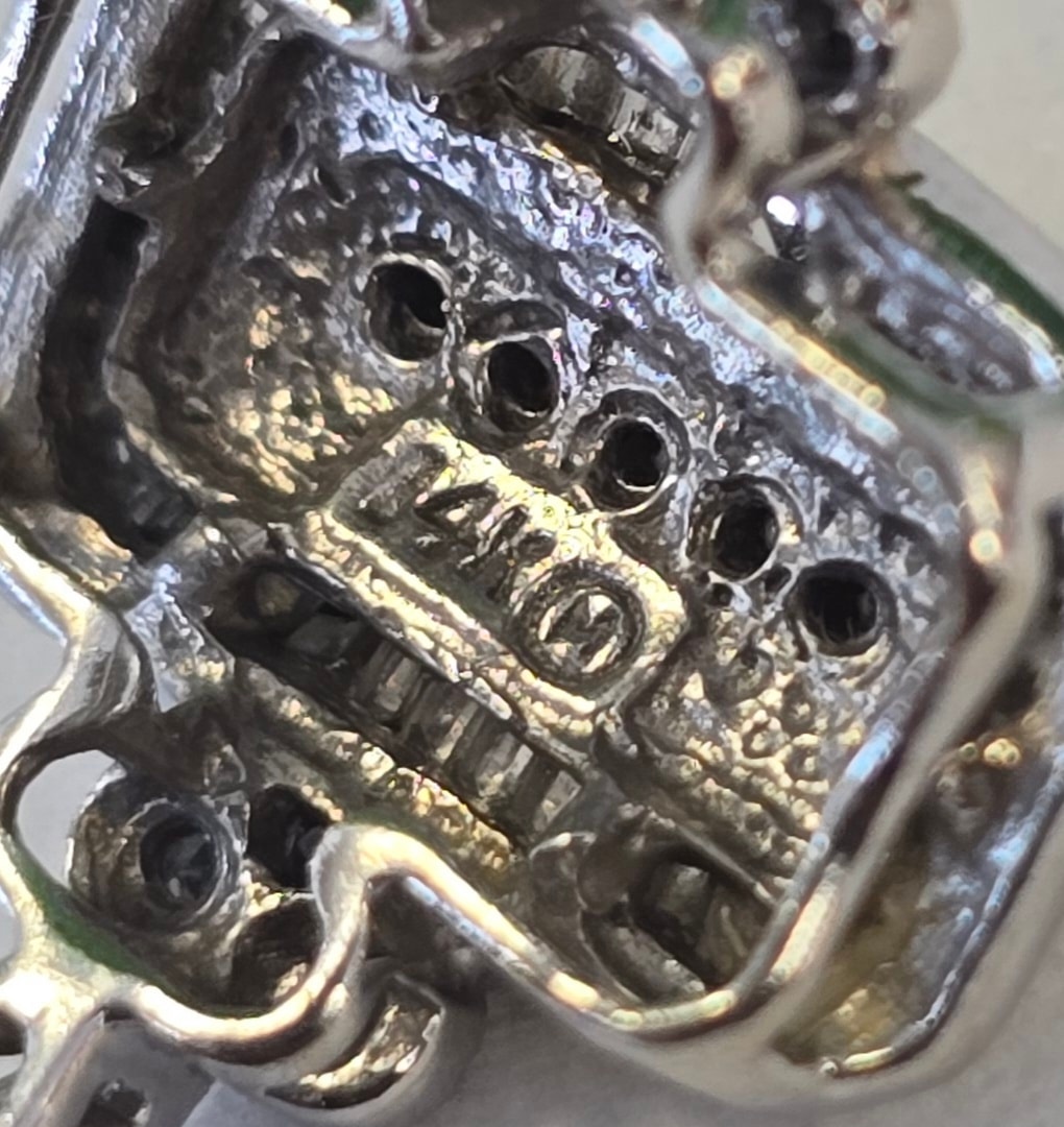 Prezintă marcaj "14K" pentru puritate aur și marcaj de meșter.