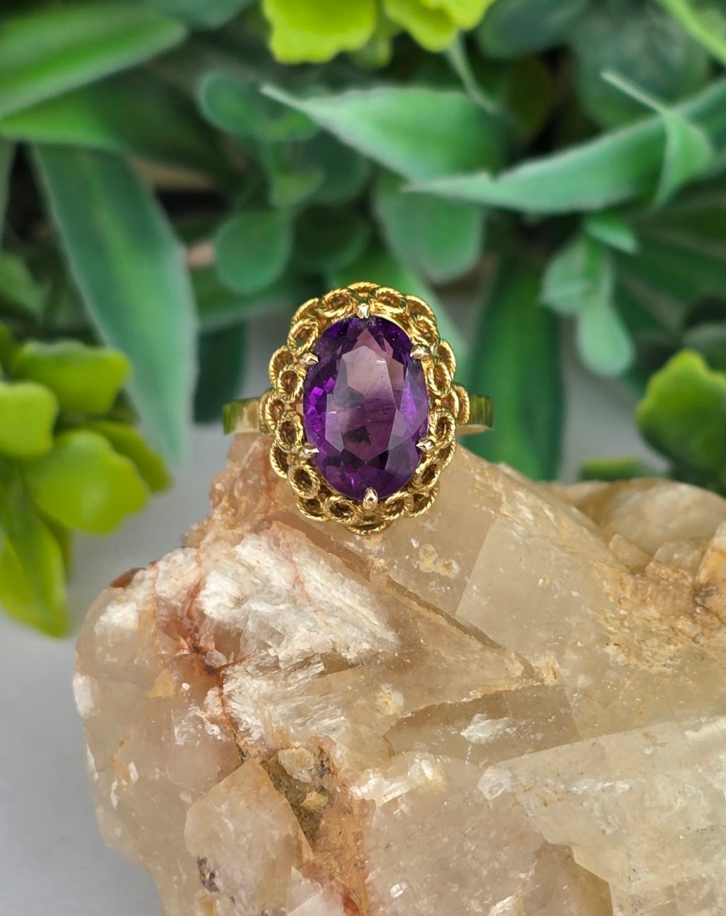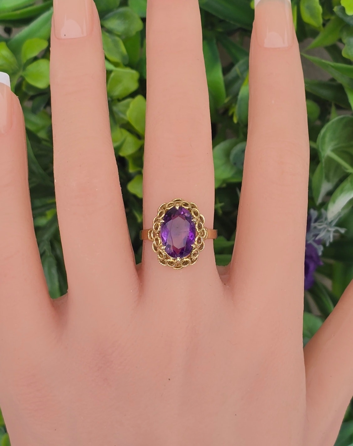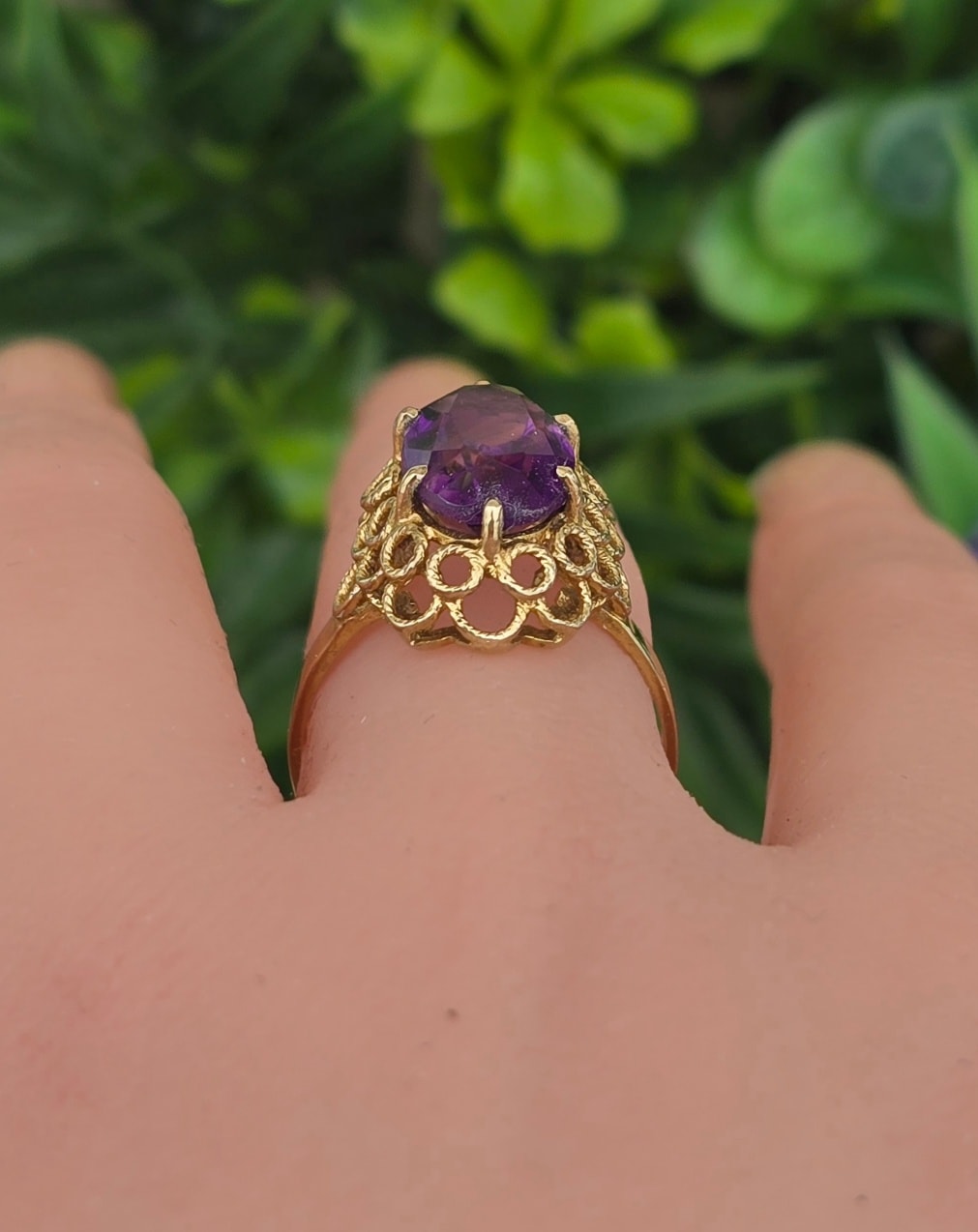 Inel vechi Art Deco din aur de 8K, cu ametist natural.