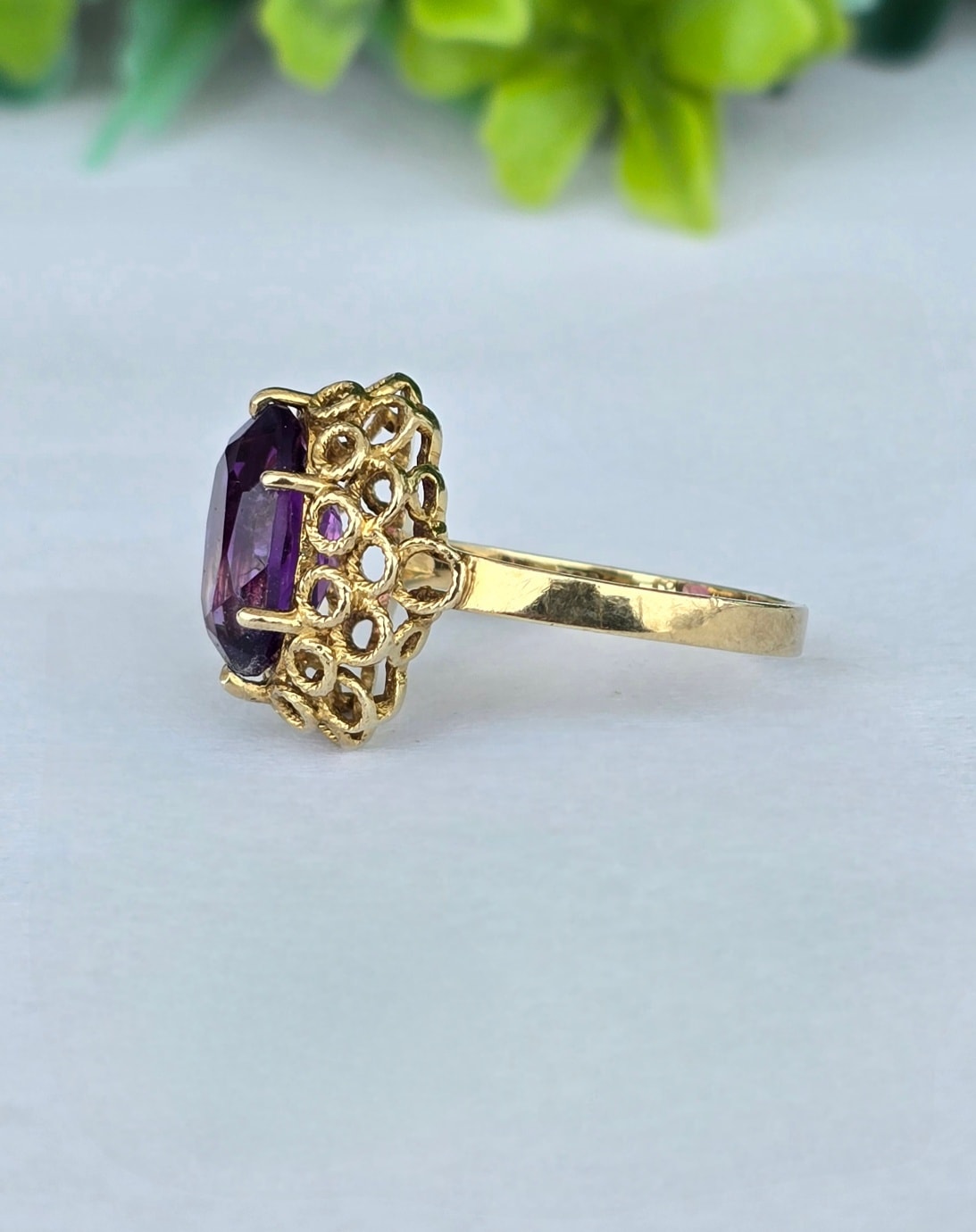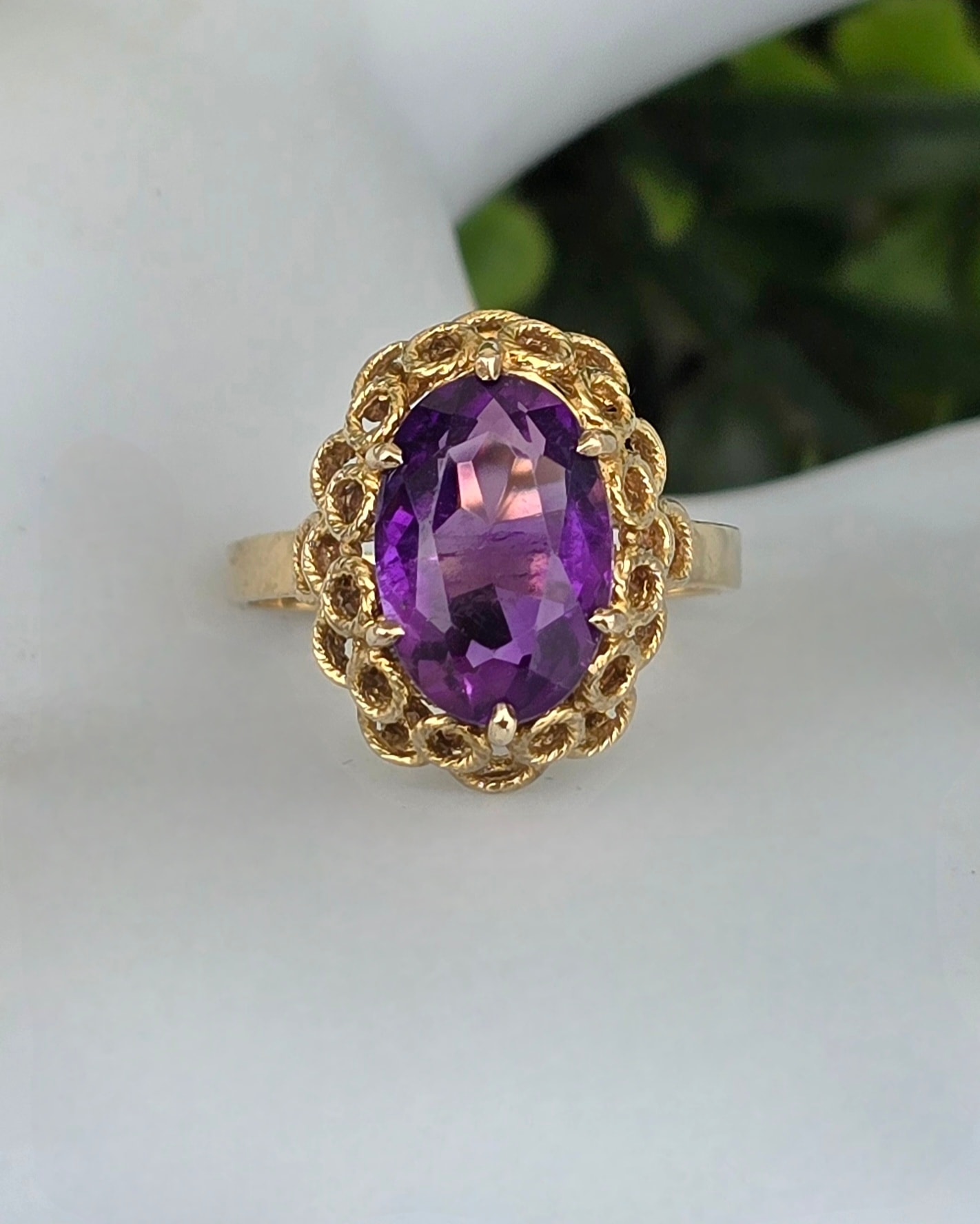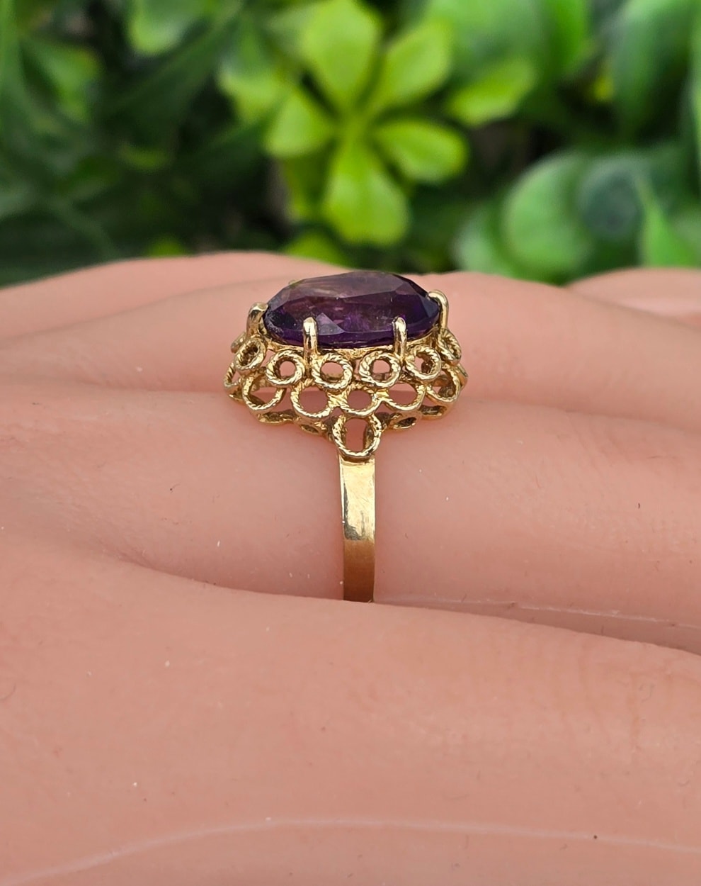 Inel vechi Art Deco din aur de 8K, cu ametist natural.