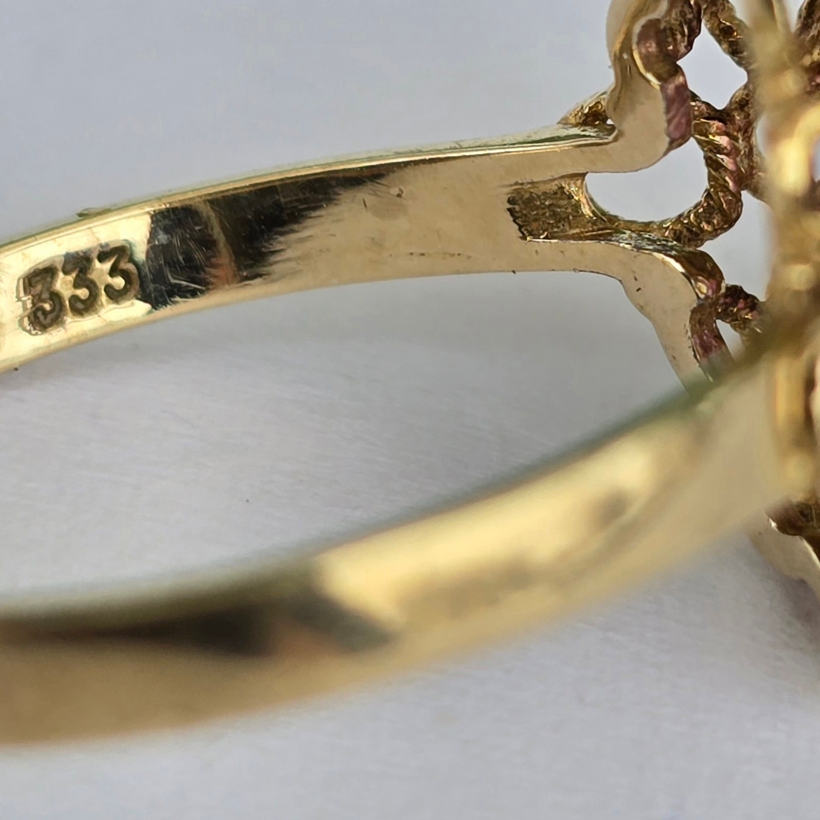 Prezintă marcaj 333 pentru puritate aur de 8K.