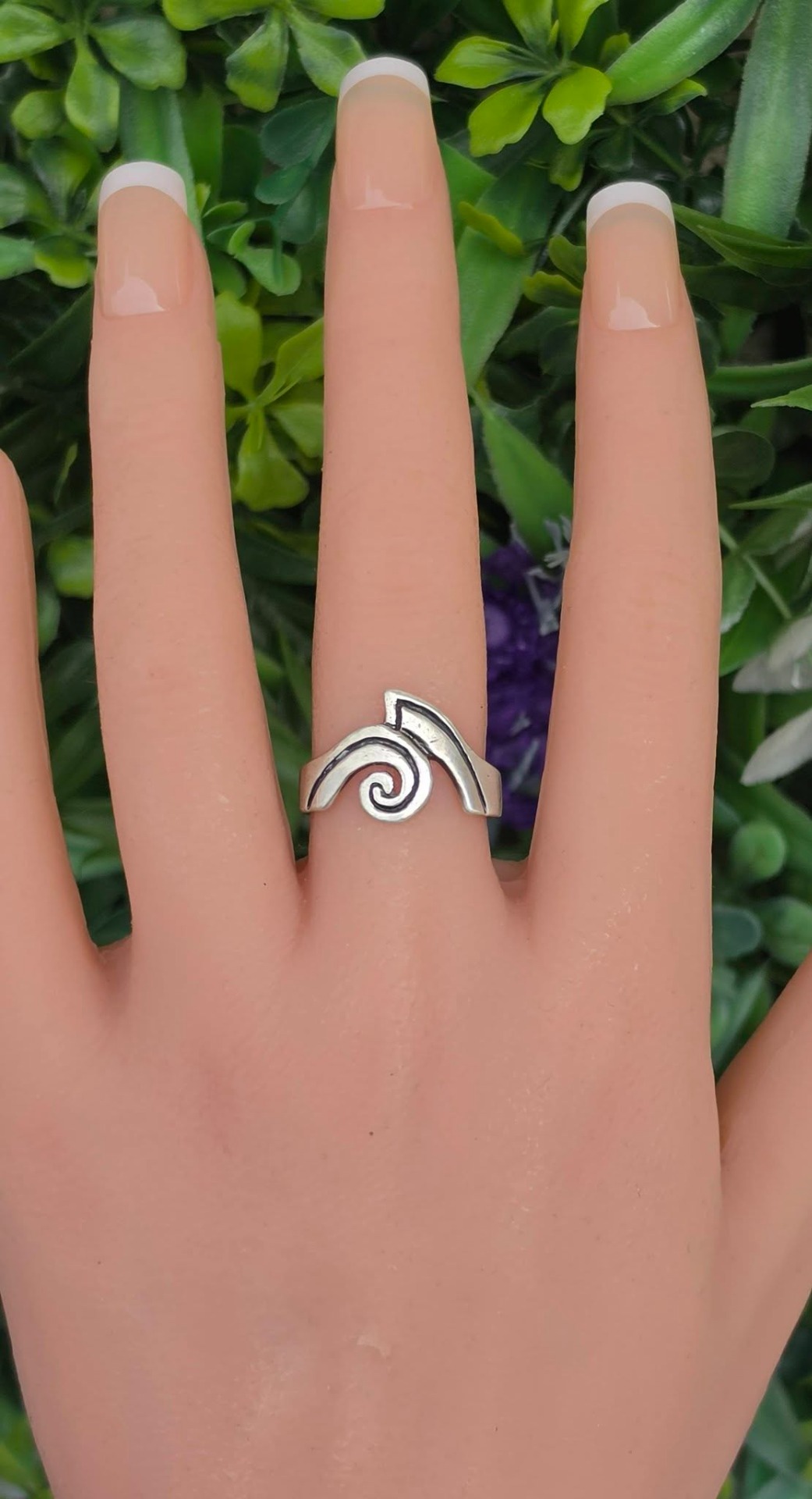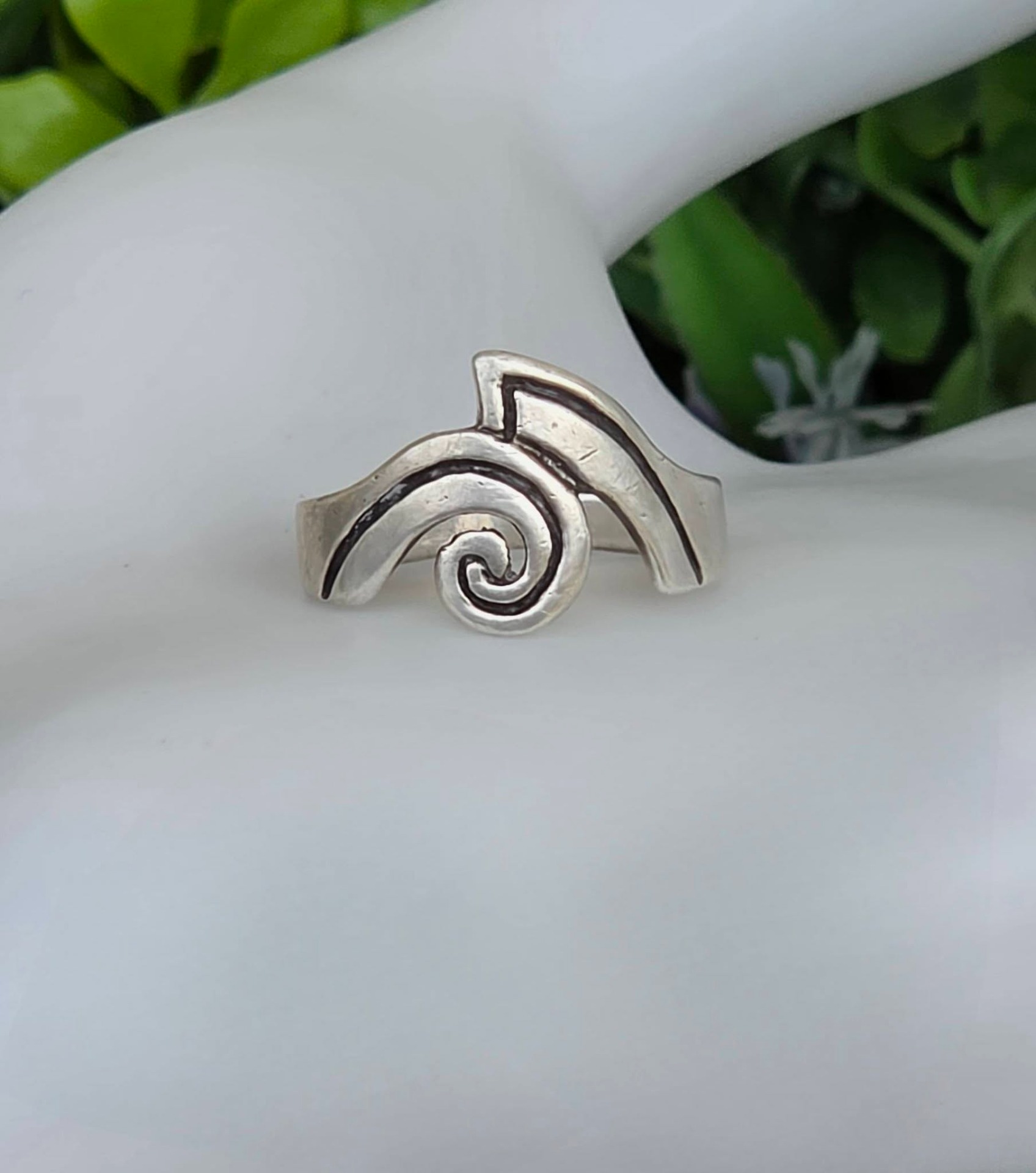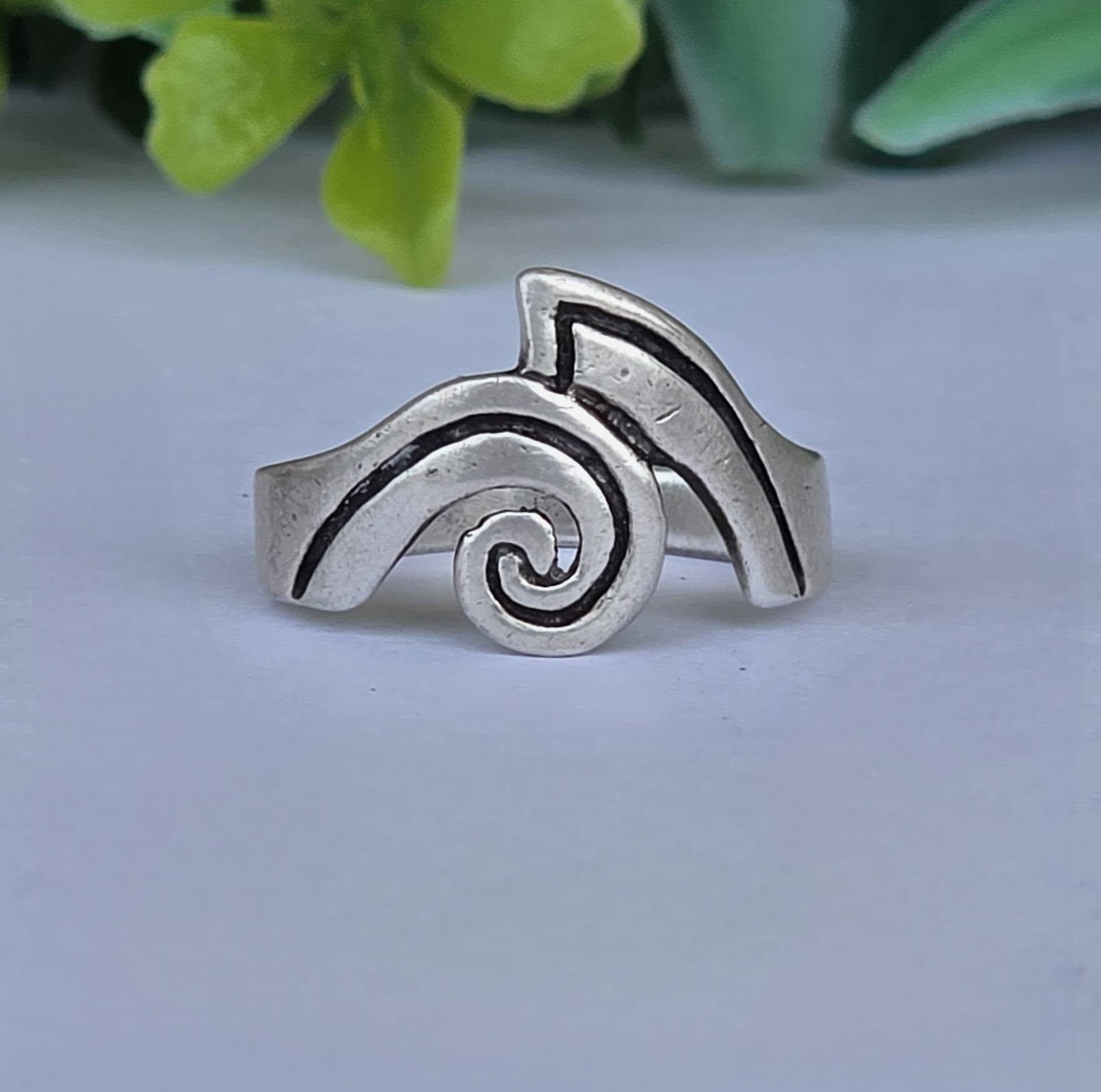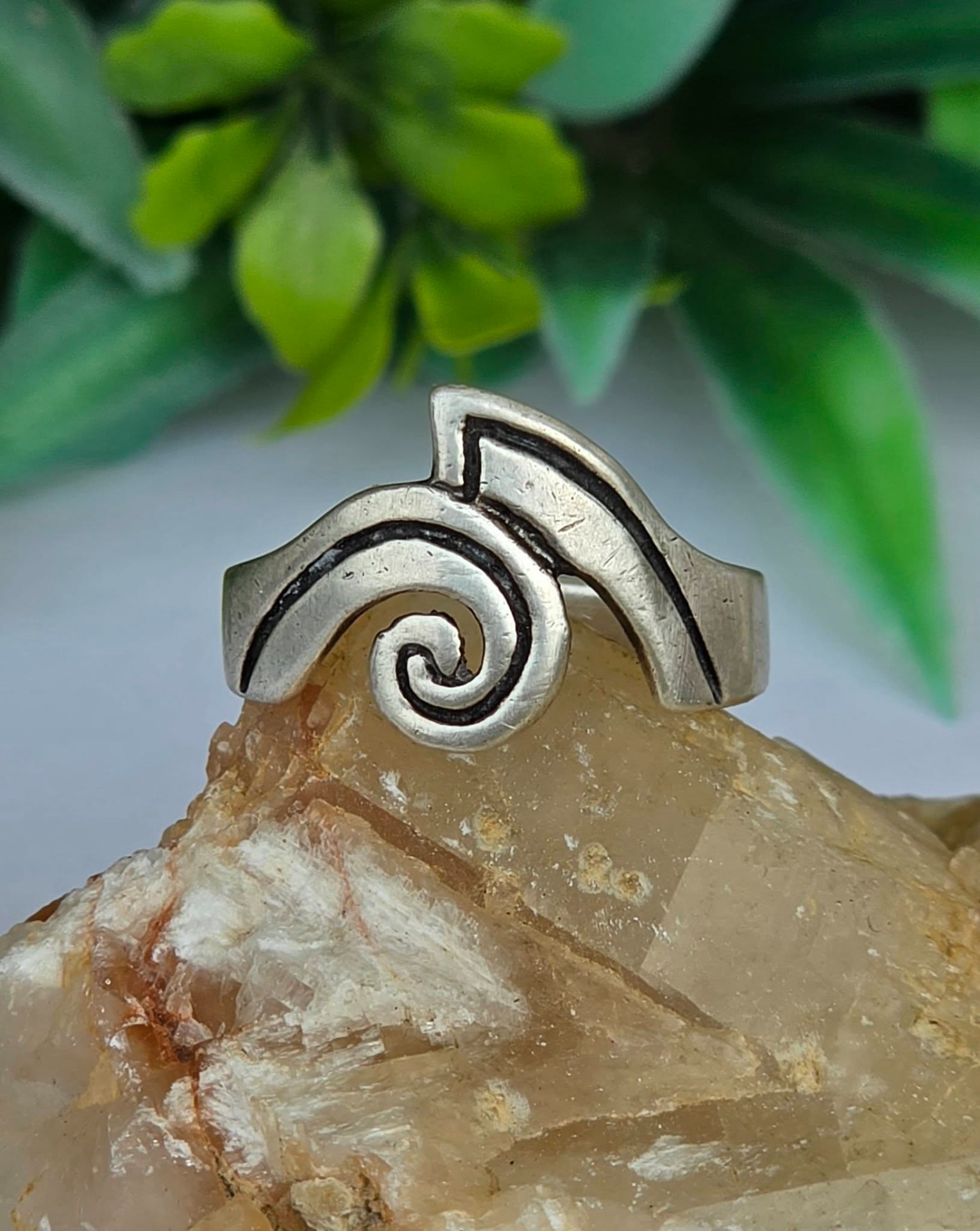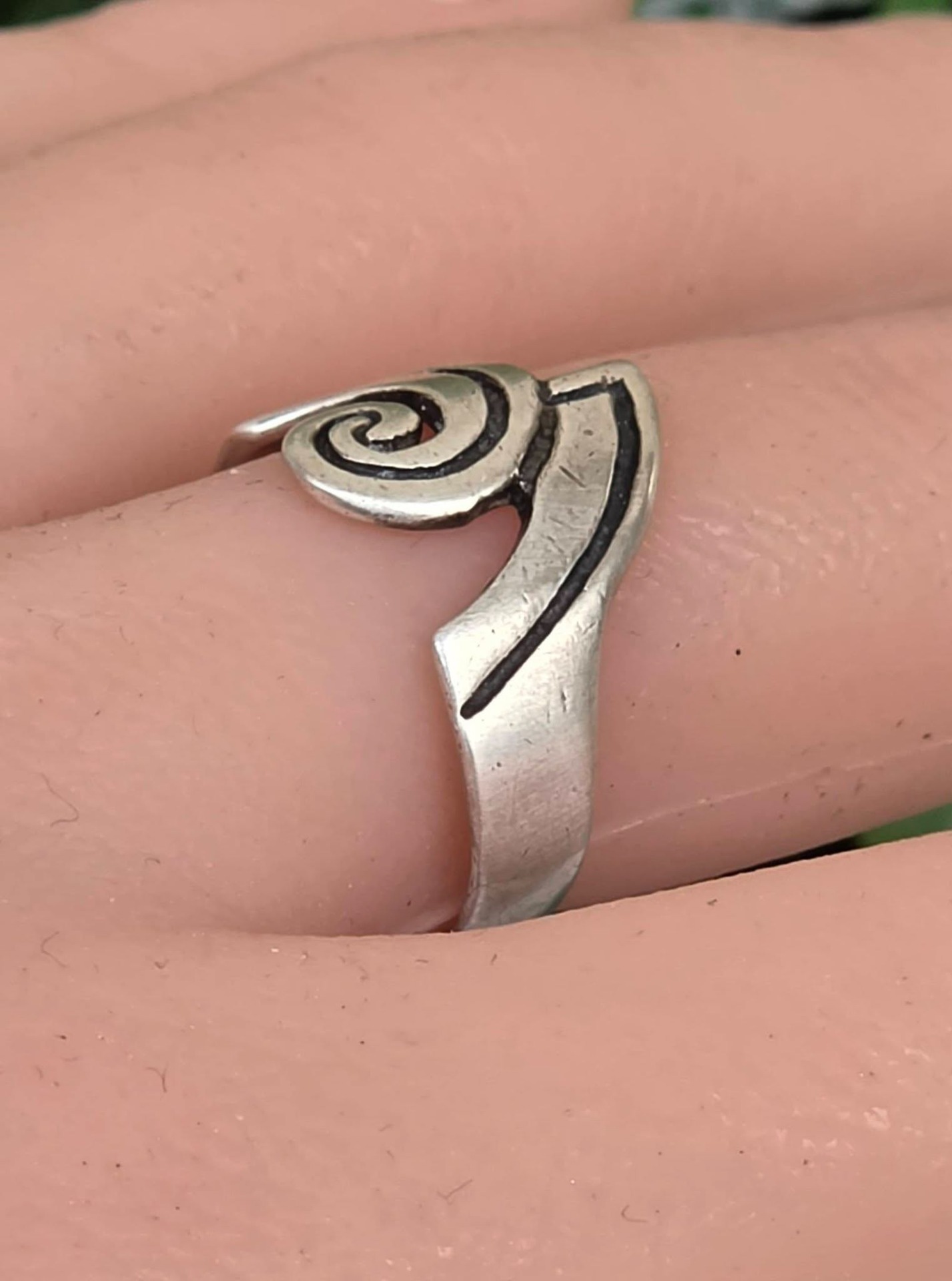 Inel vechi artizanal, din argint, frumos lucrat manual.