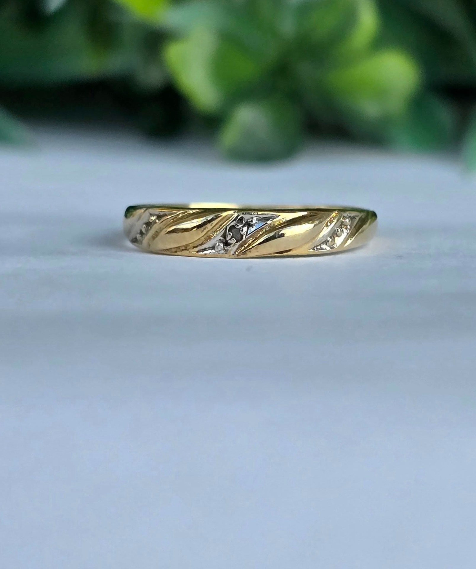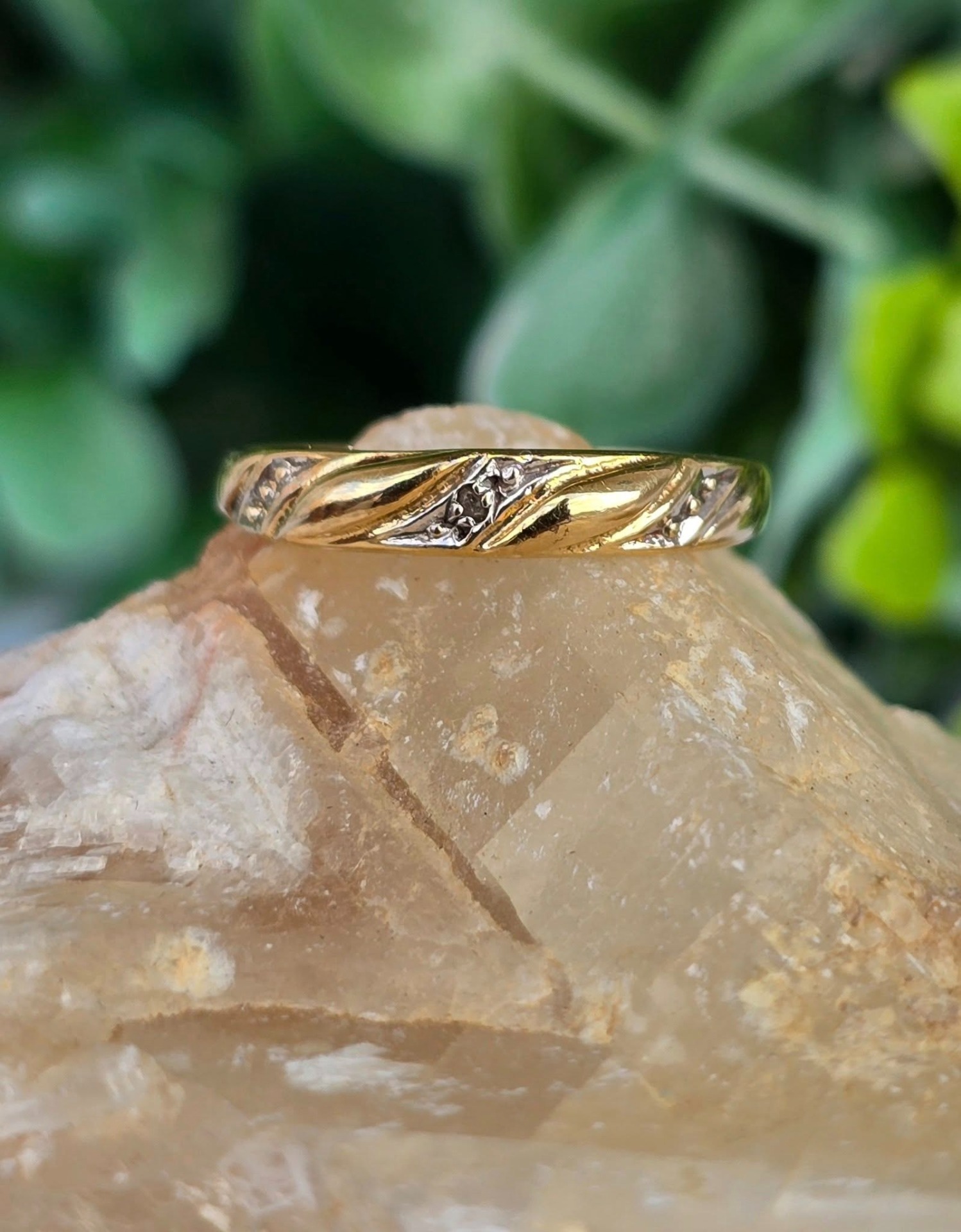 Inel vechi delicat, din aur de 8K, cu diamant natural.