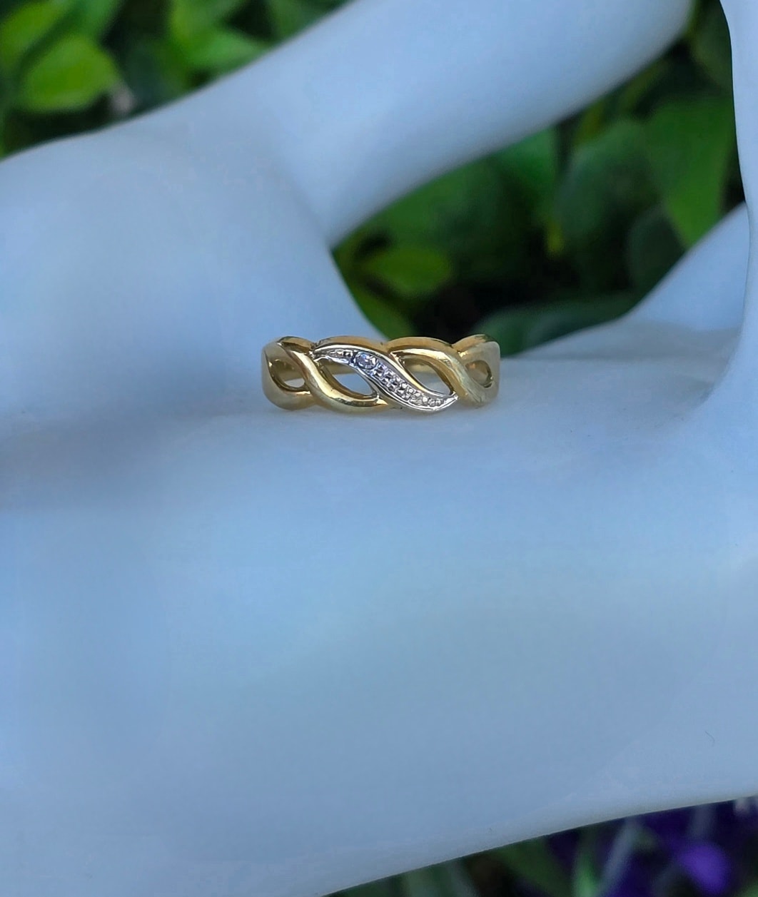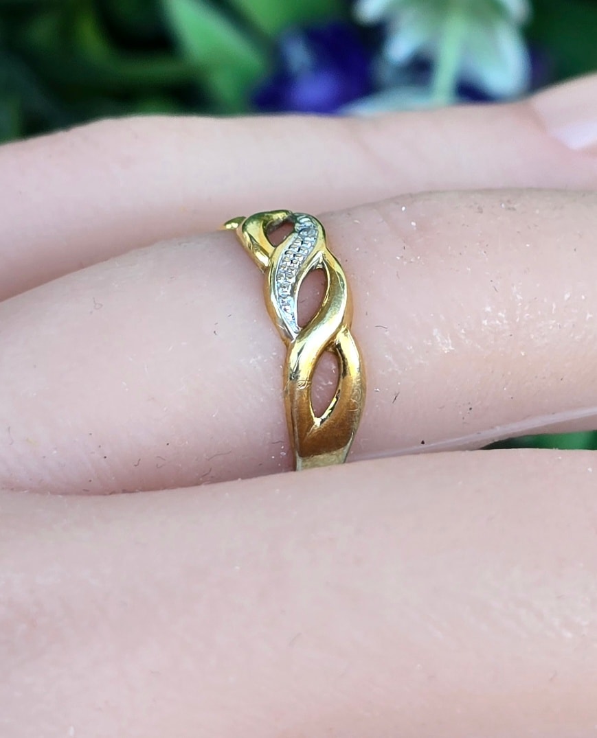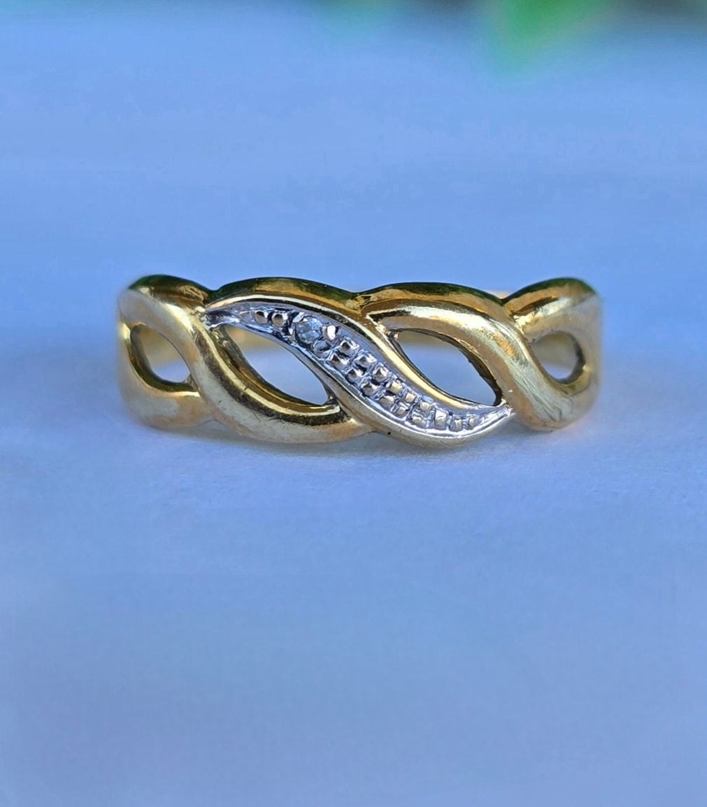 Inel vechi delicat, din aur de 8K, cu diamant natural.