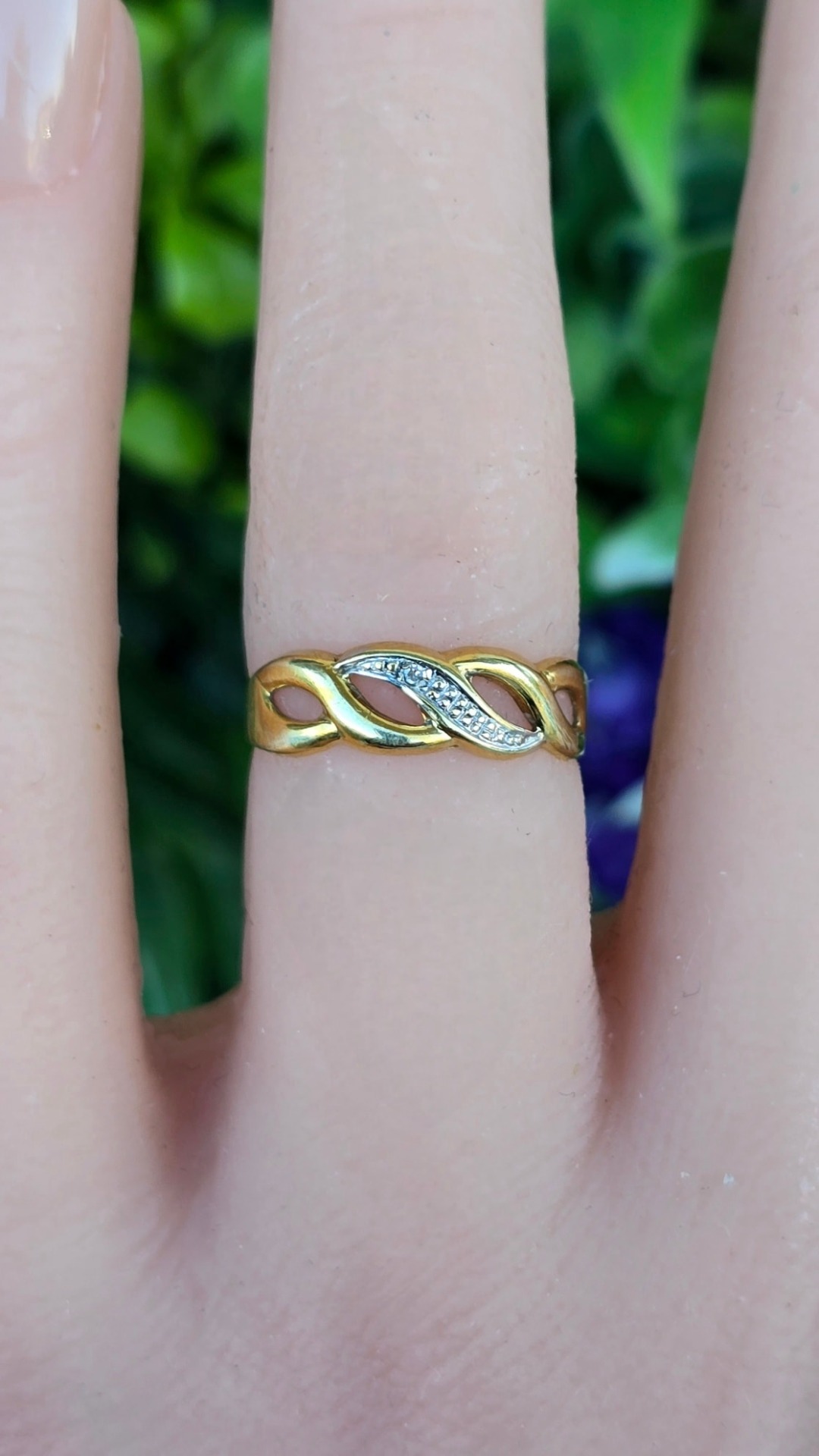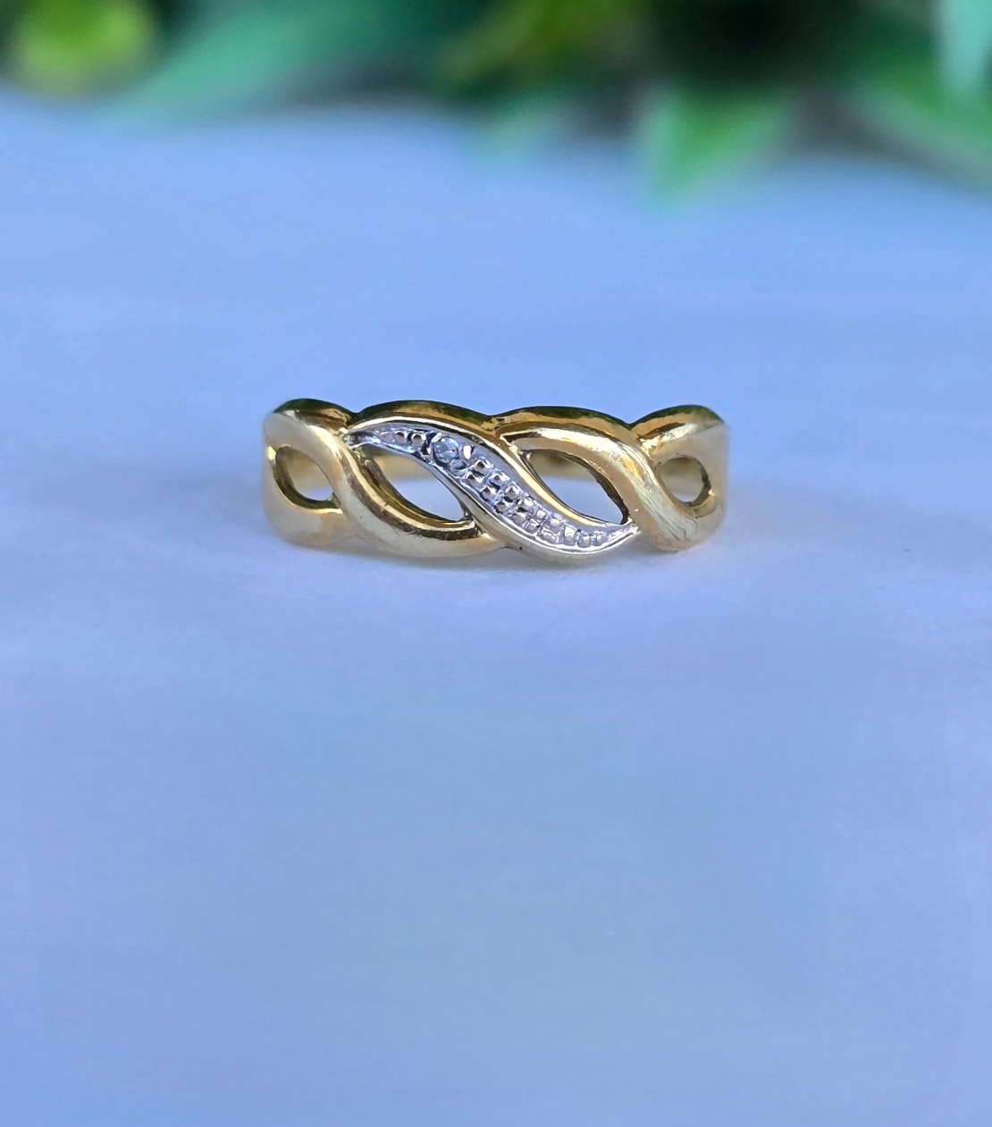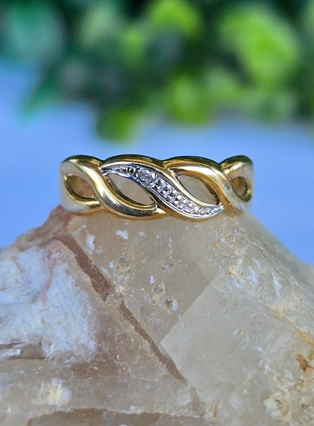 Inel vechi delicat, din aur de 8K, cu diamant natural.