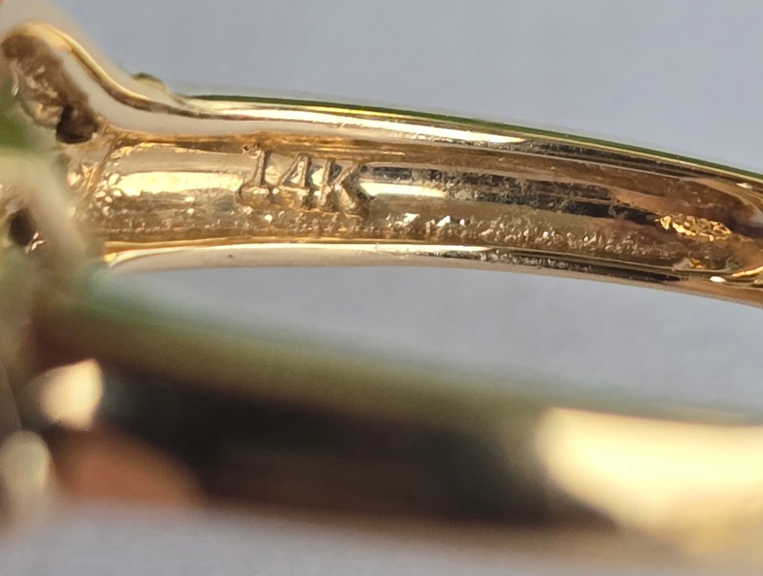 Prezintă marcaj "14K" pentru puritate aur și marcaj de meșter.