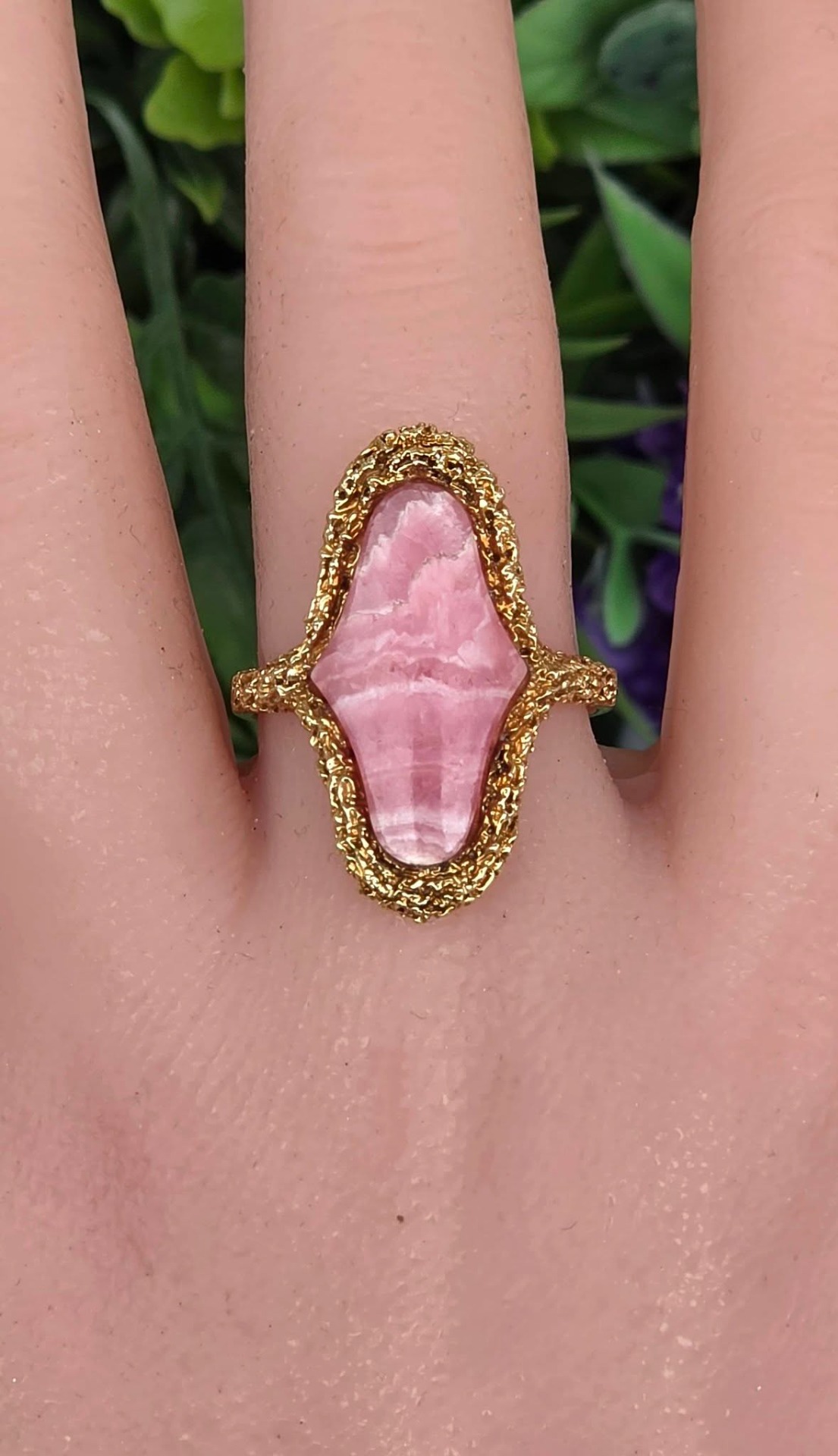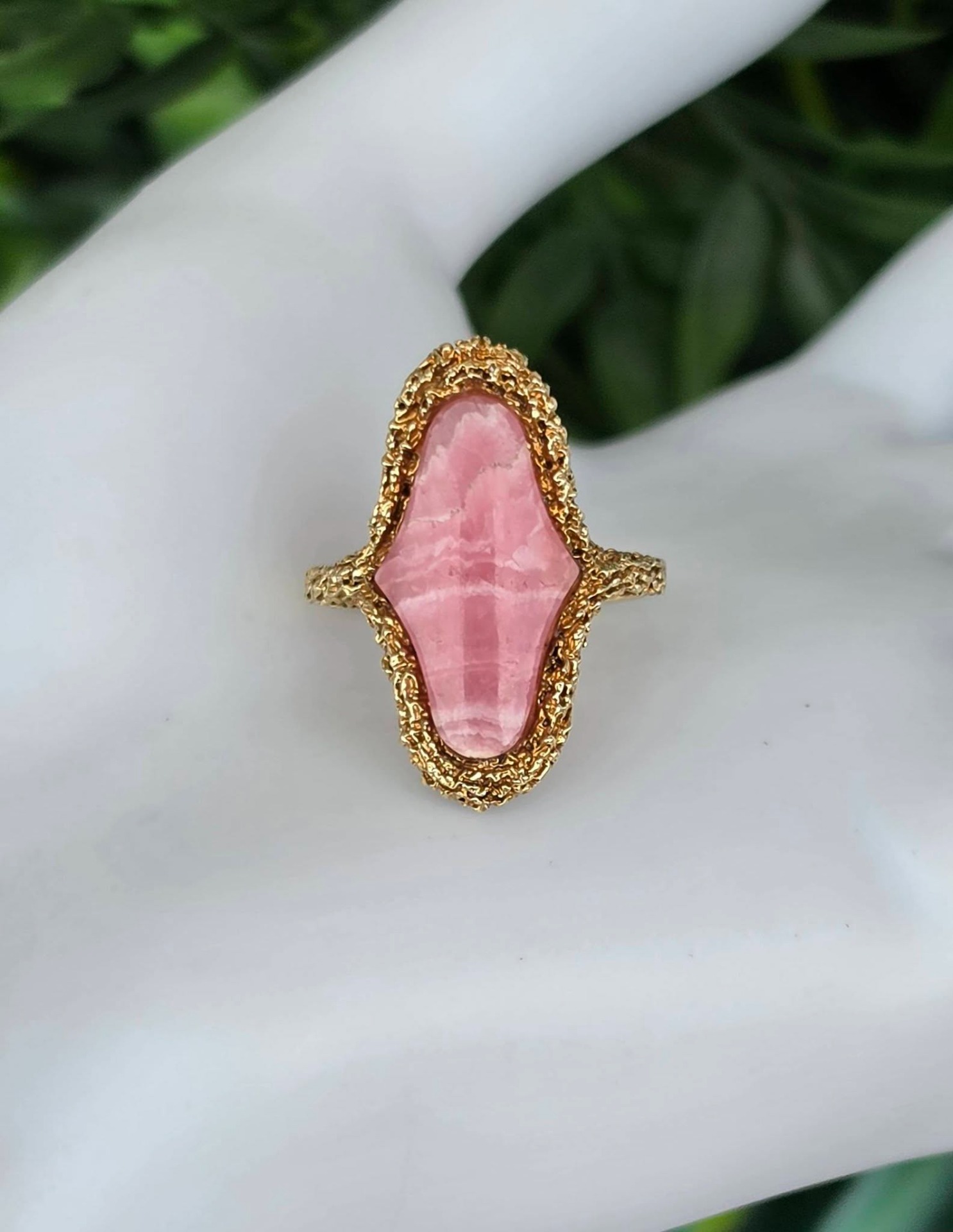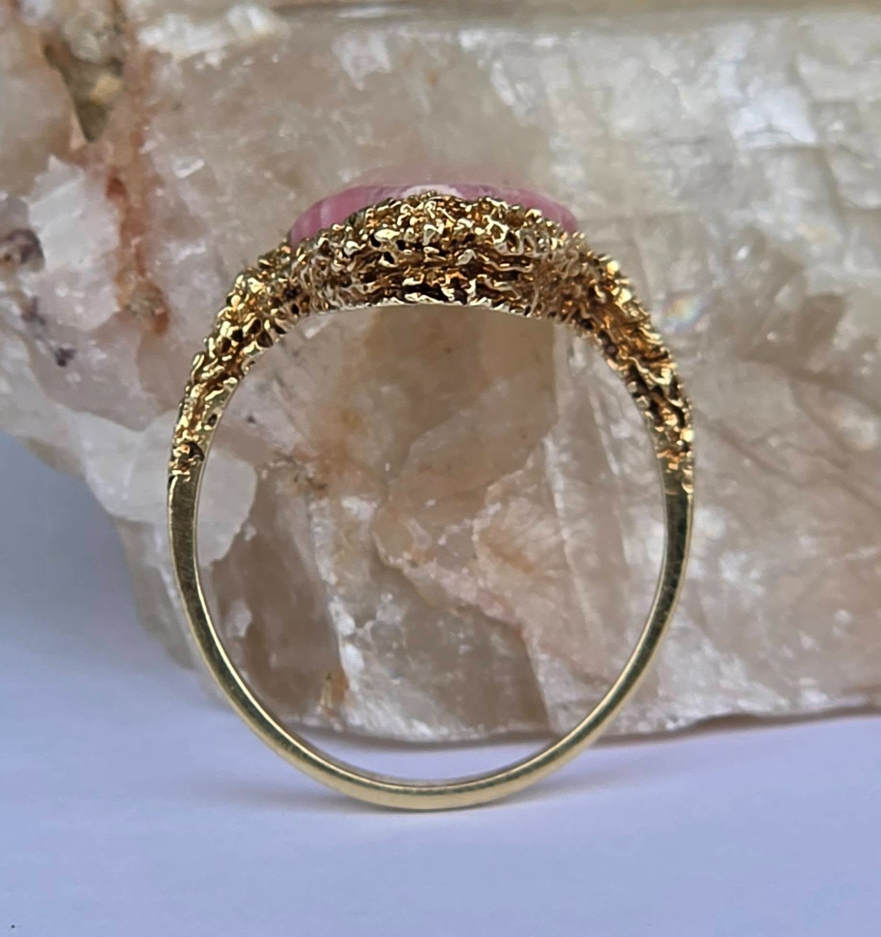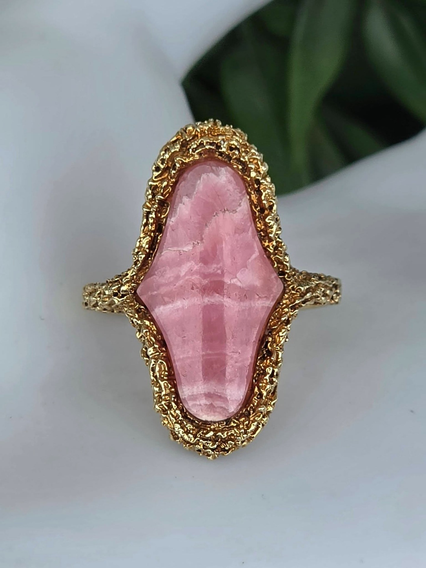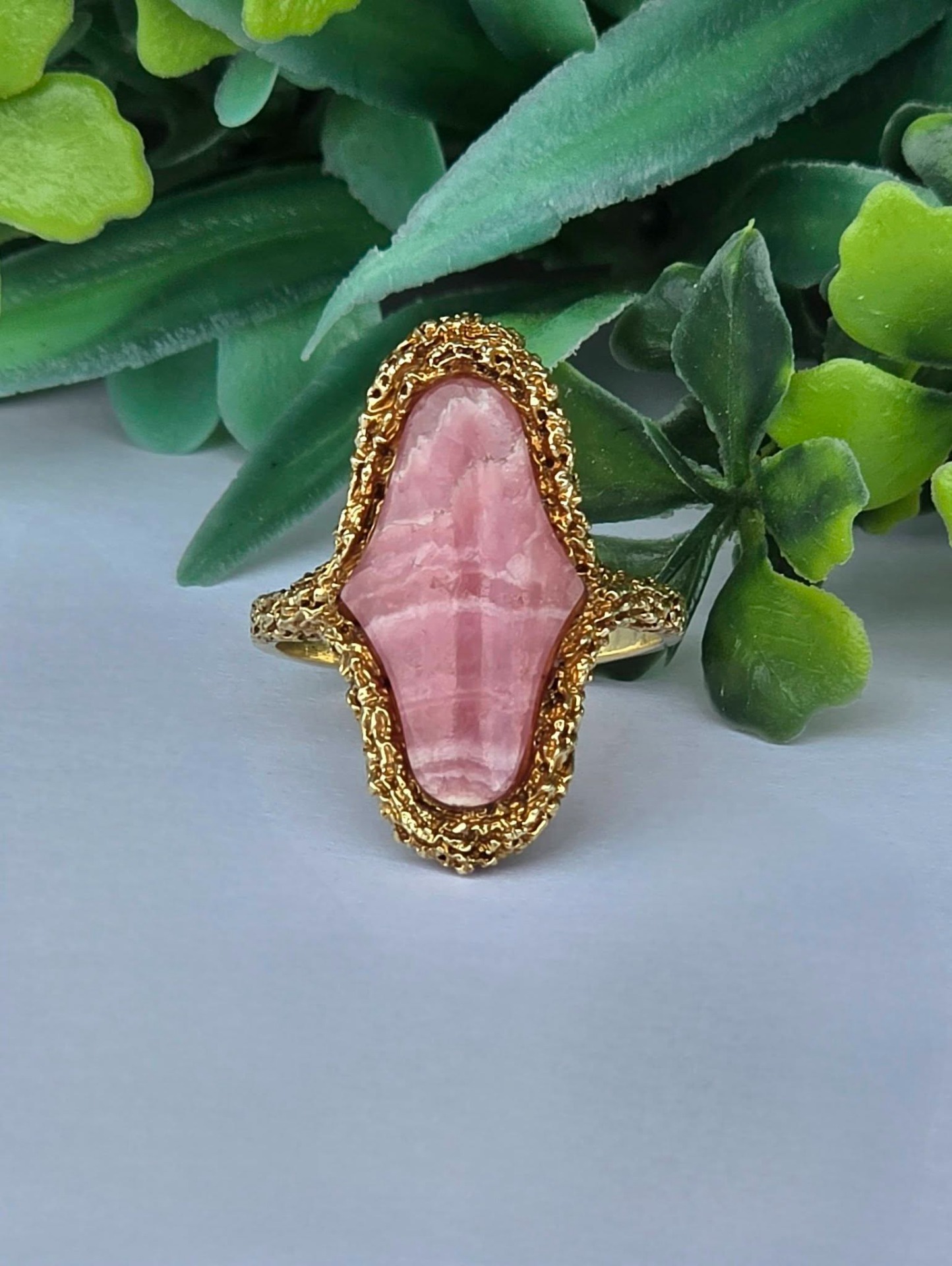 Inel vechi deosebit, din aur de 14K, cu rodocrozit natural.