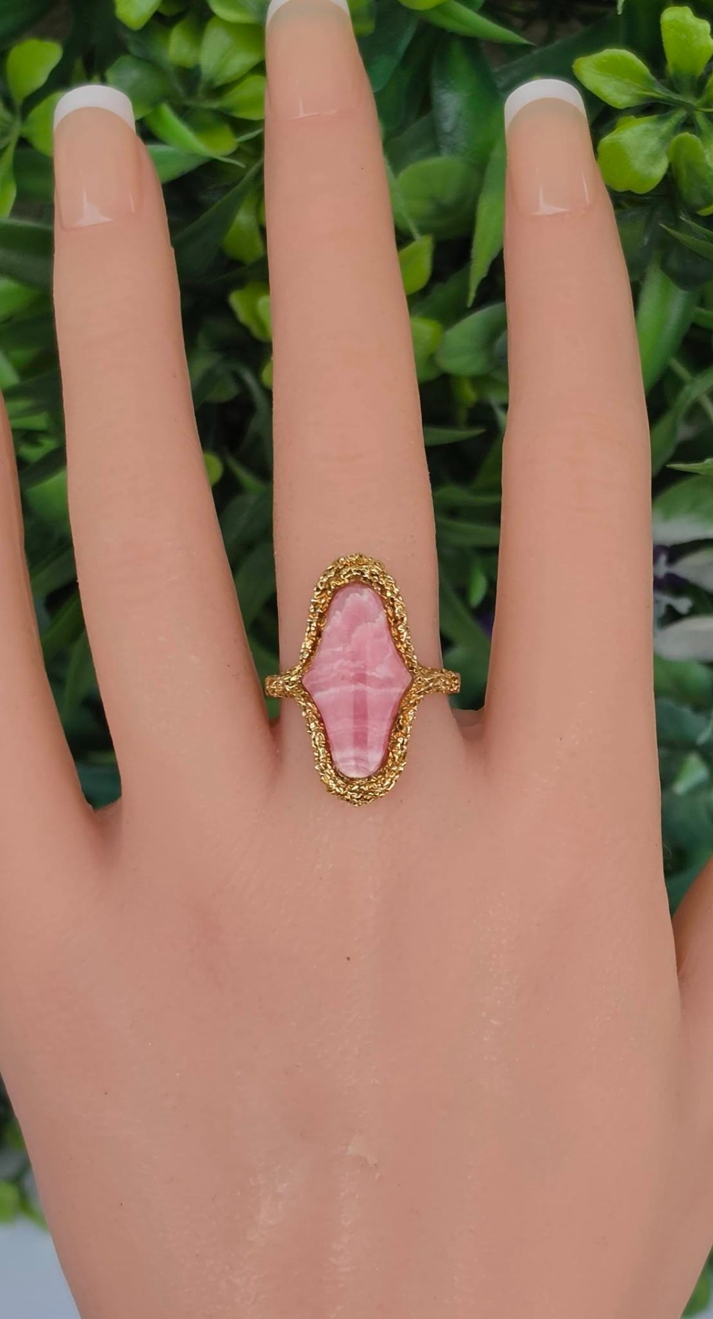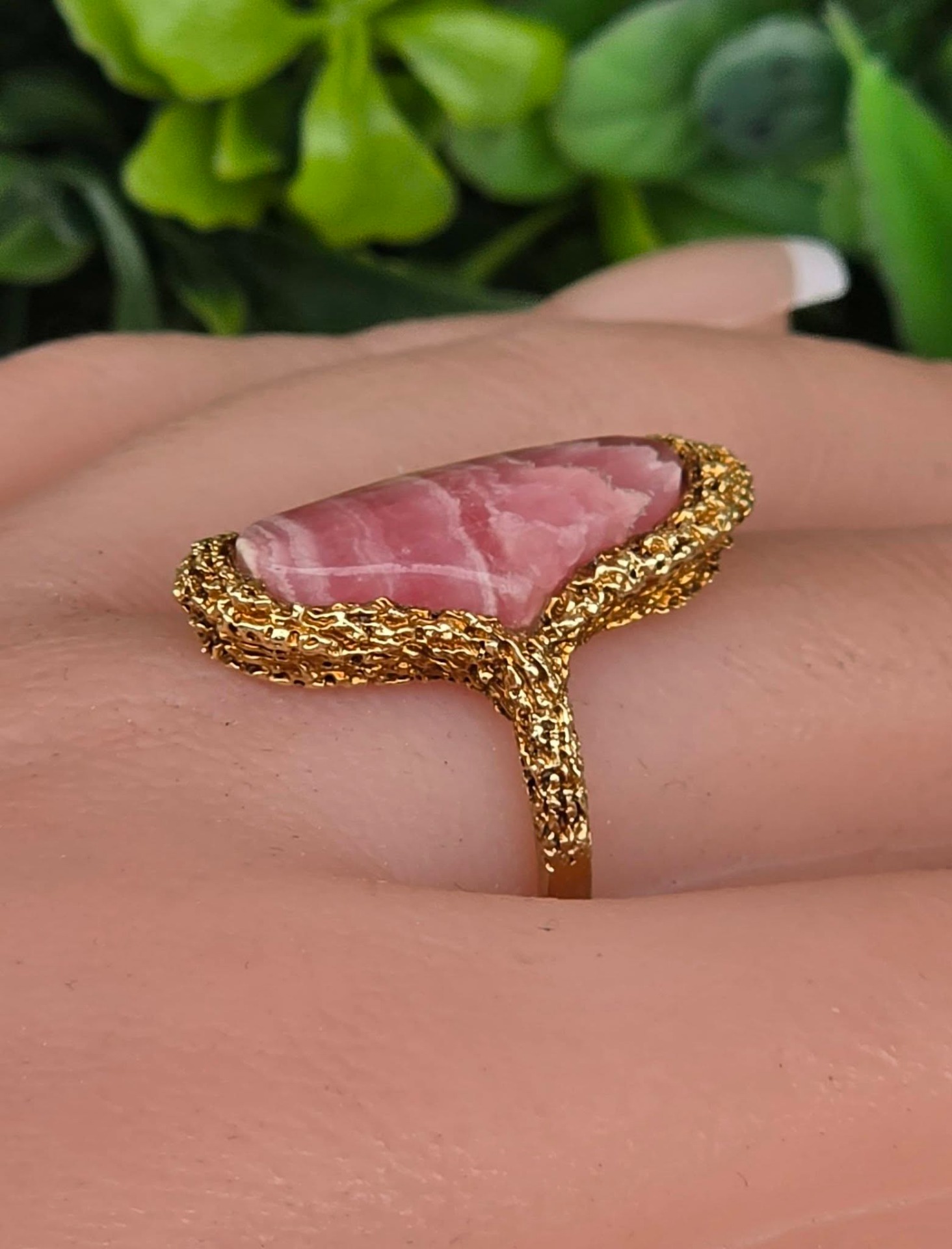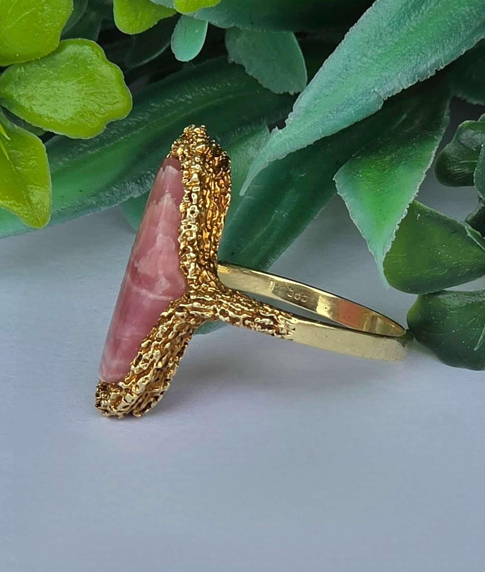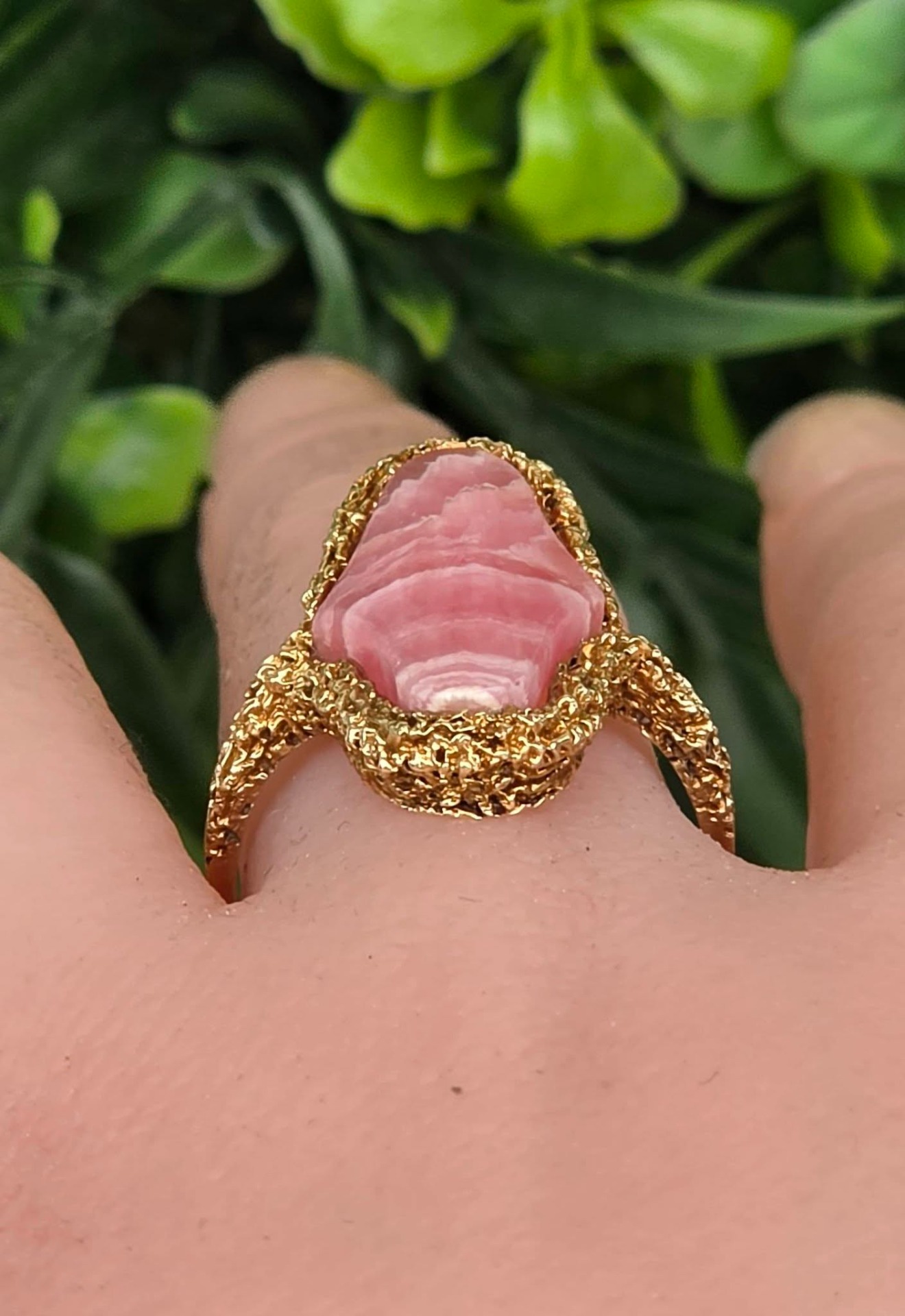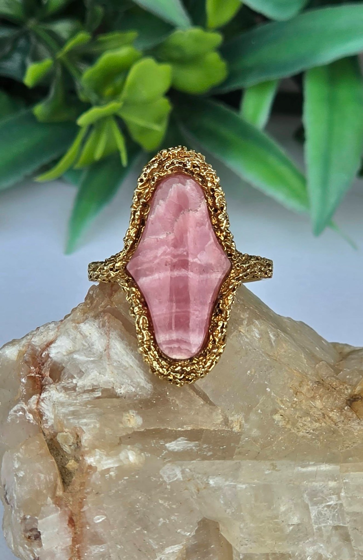 Inel vechi deosebit, din aur de 14K, cu rodocrozit natural.