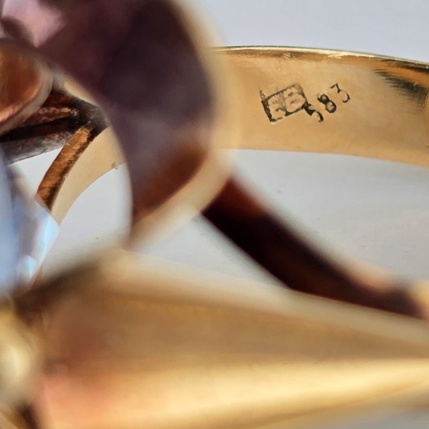 Prezintă marcaj 583 pentru puritate aur de 14K și marcaj de meșter.