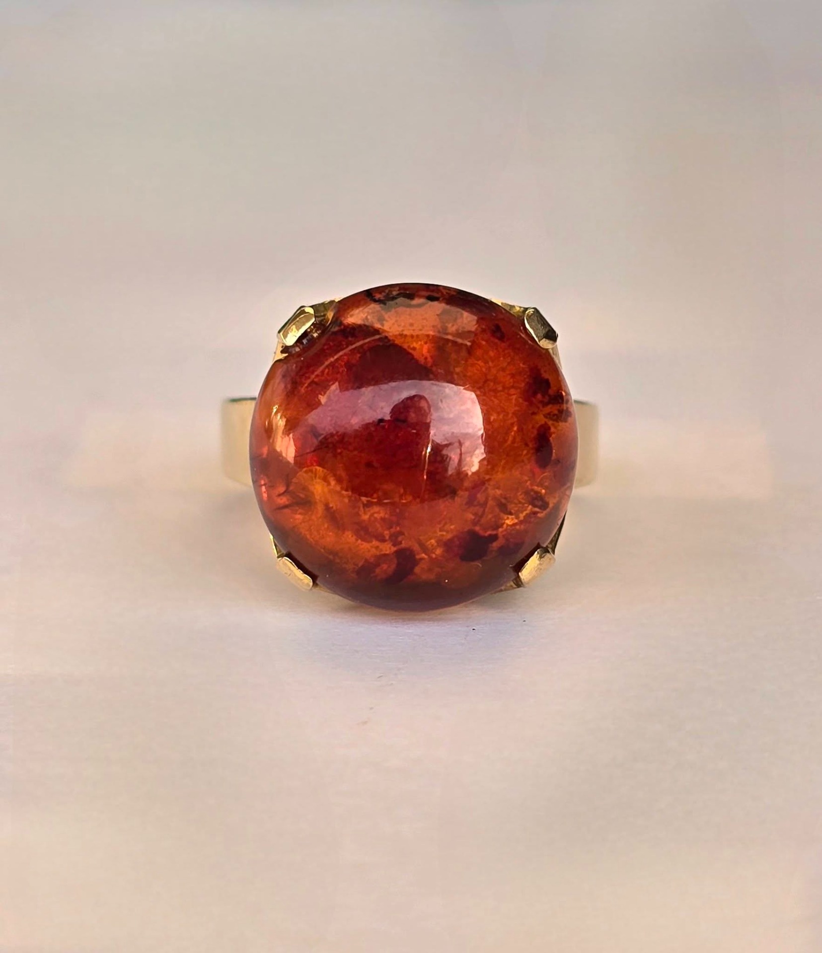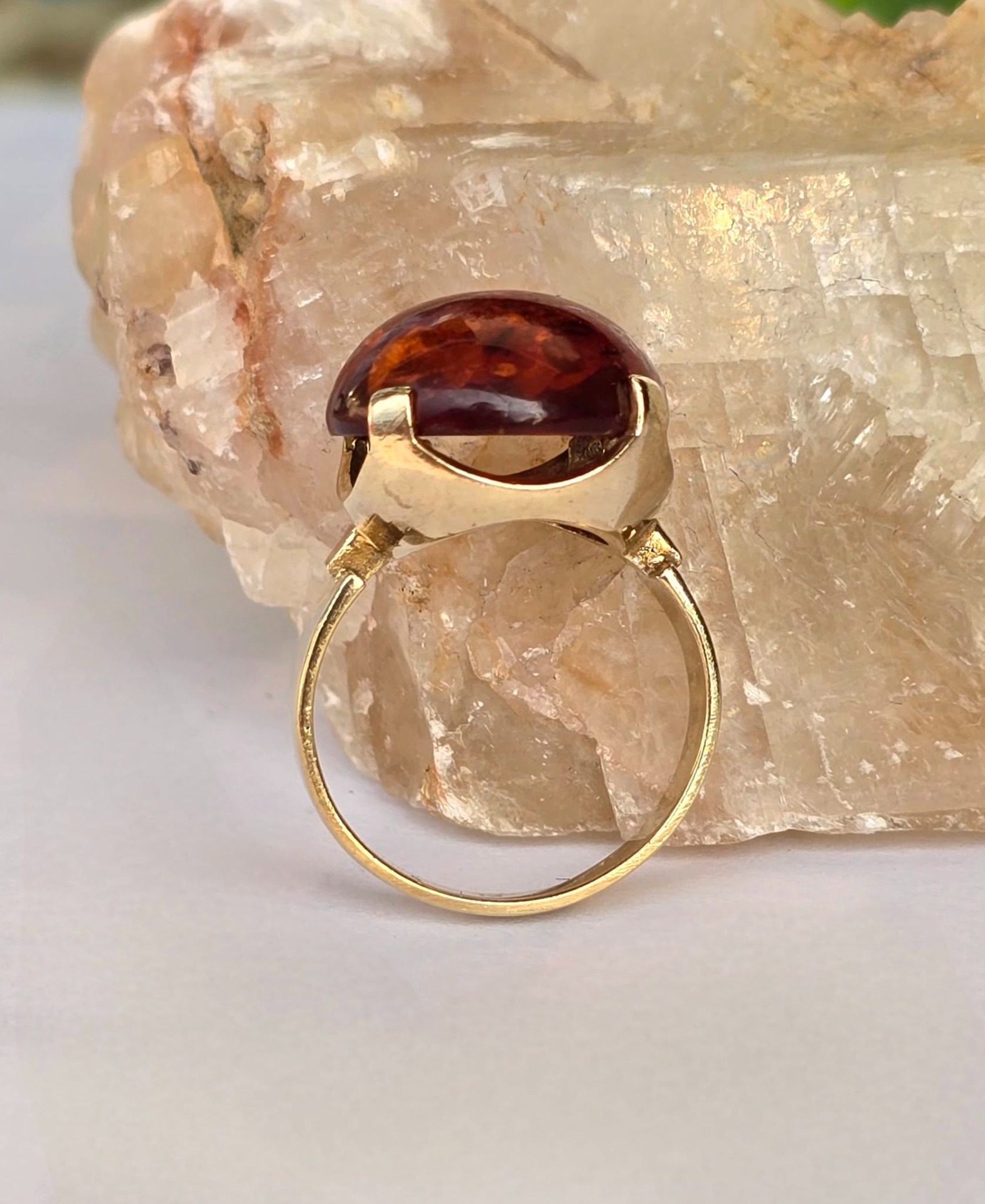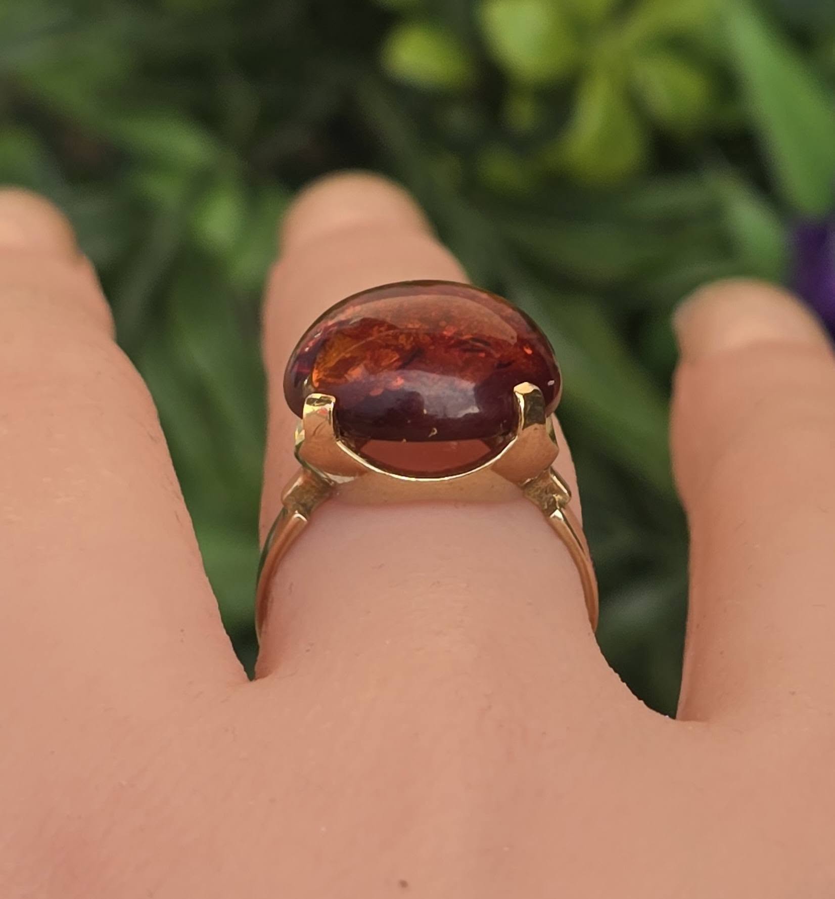 Inel vechi, deosebit, din aur de 8K, cu chihlimbar natural.