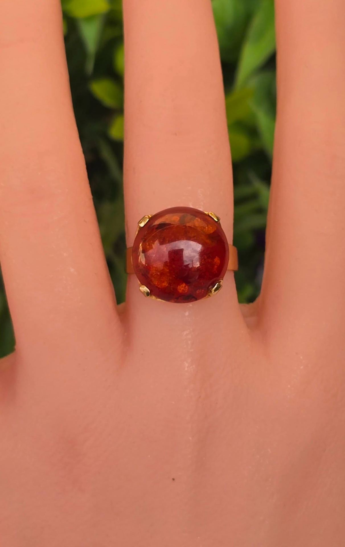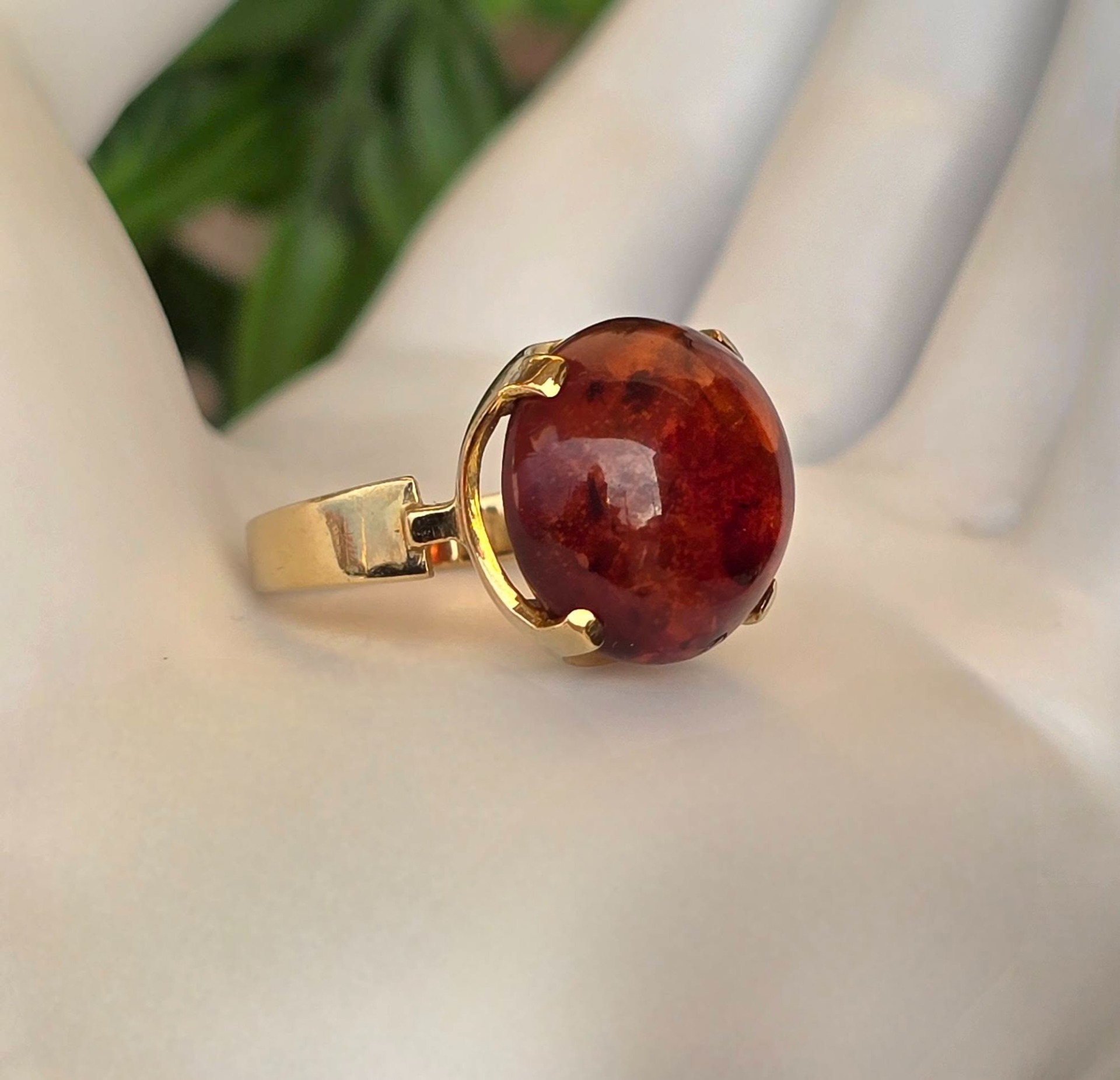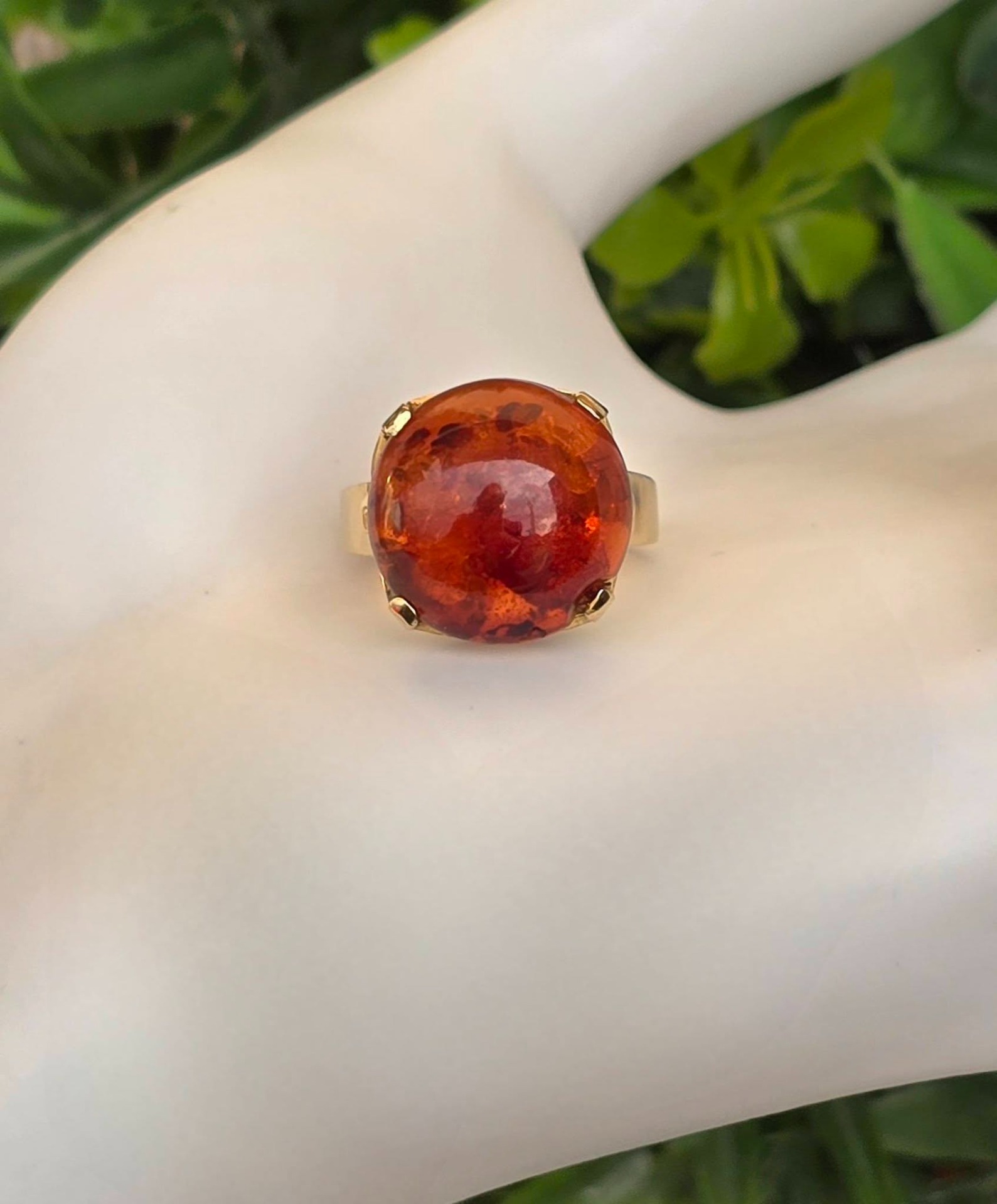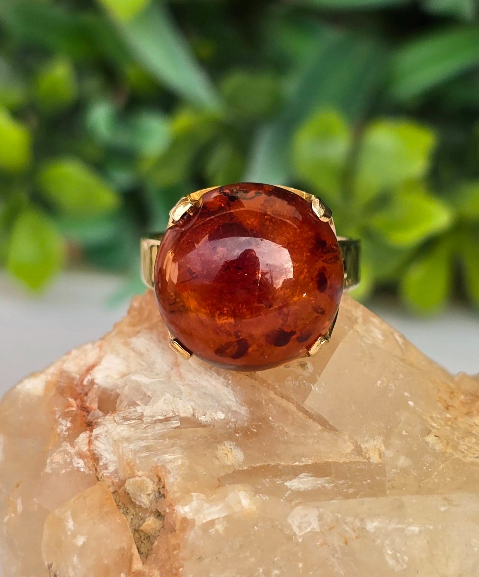 Inel vechi, deosebit, din aur de 8K, cu chihlimbar natural.
