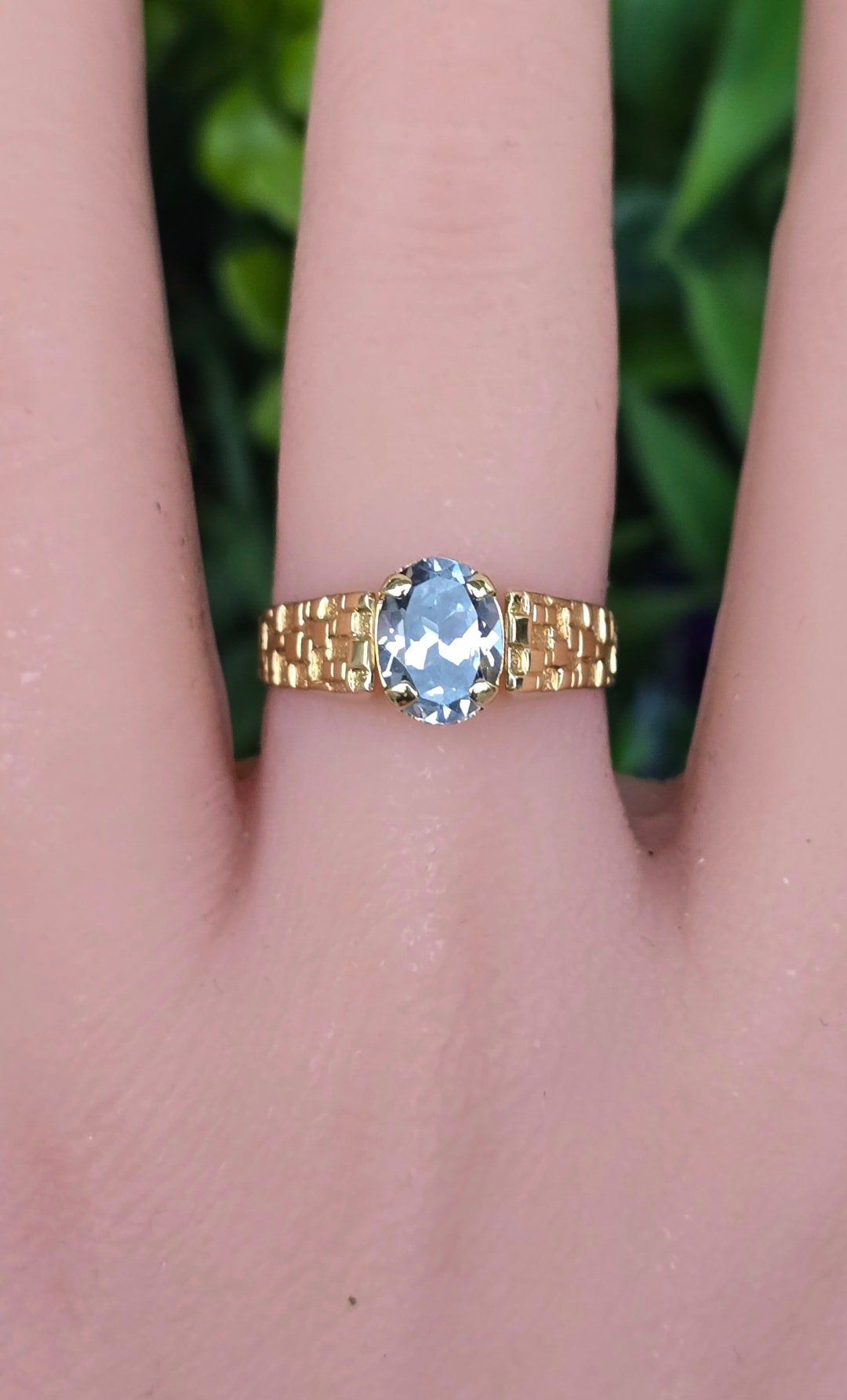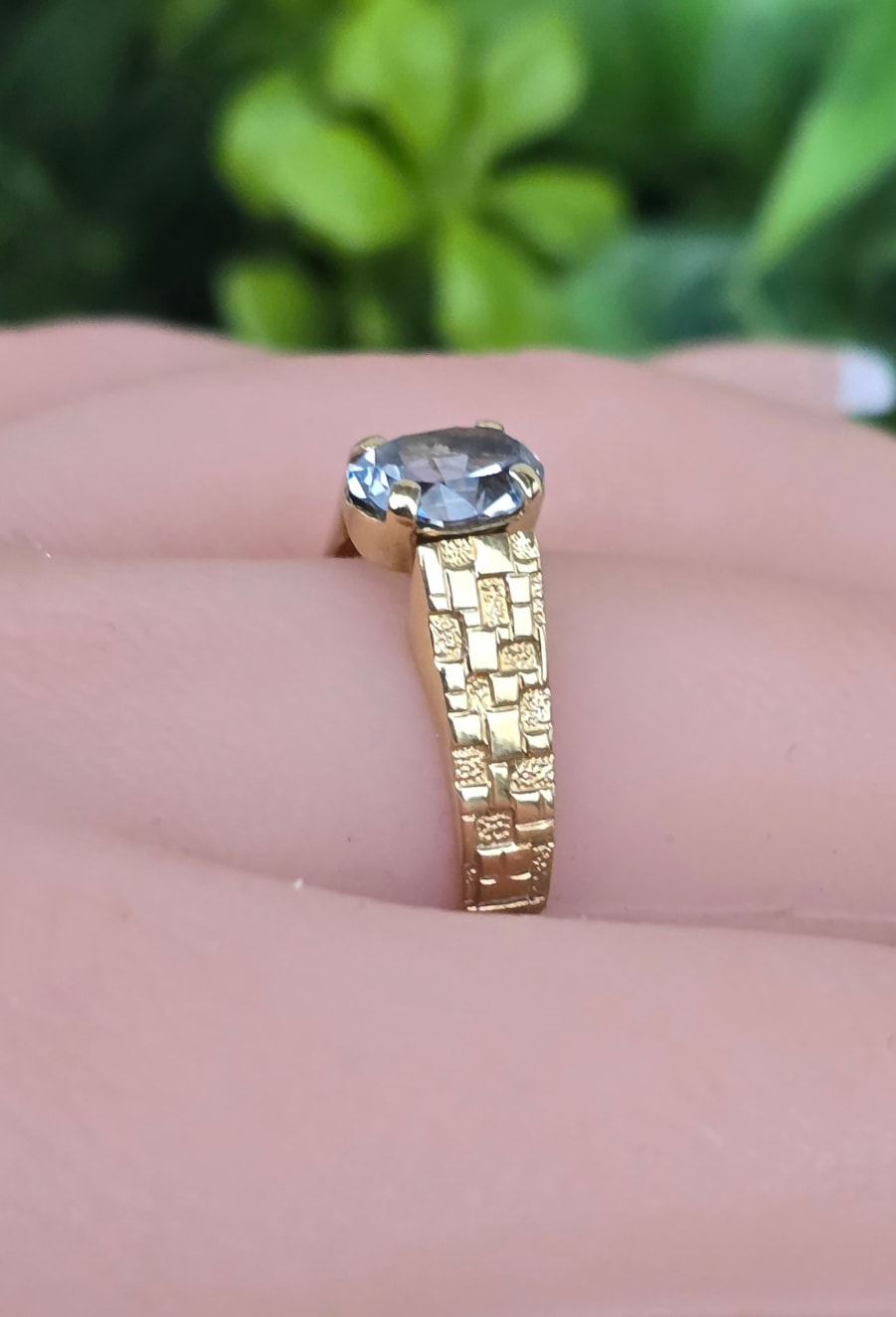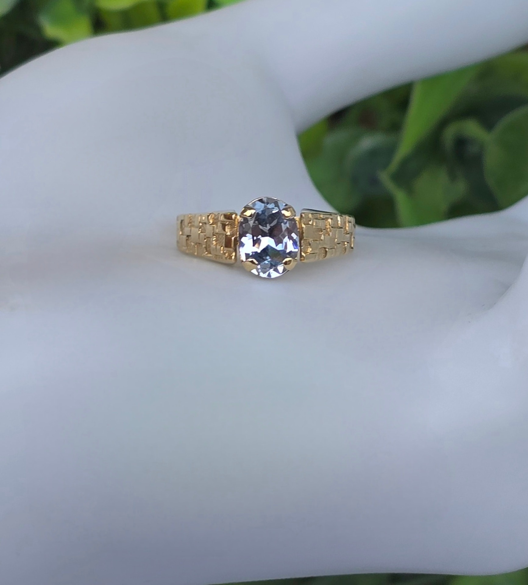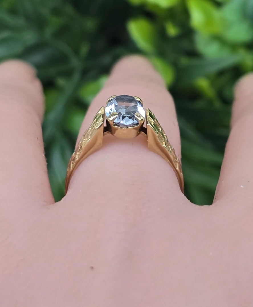 Inel vechi deosebit, din aur de 8K, cu topaz "sky-blue" natural.