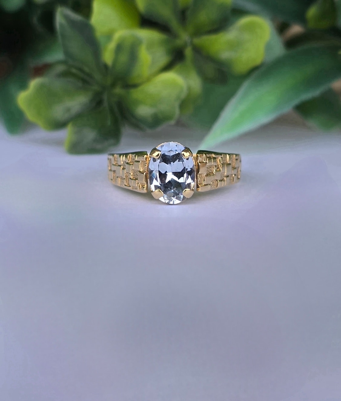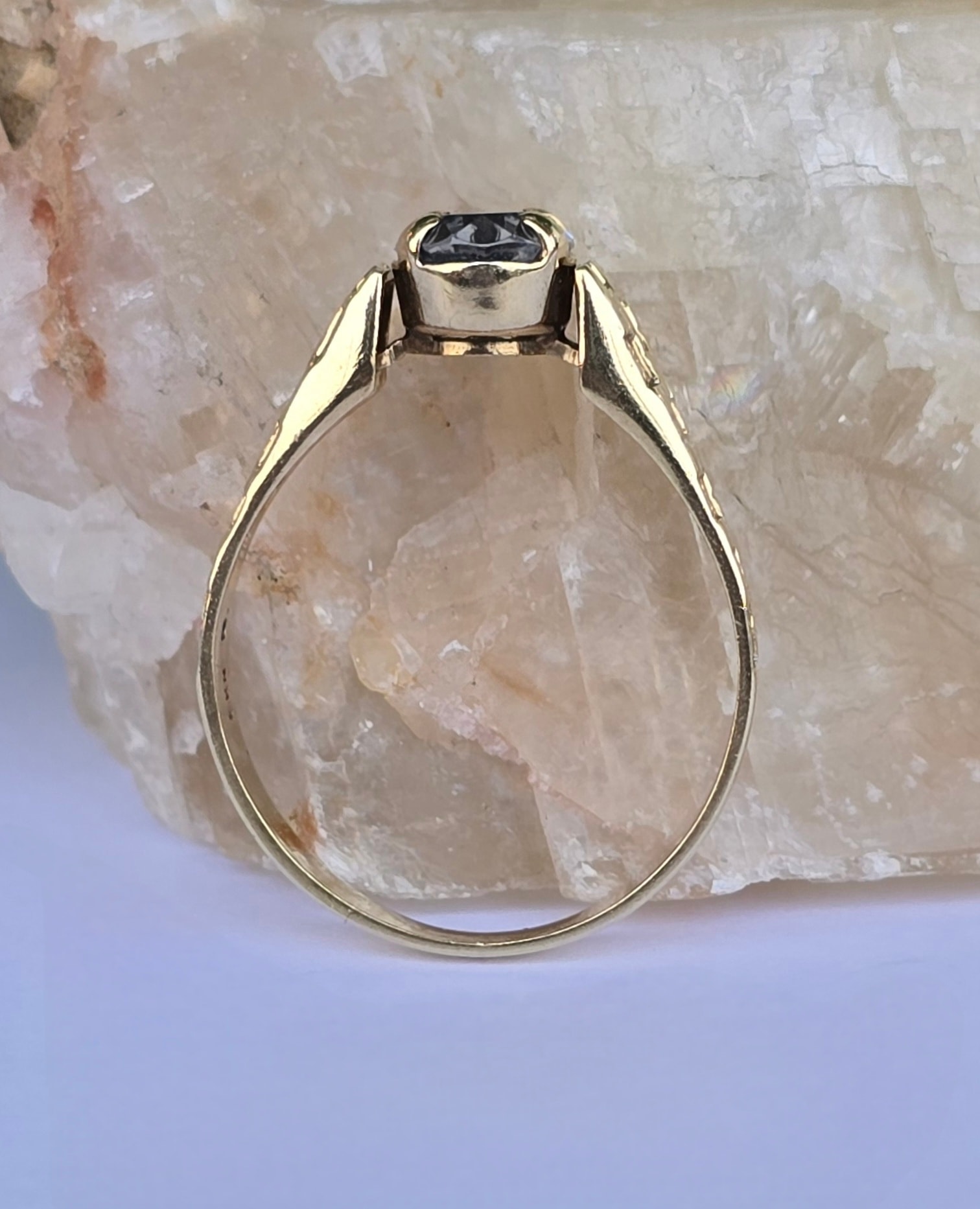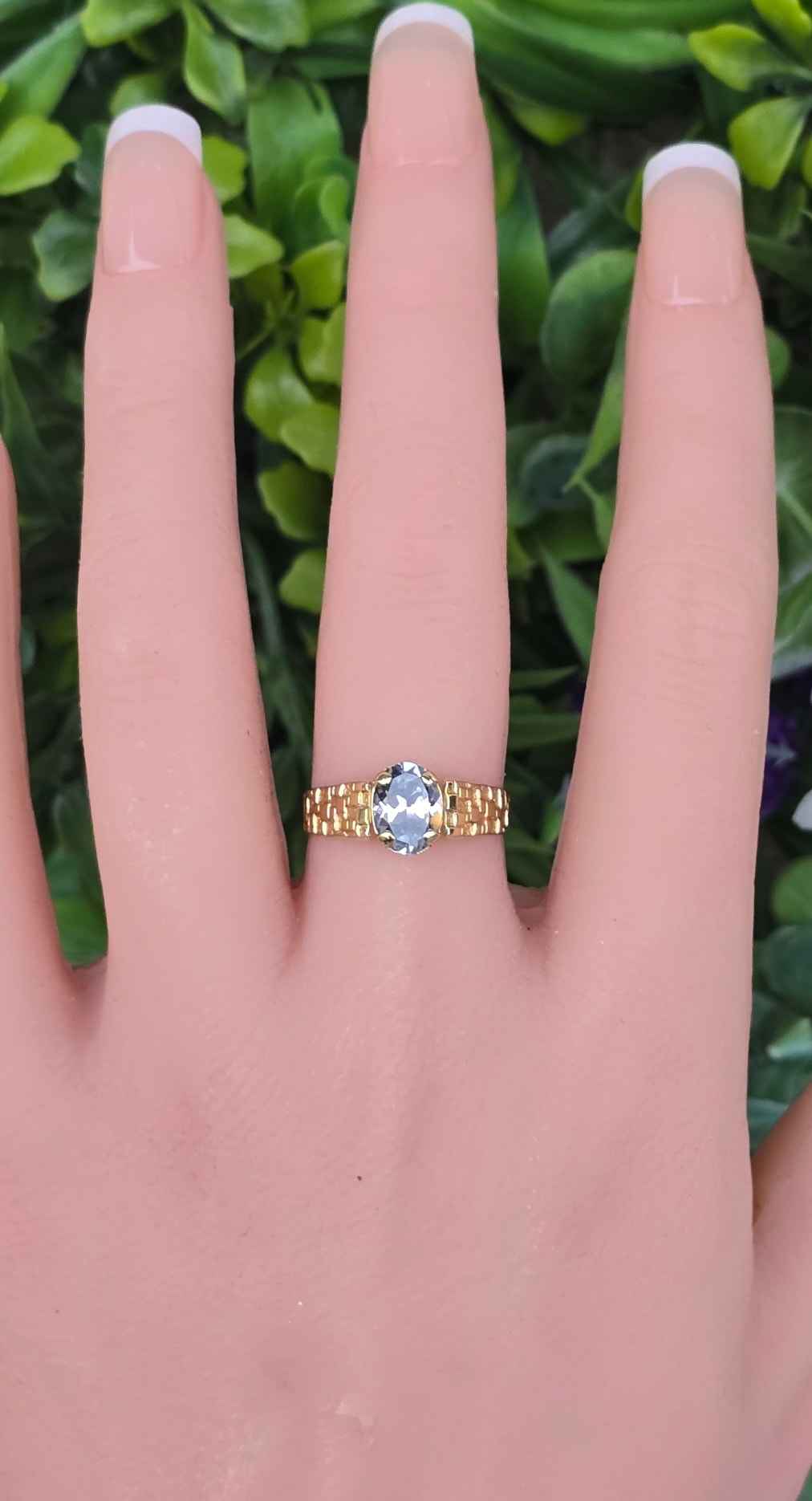 Inel vechi deosebit, din aur de 8K, cu topaz "sky-blue" natural.