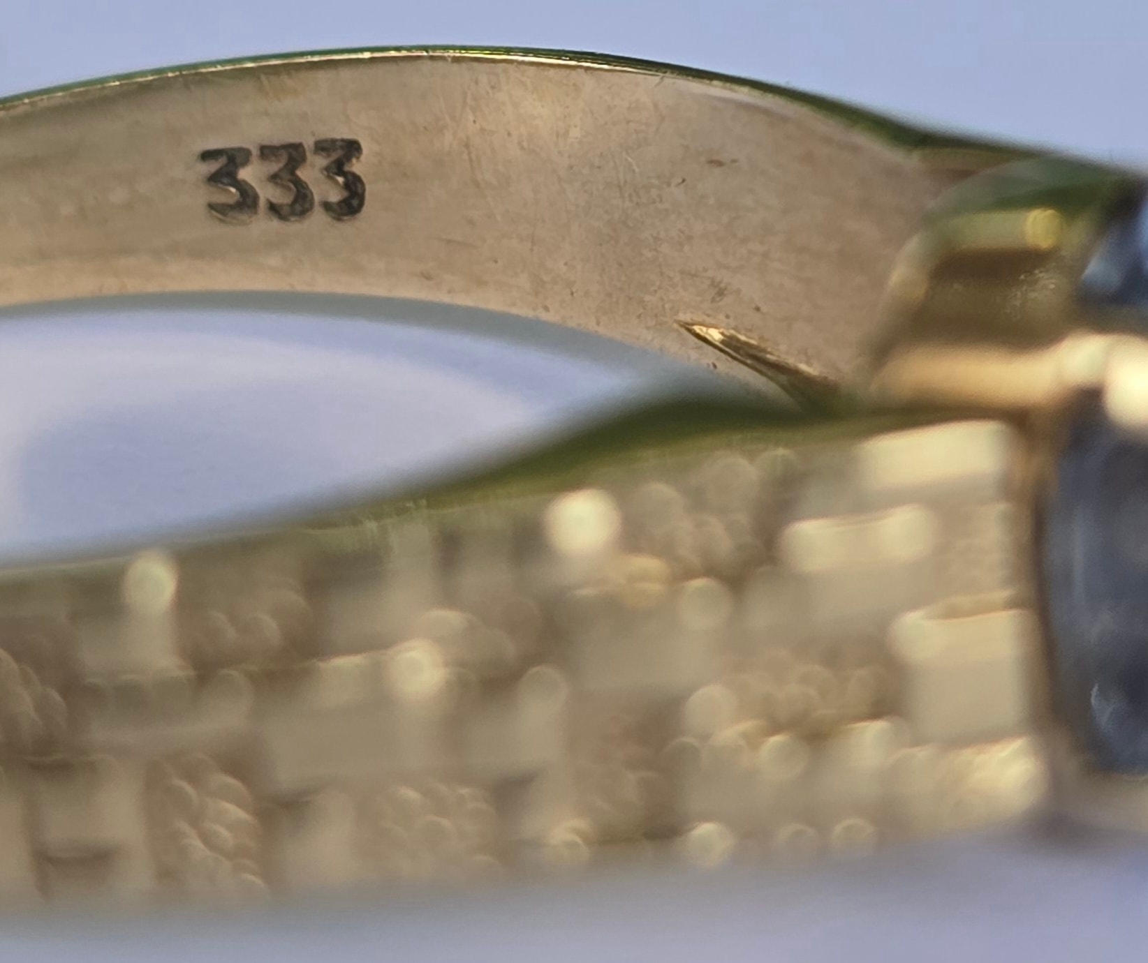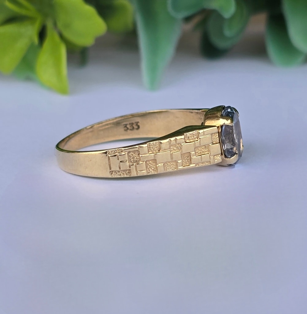 Prezintă marcaj 333 pentru puritate aur de 8K.
