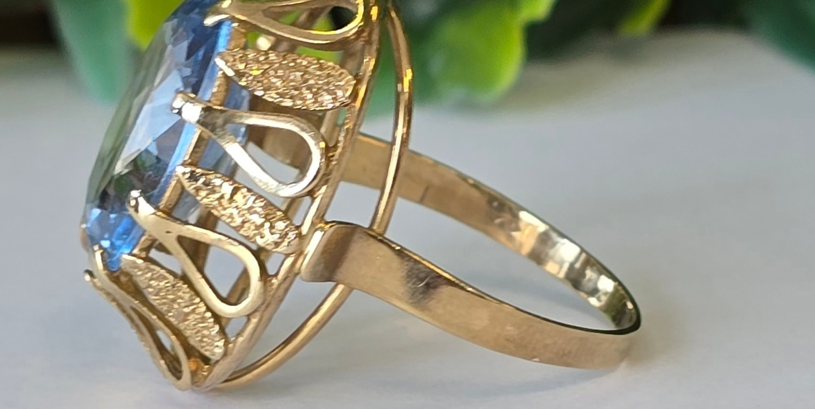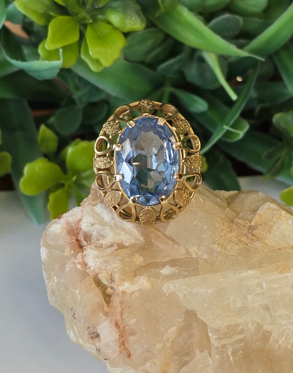 Inel vechi deosebit, din aur de 8K, cu un superb topaz natural (anii 1930-1940, Germania).
