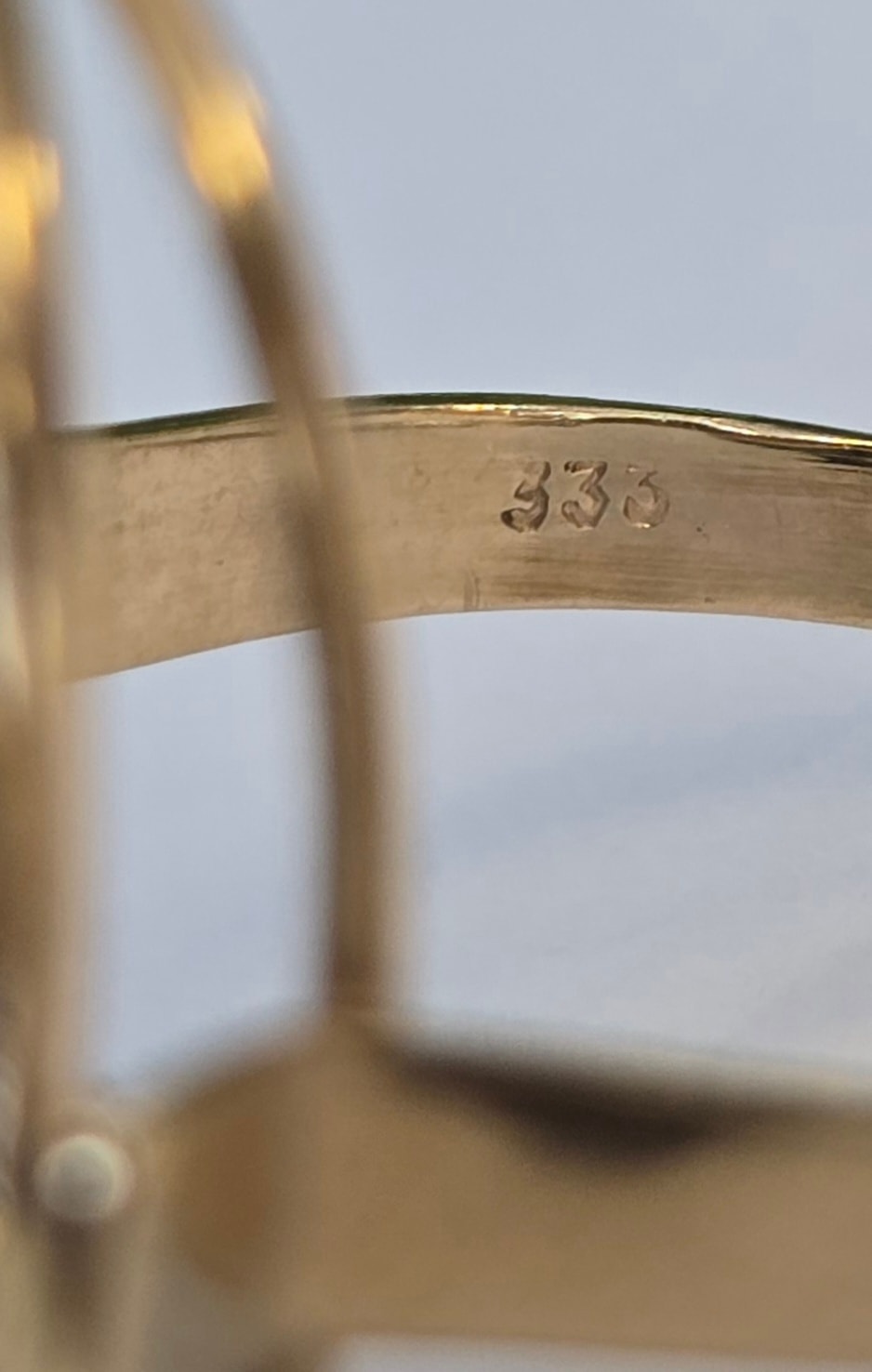 Prezintă marcaj 333 pentru puritate aur de 8K.