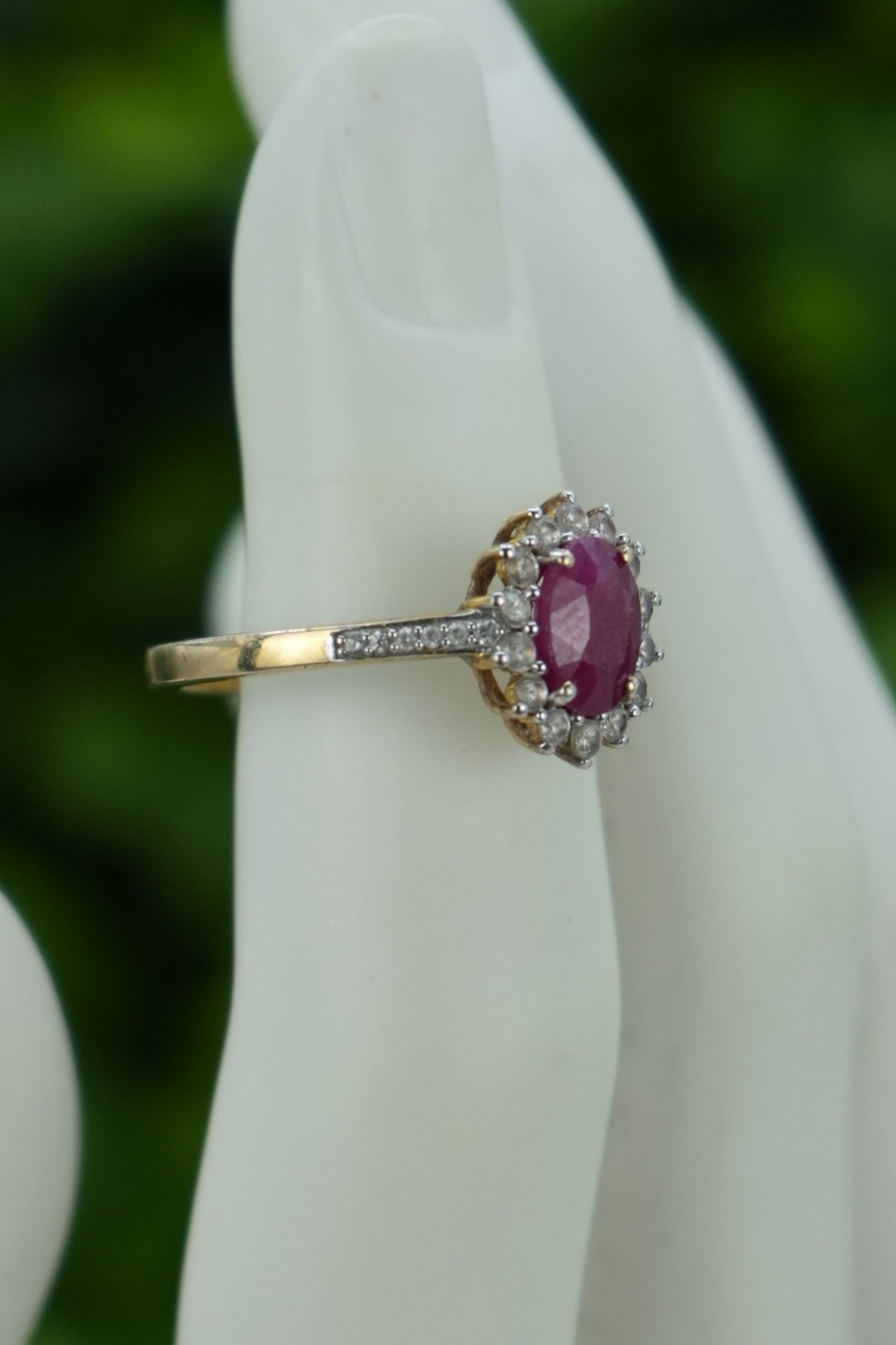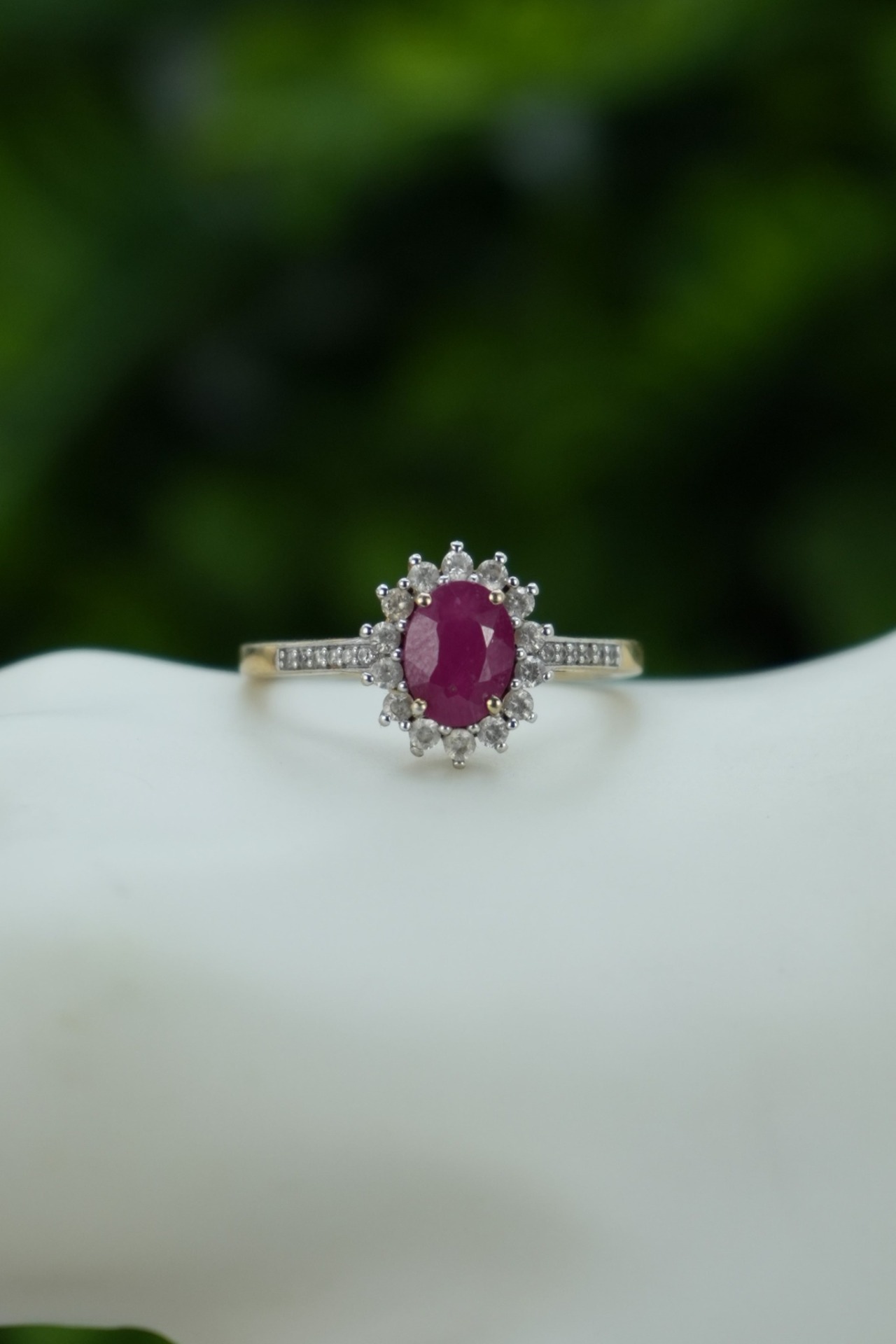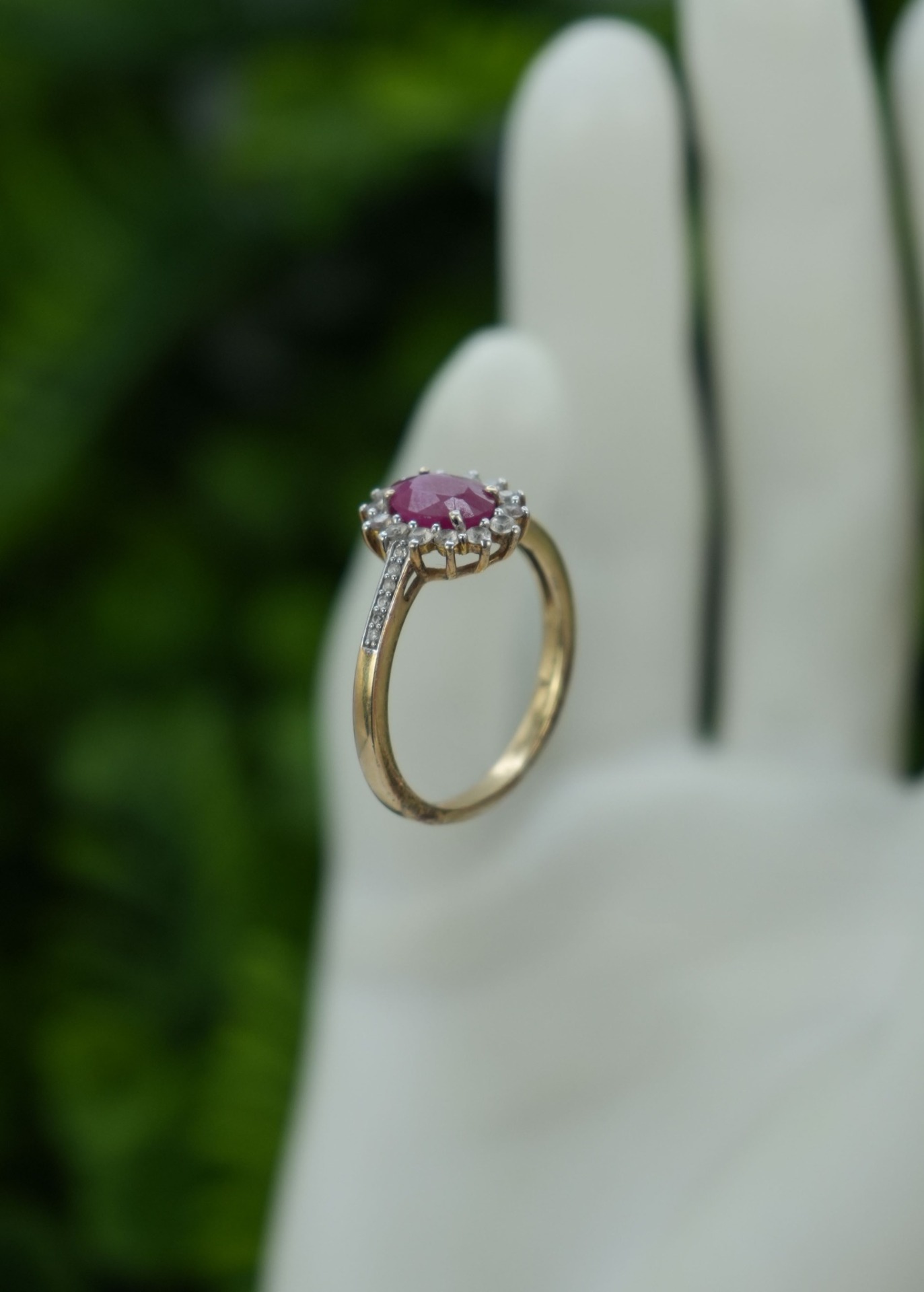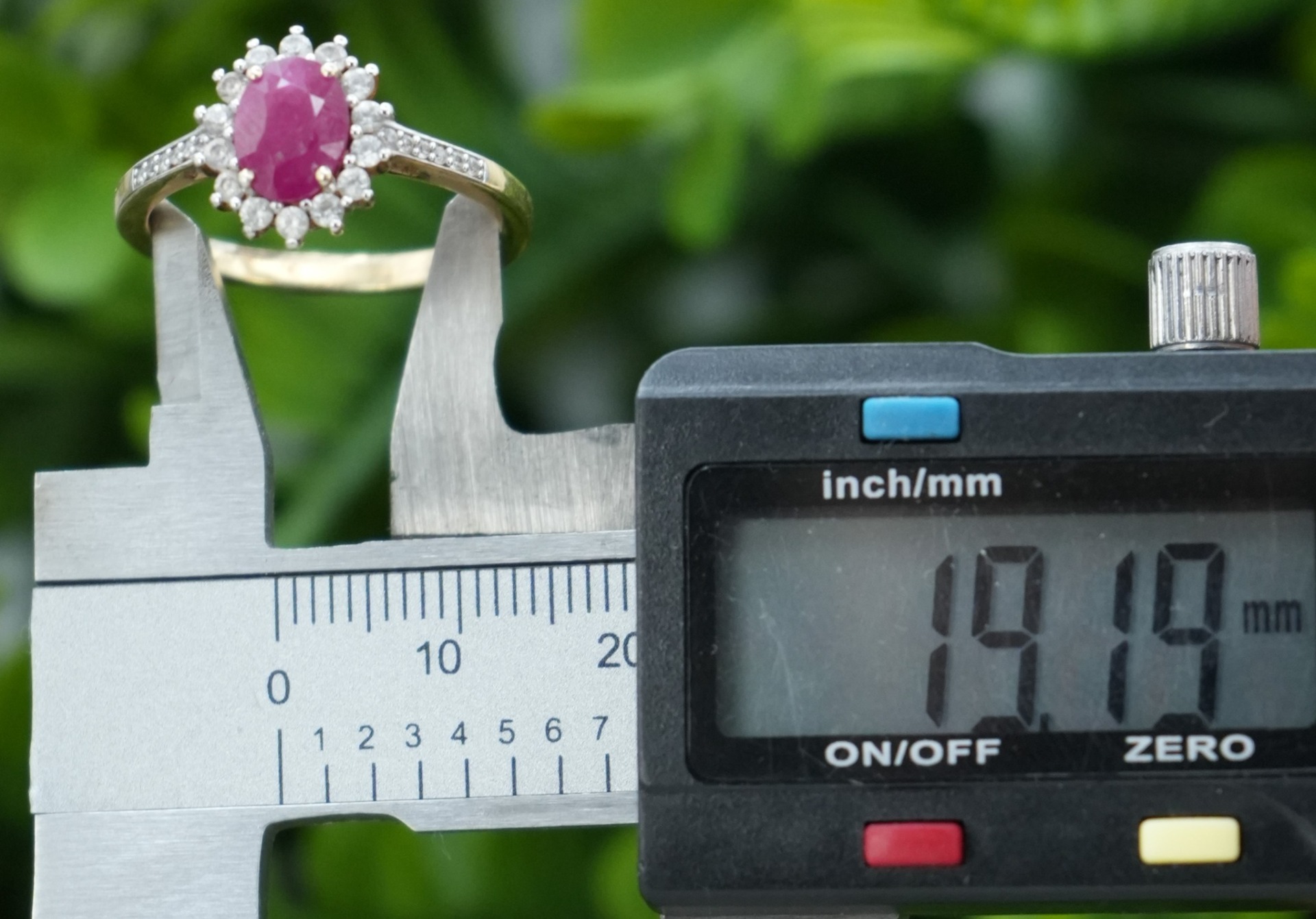 Inel vechi din argint aurit, cu rubin si topaze naturale.