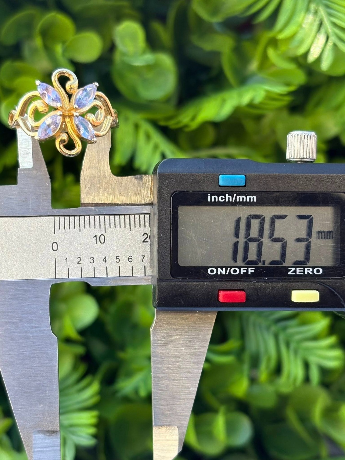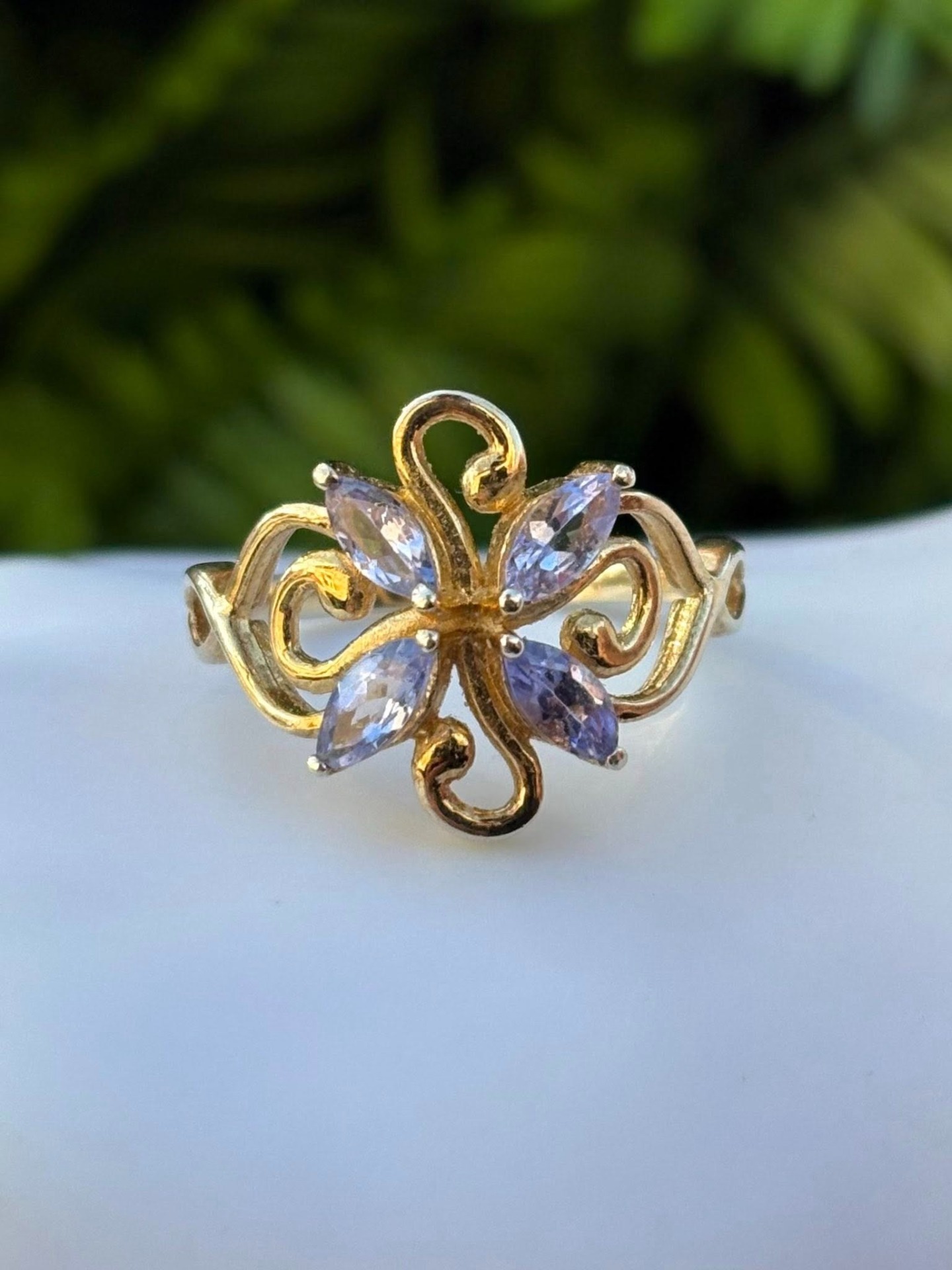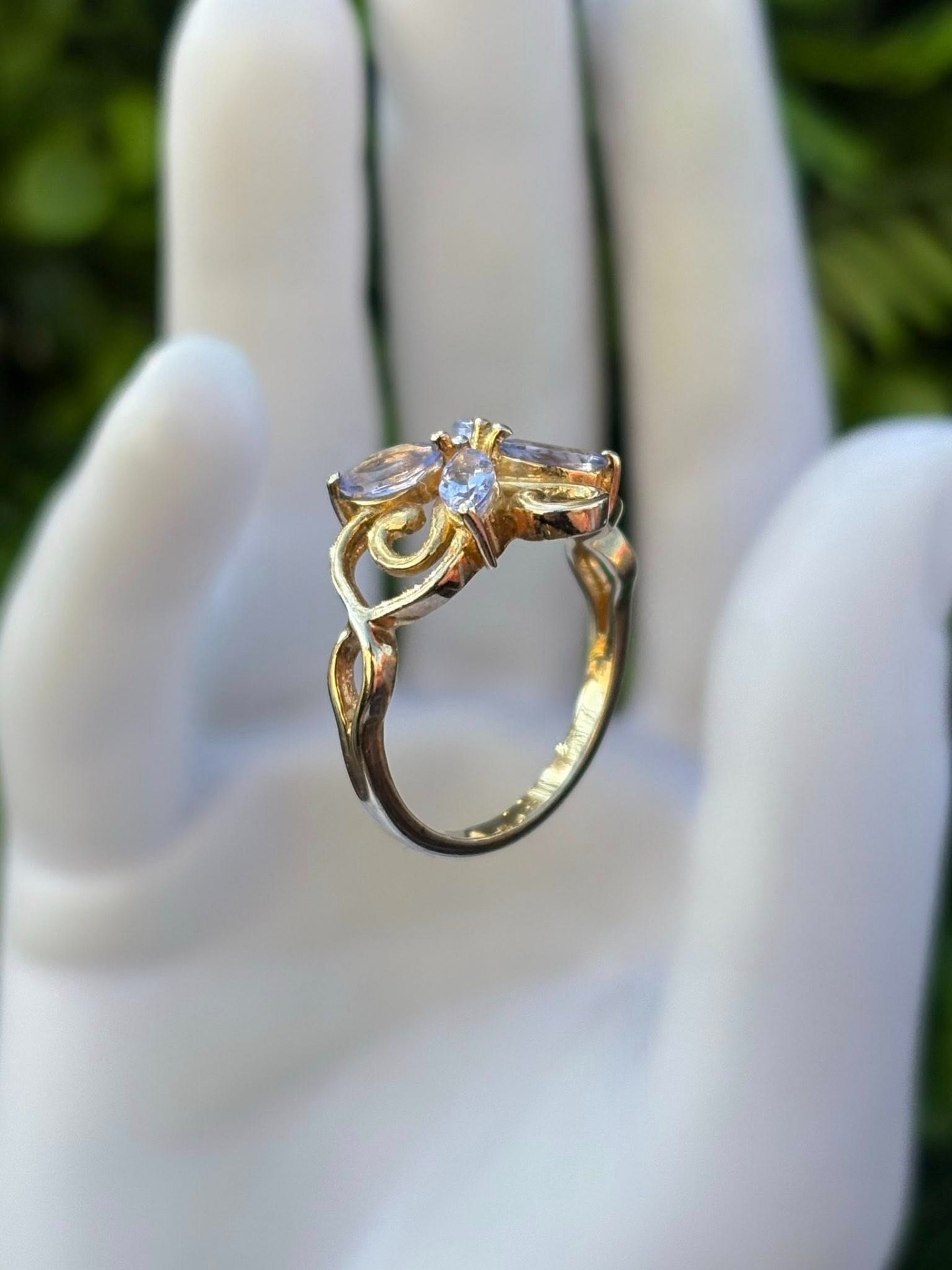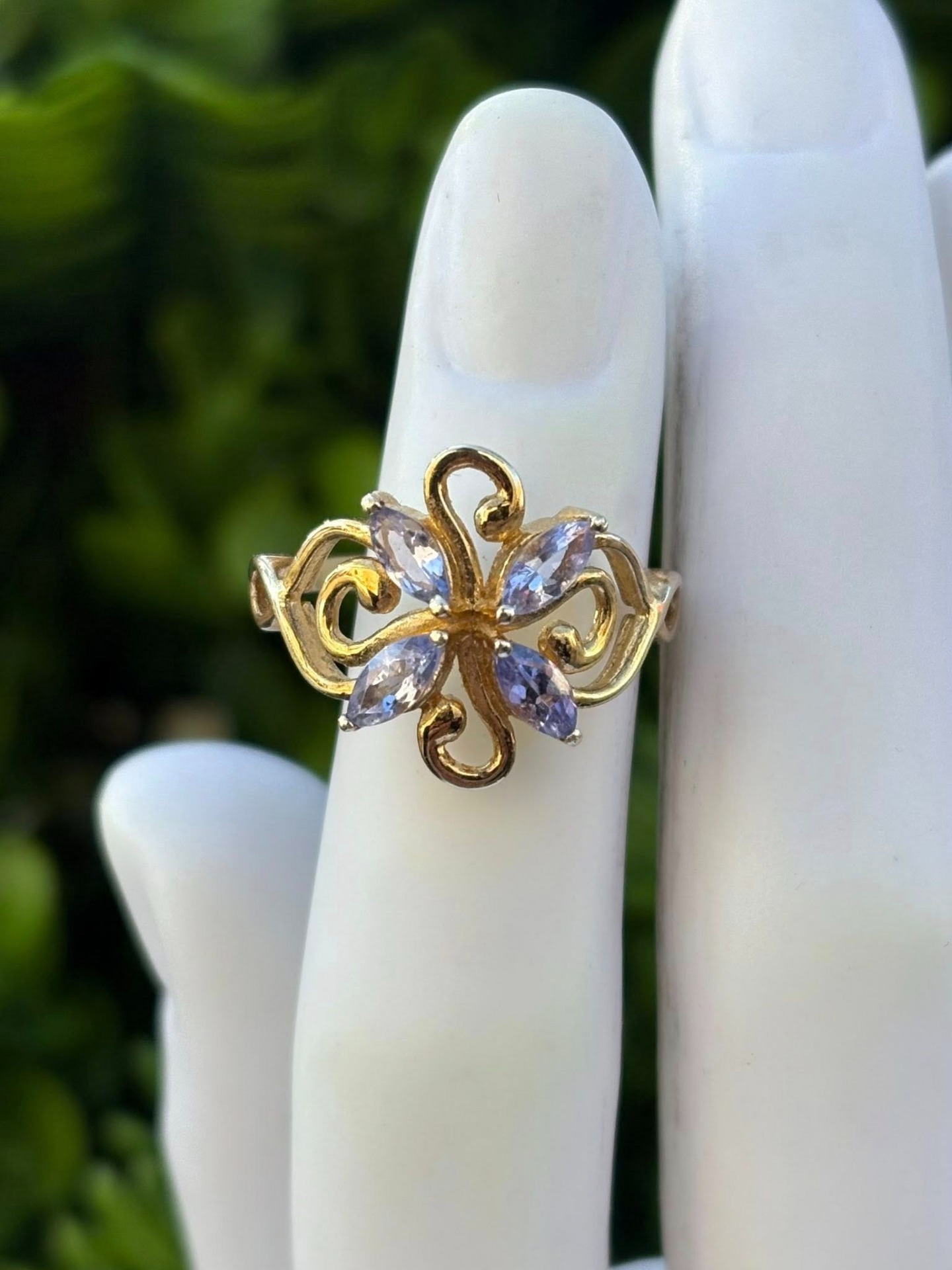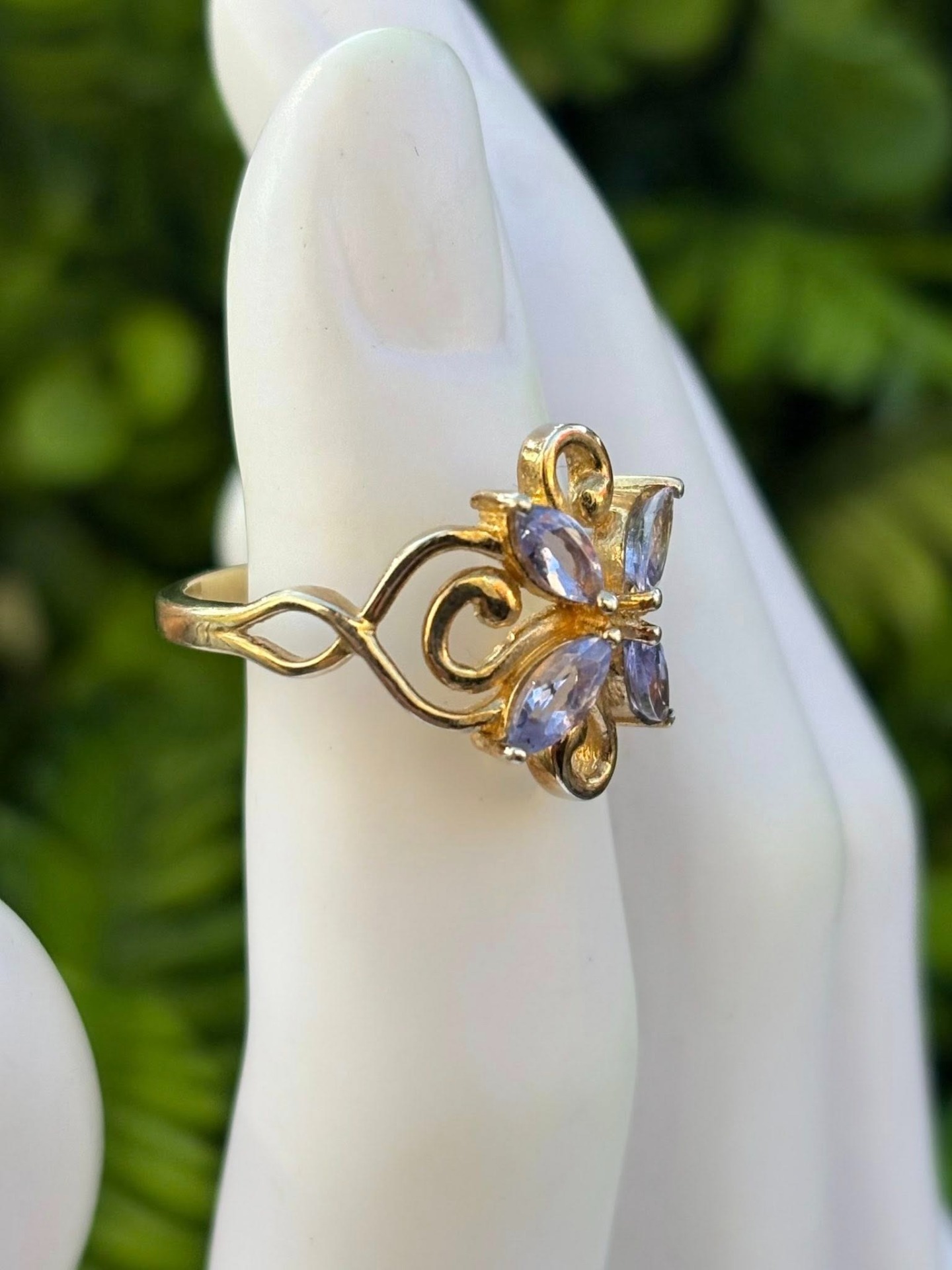 Inel vechi din argint aurit, cu tanzanite naturale.