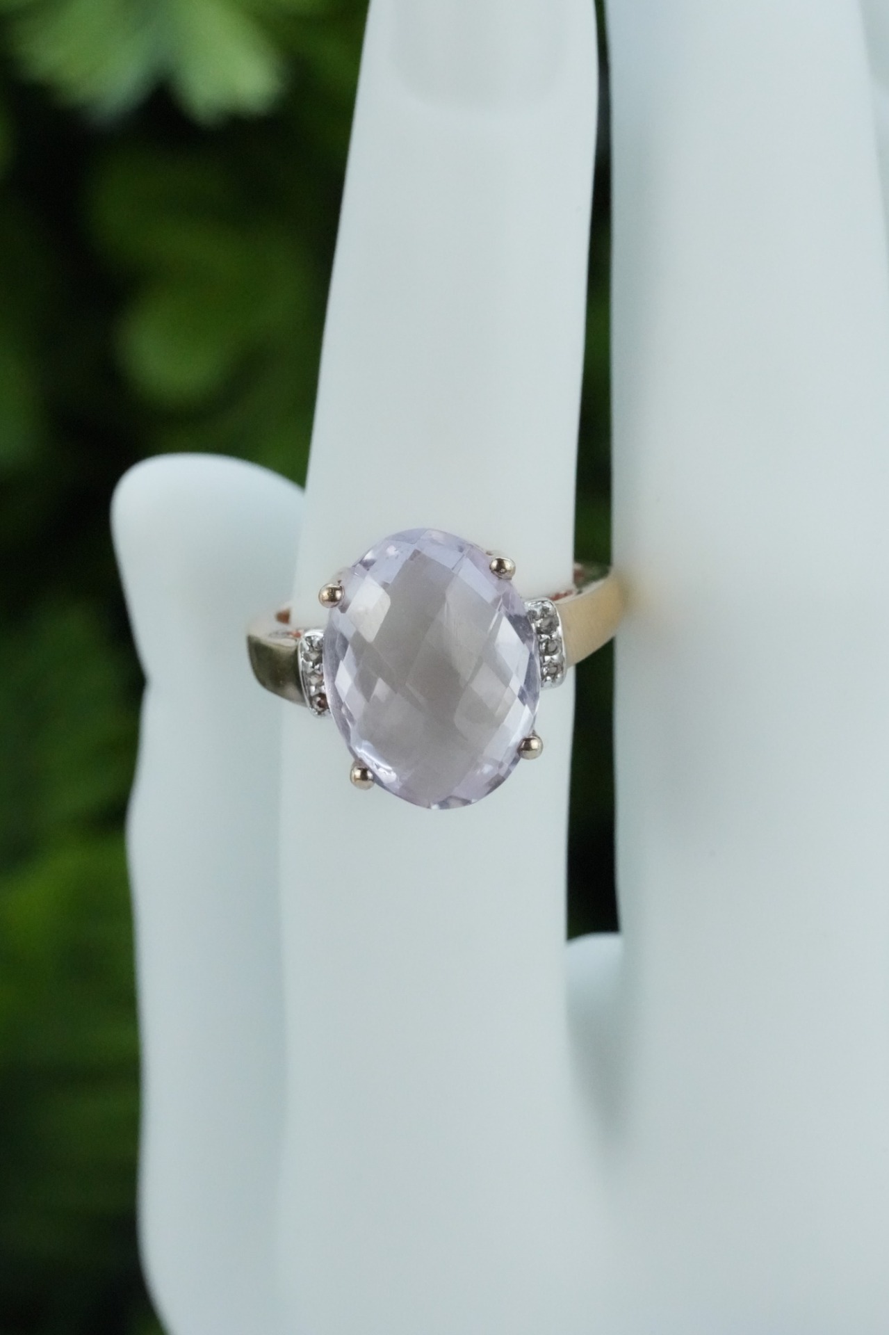 Inel vechi din argint aurit, deosebit, cu un superb ametist și topaze albe naturale.