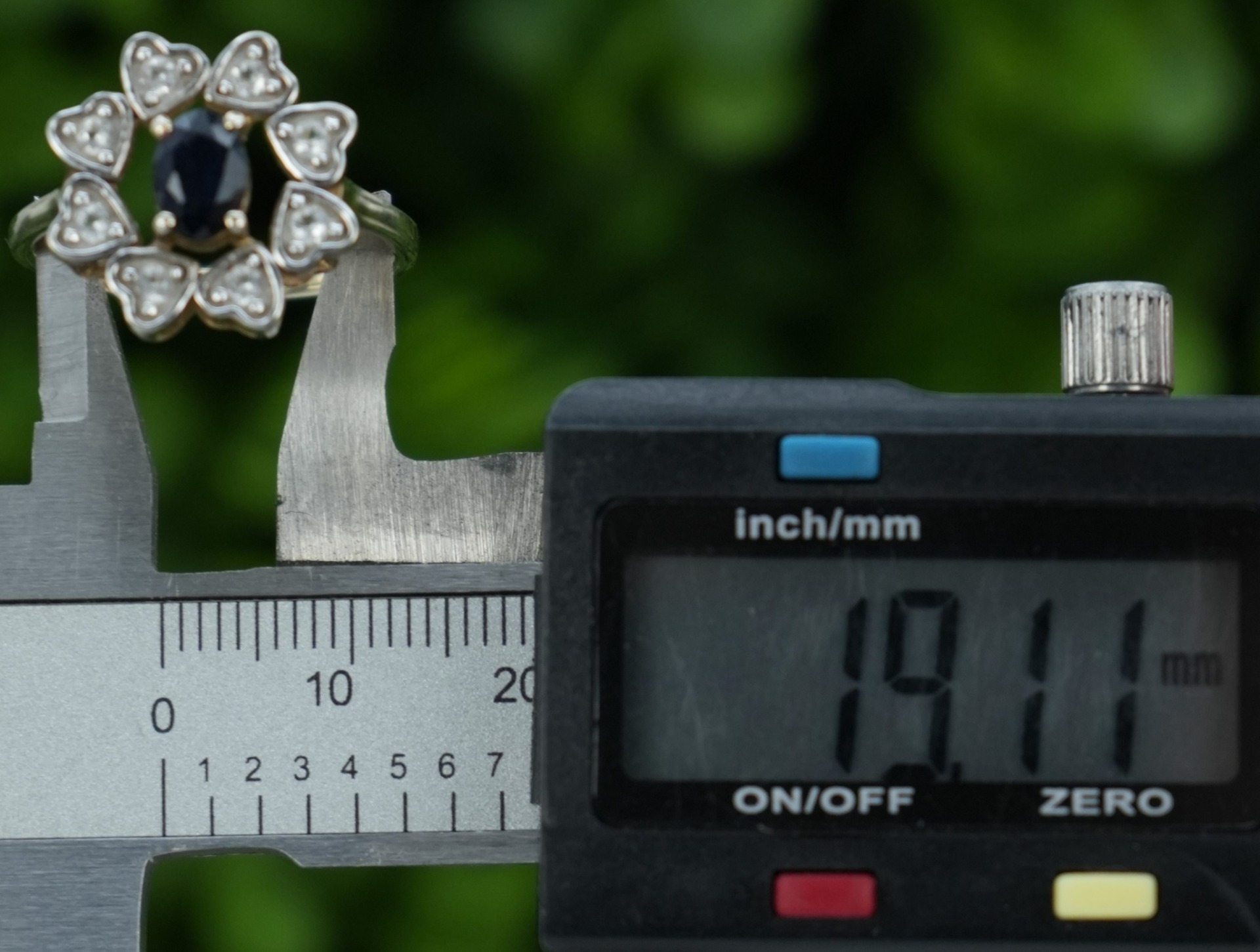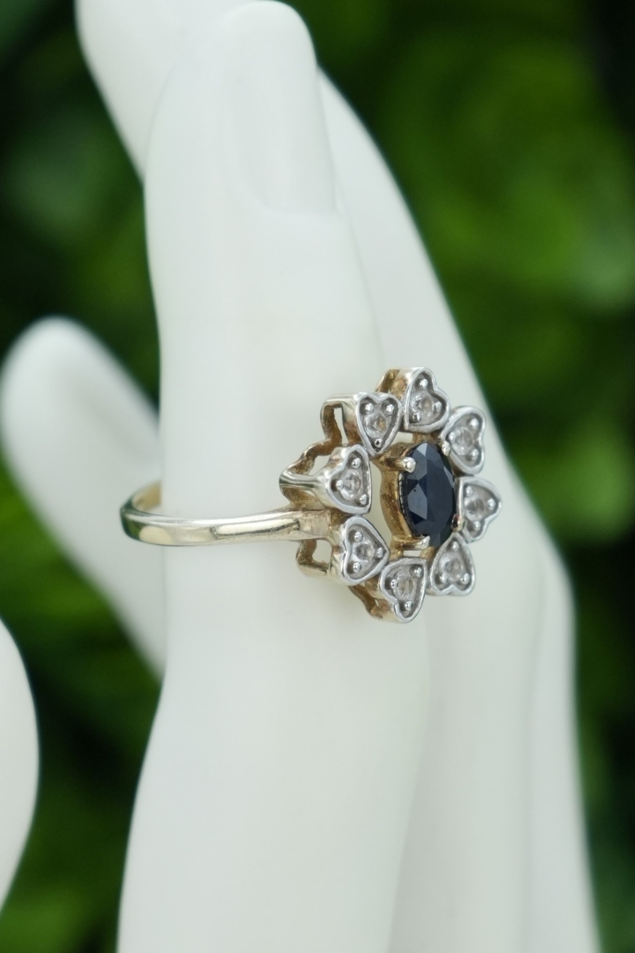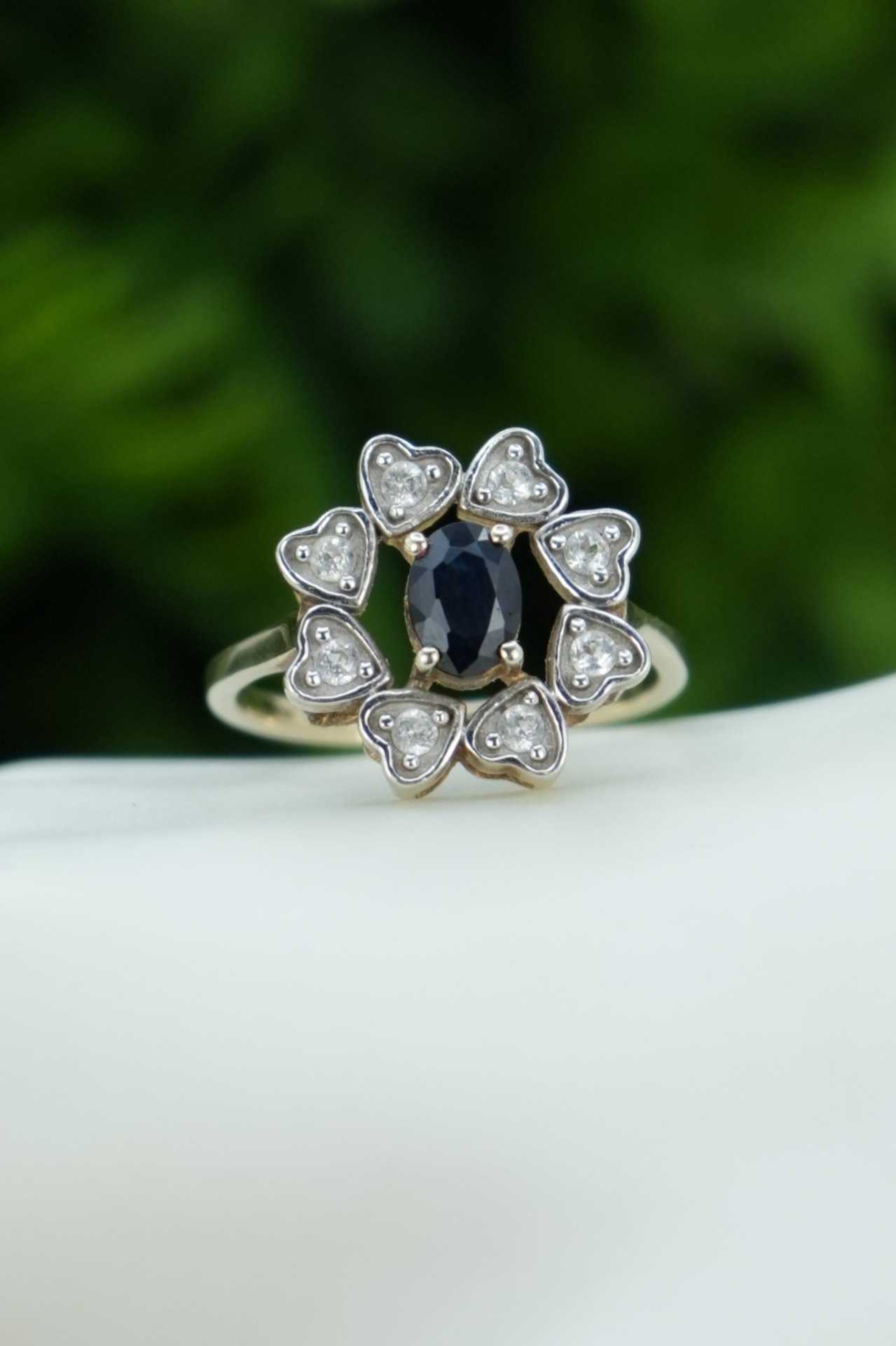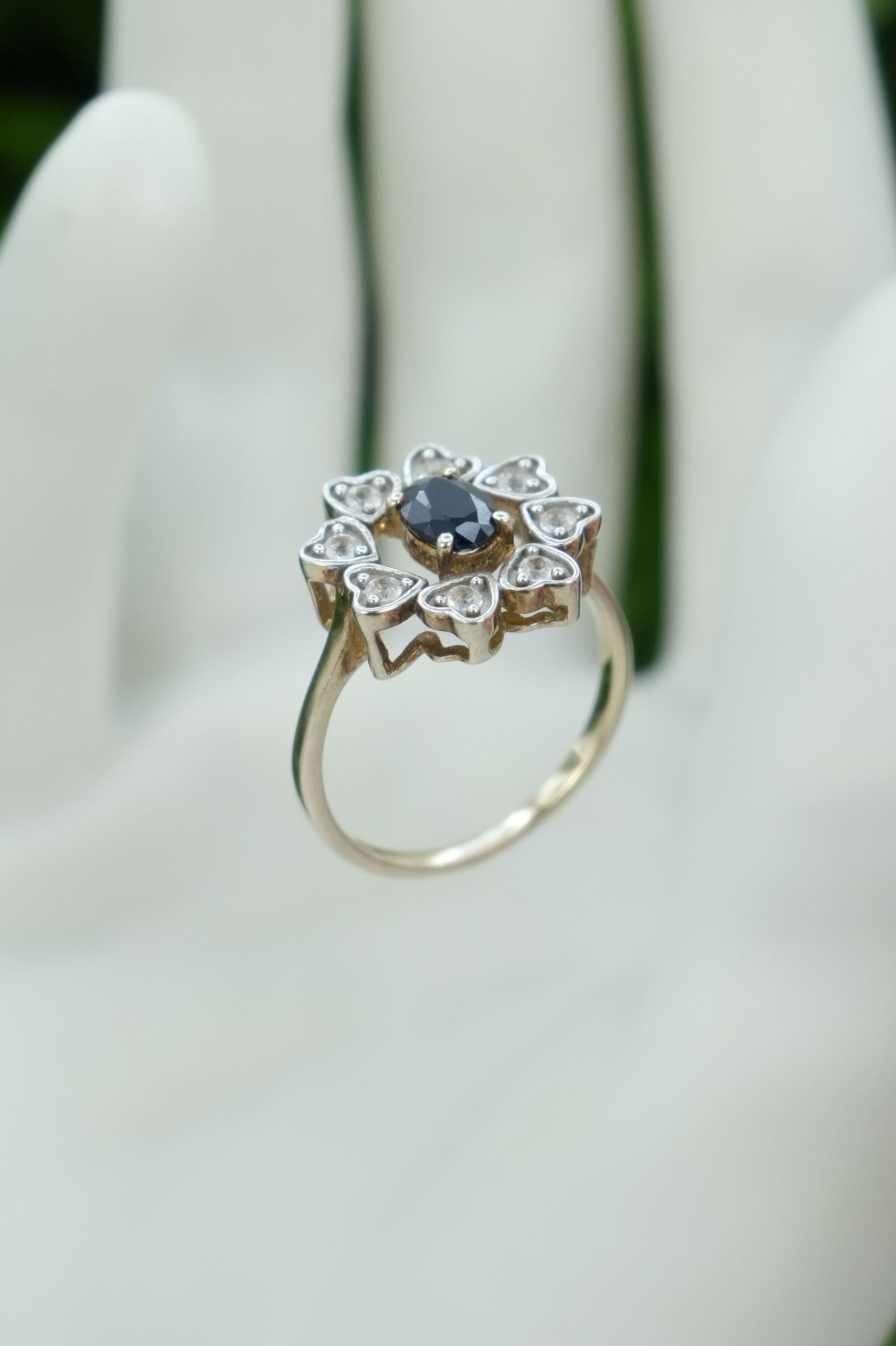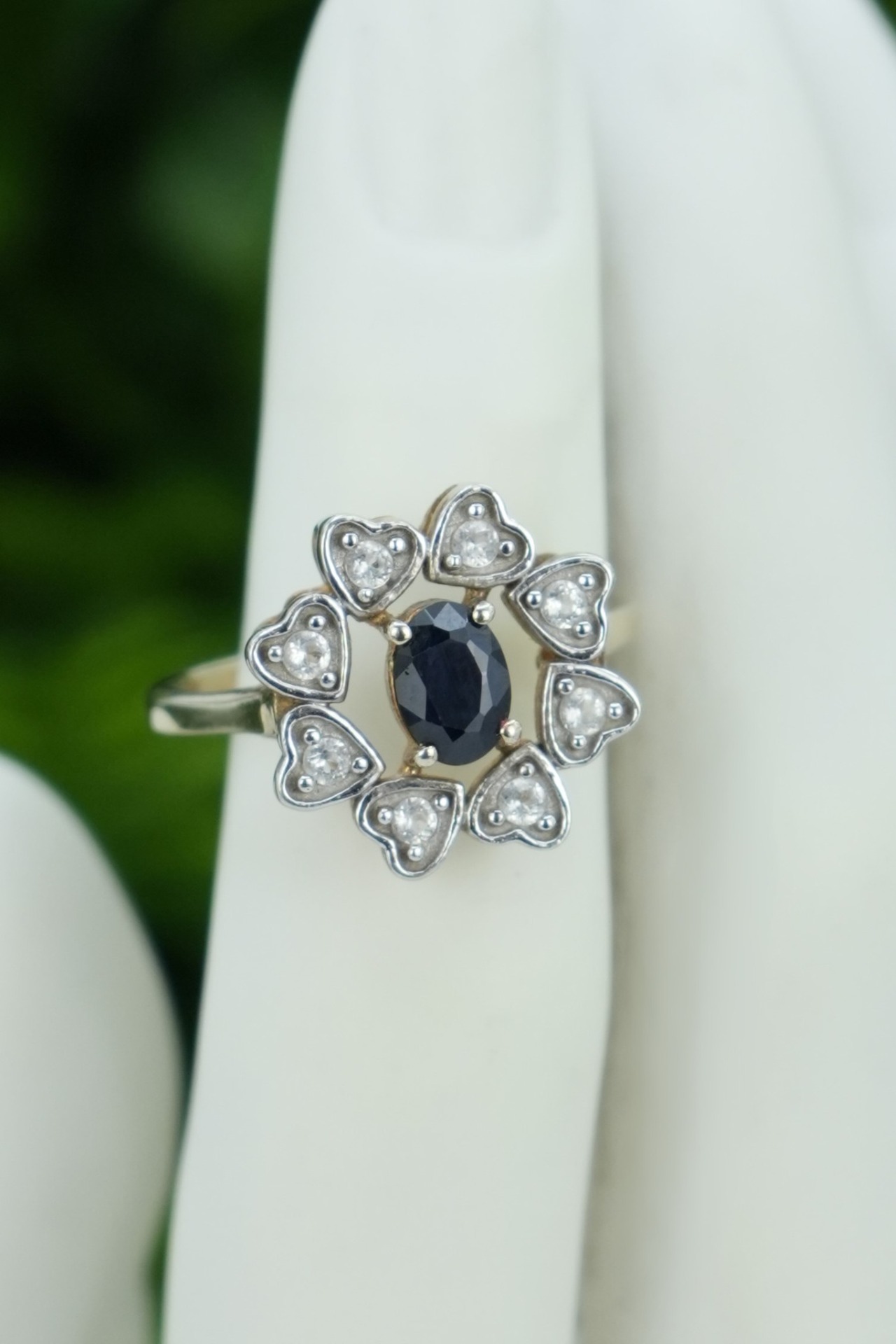 Inel vechi din argint aurit, safir și 8 topaze naturale.