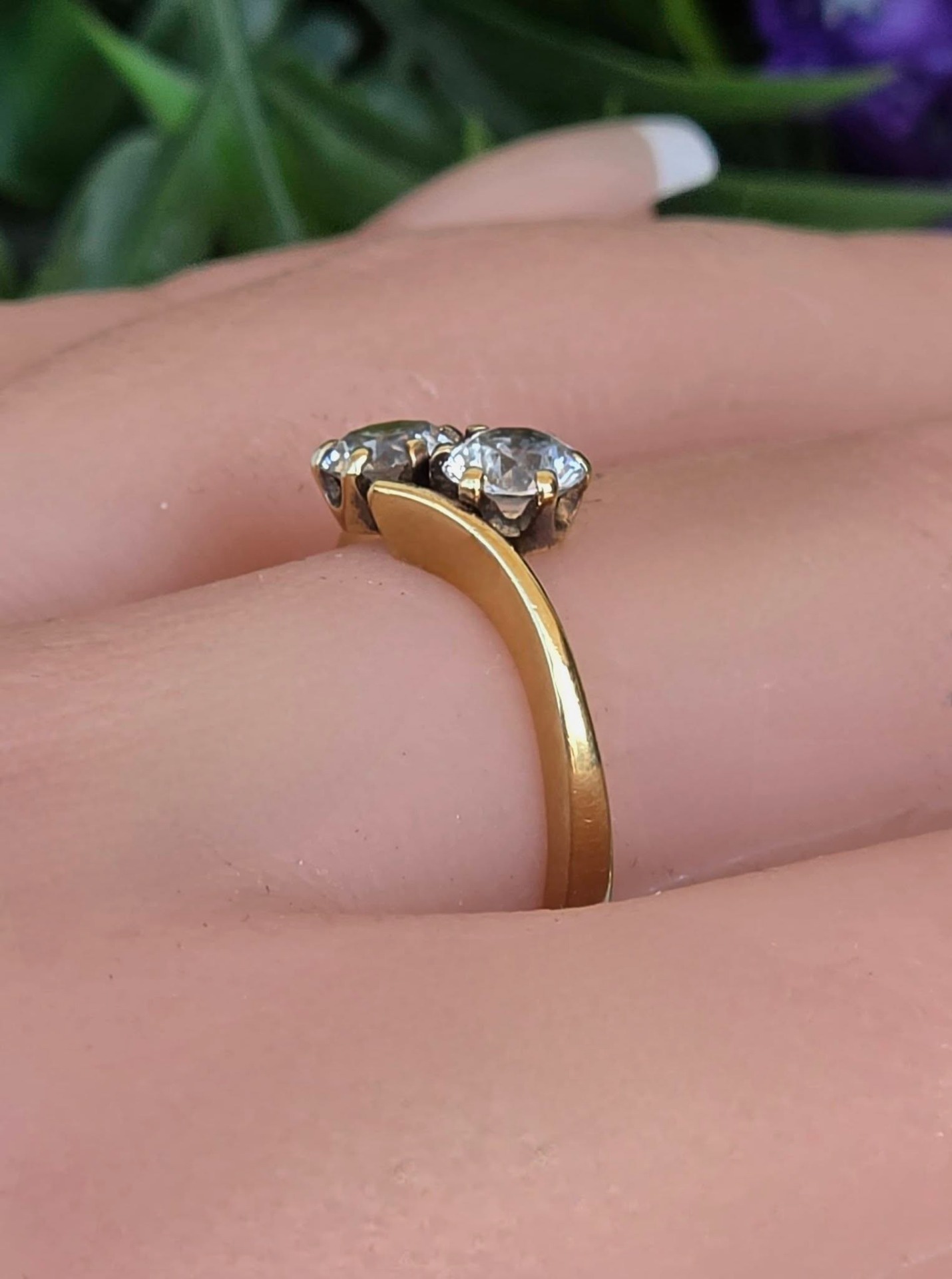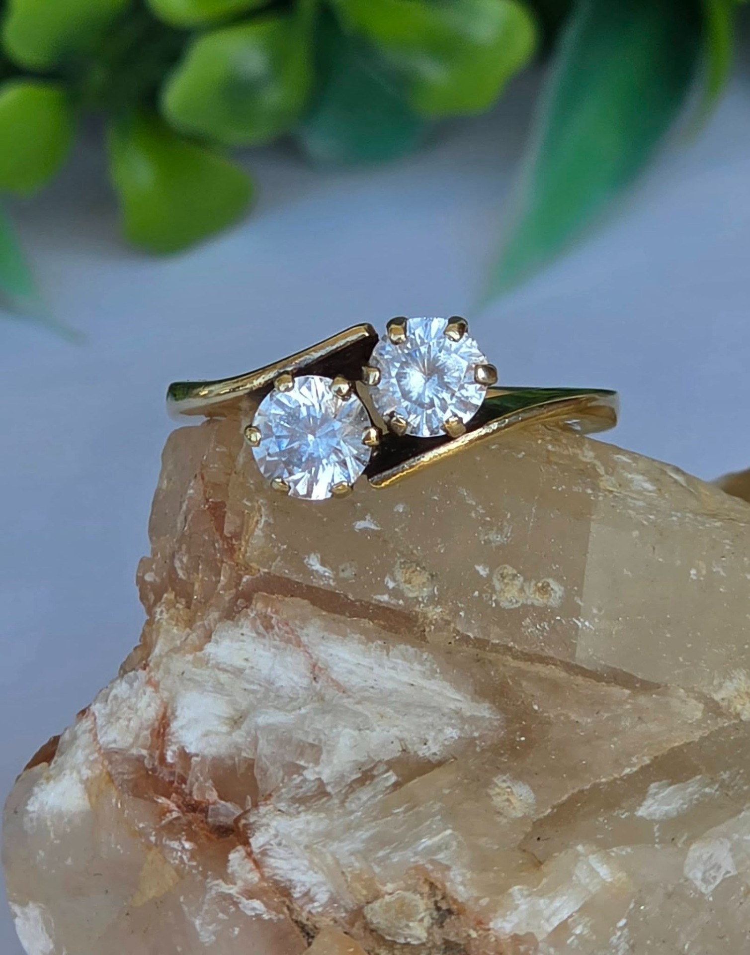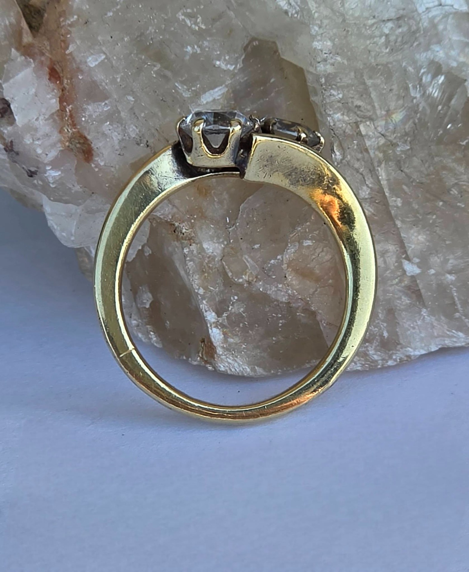 Inel vechi din argint aurit ("vermeil"), cu cristale de stâncă (cuarț alb) naturale, manufactură de atelier francez.