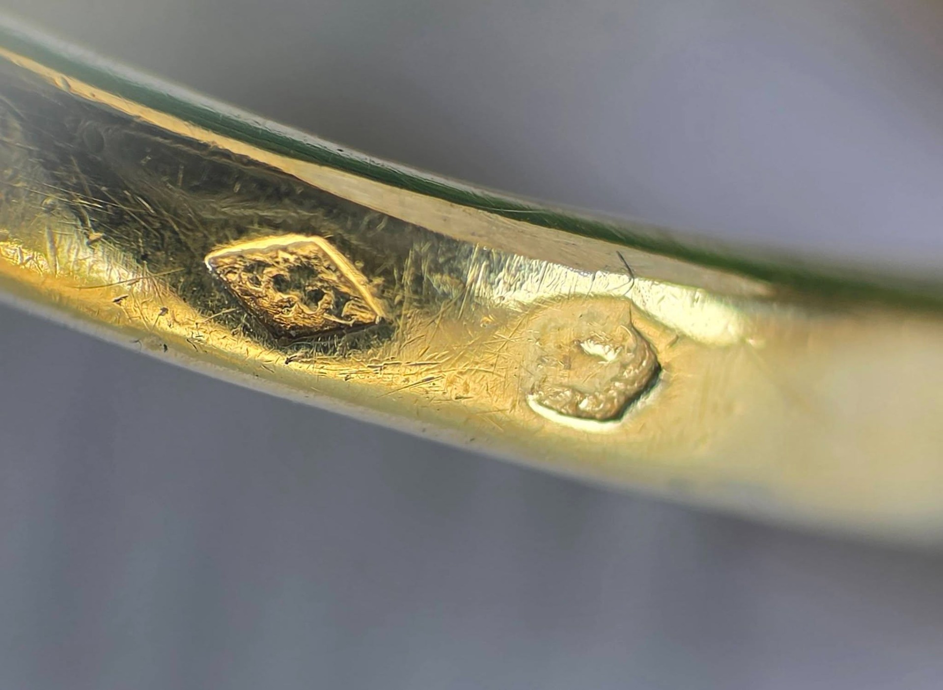 Prezintă marcaj specific francez de garanție ("crabul") și marcaj de meșter.