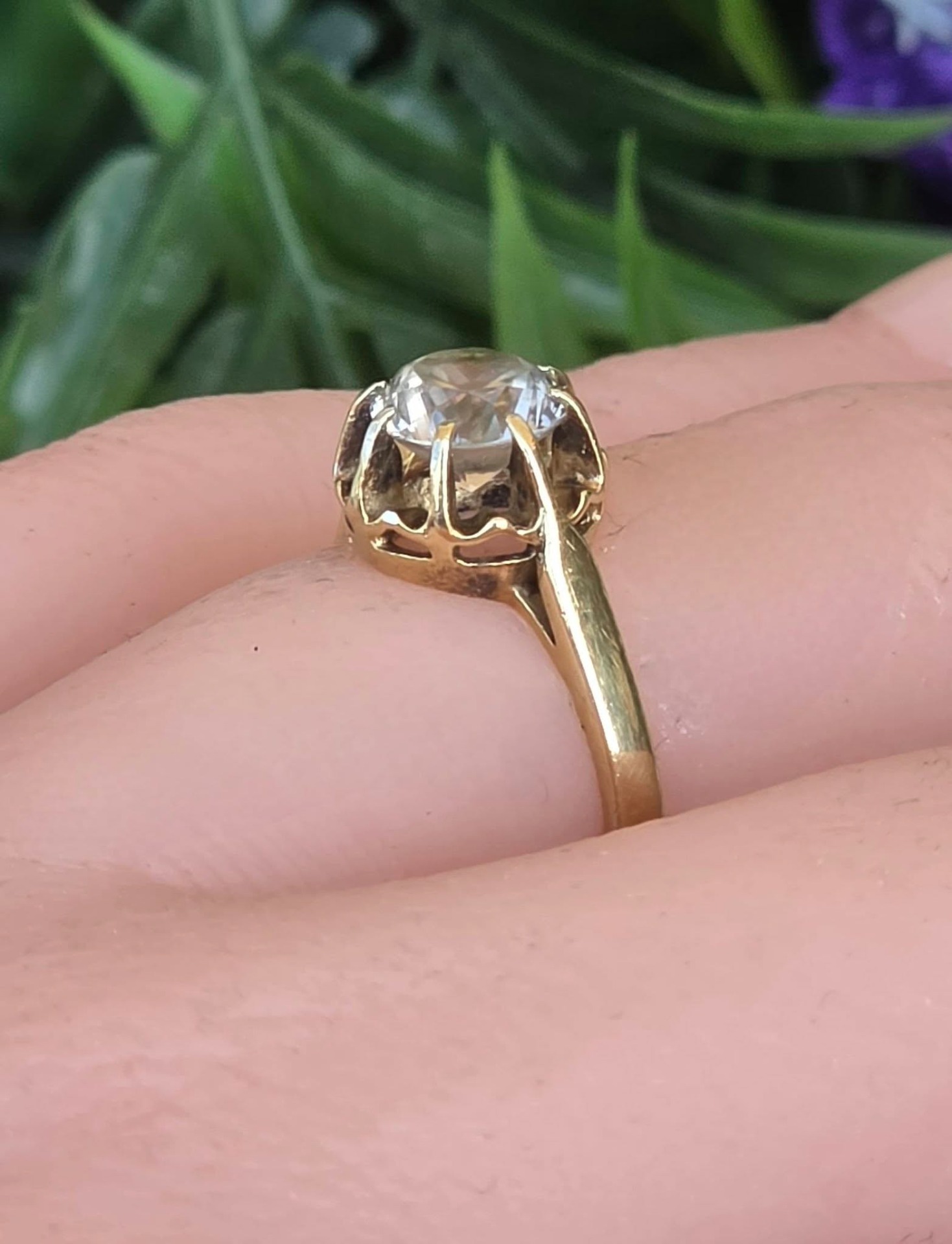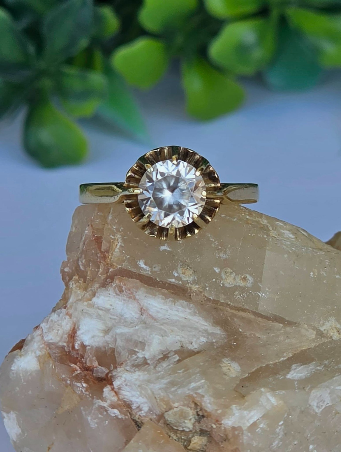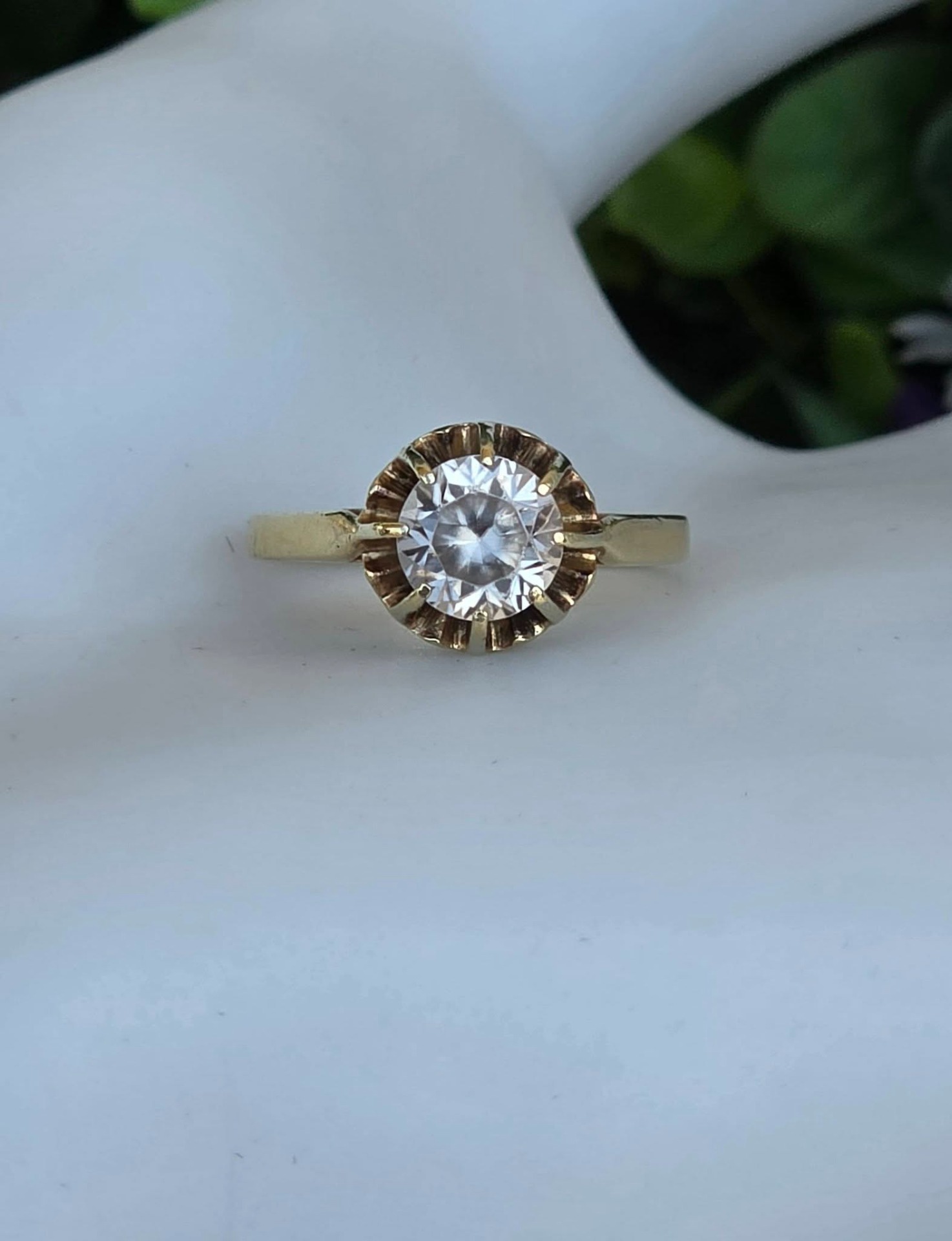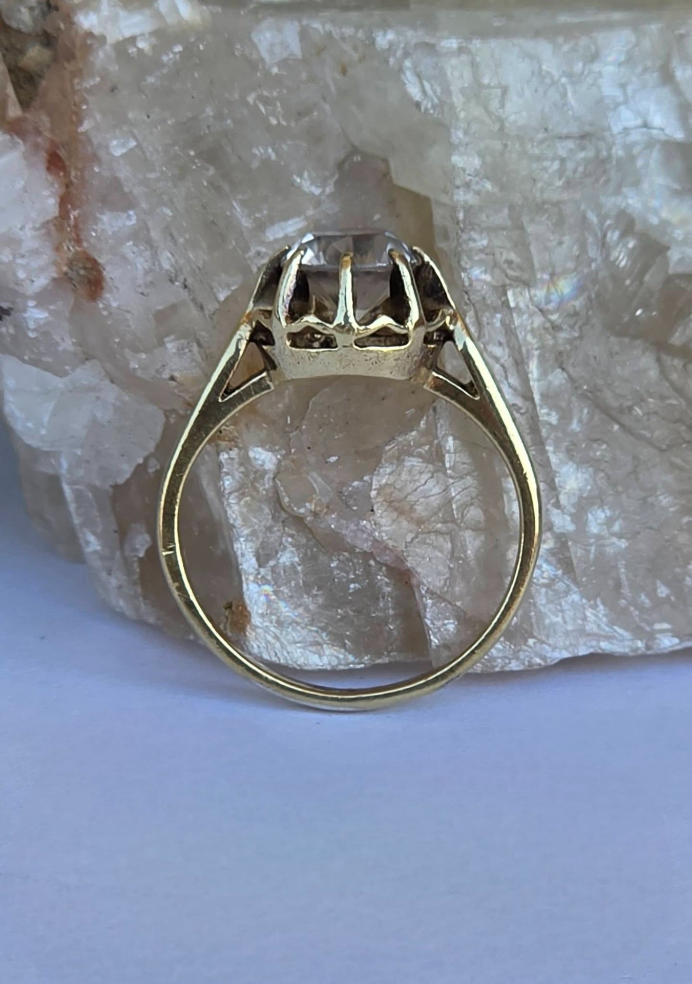 Inel vechi din argint aurit ("vermeil"), cu un superb topaz alb natural, manufactură de atelier francez de la începutul sec. XX (anii 1910-1920).