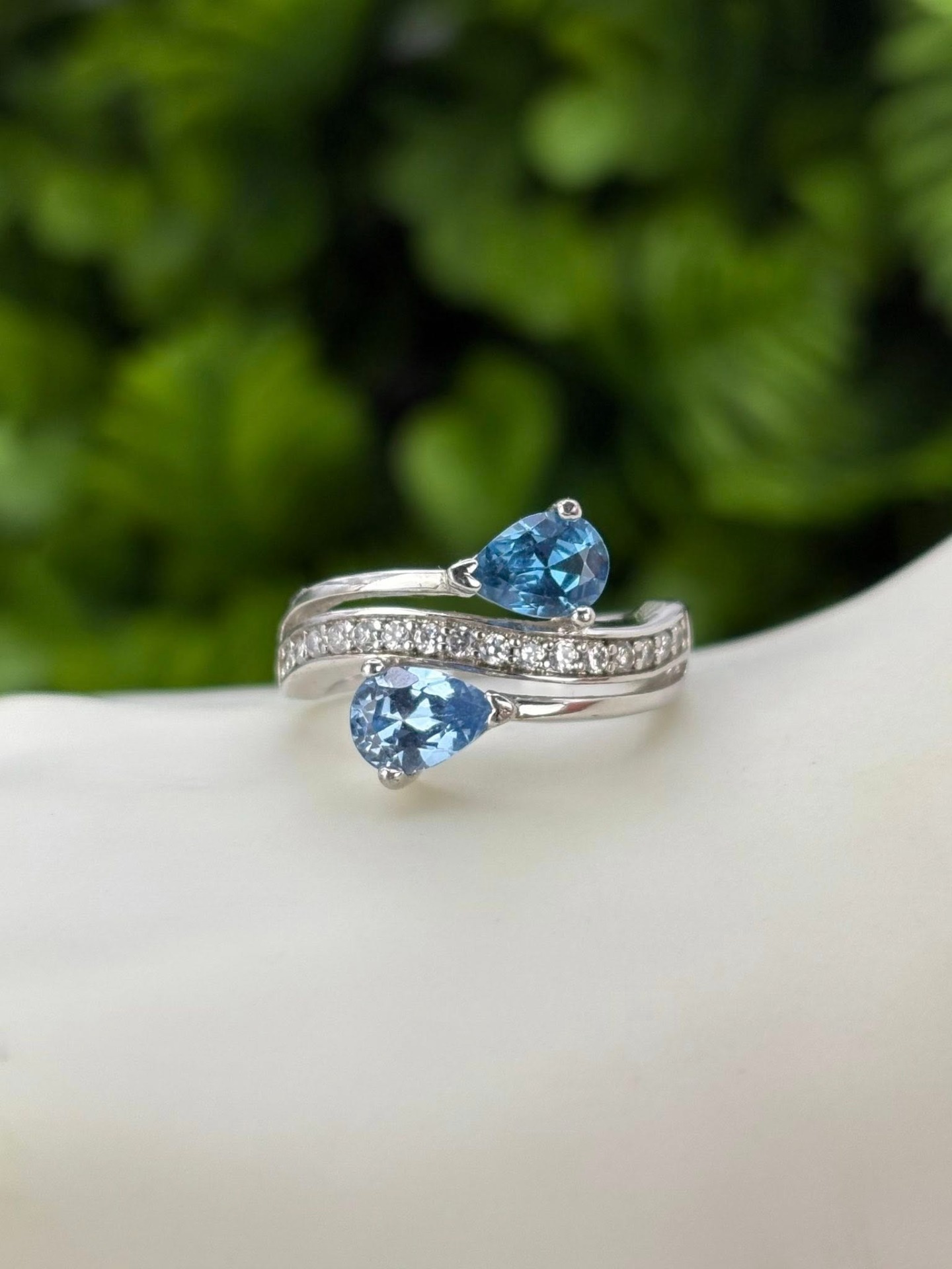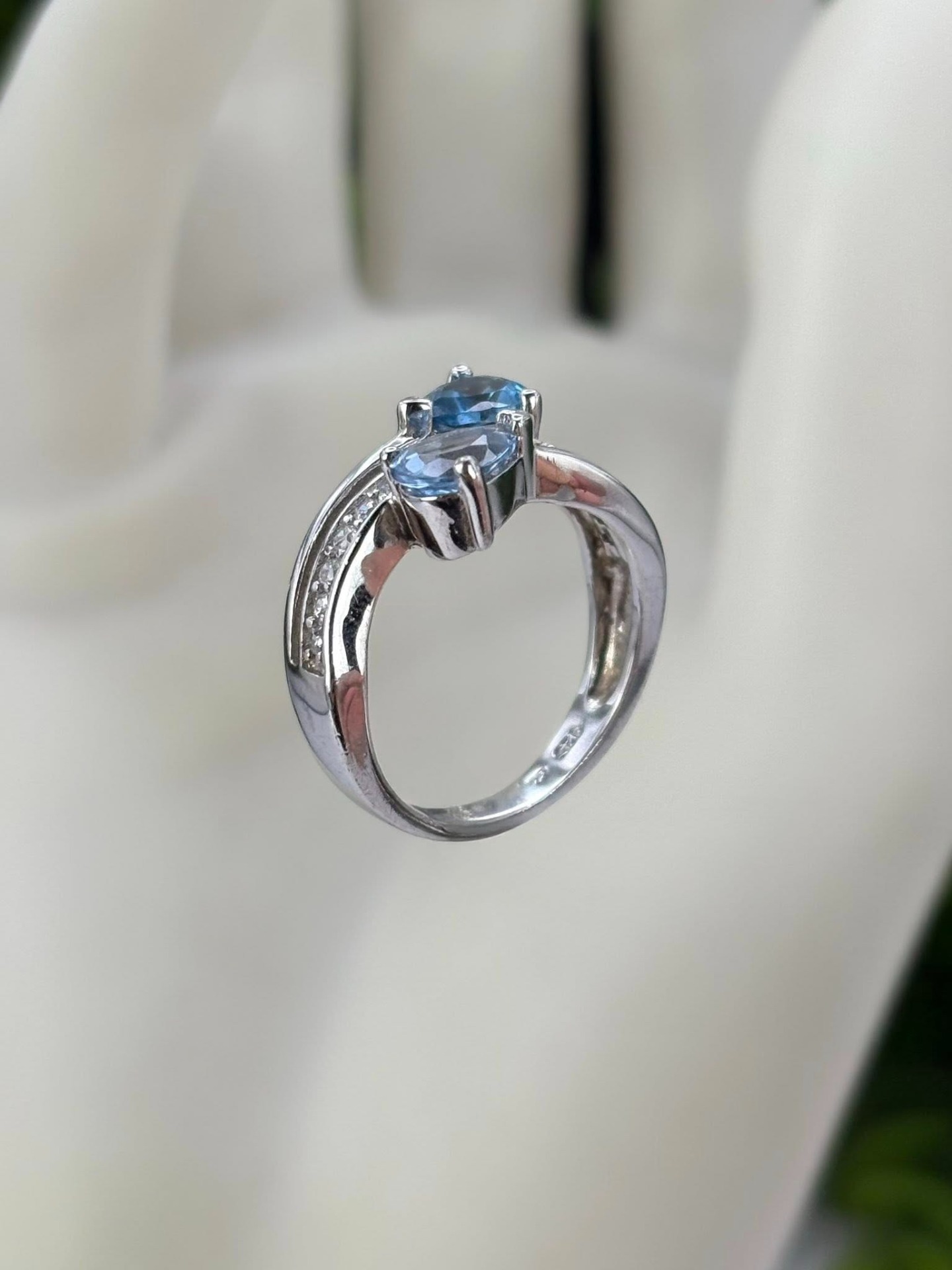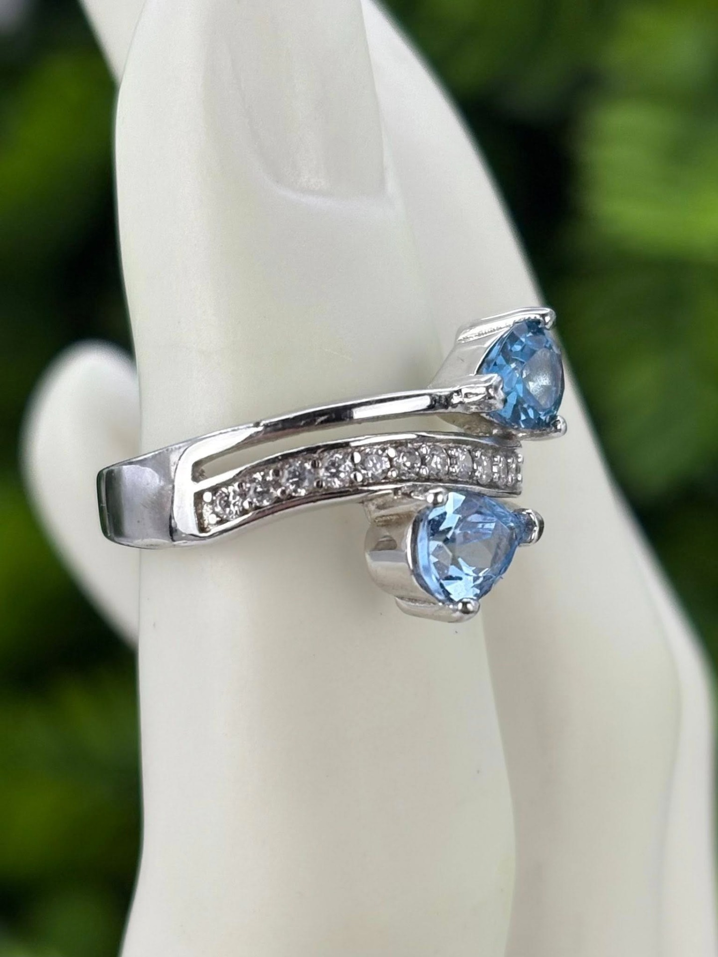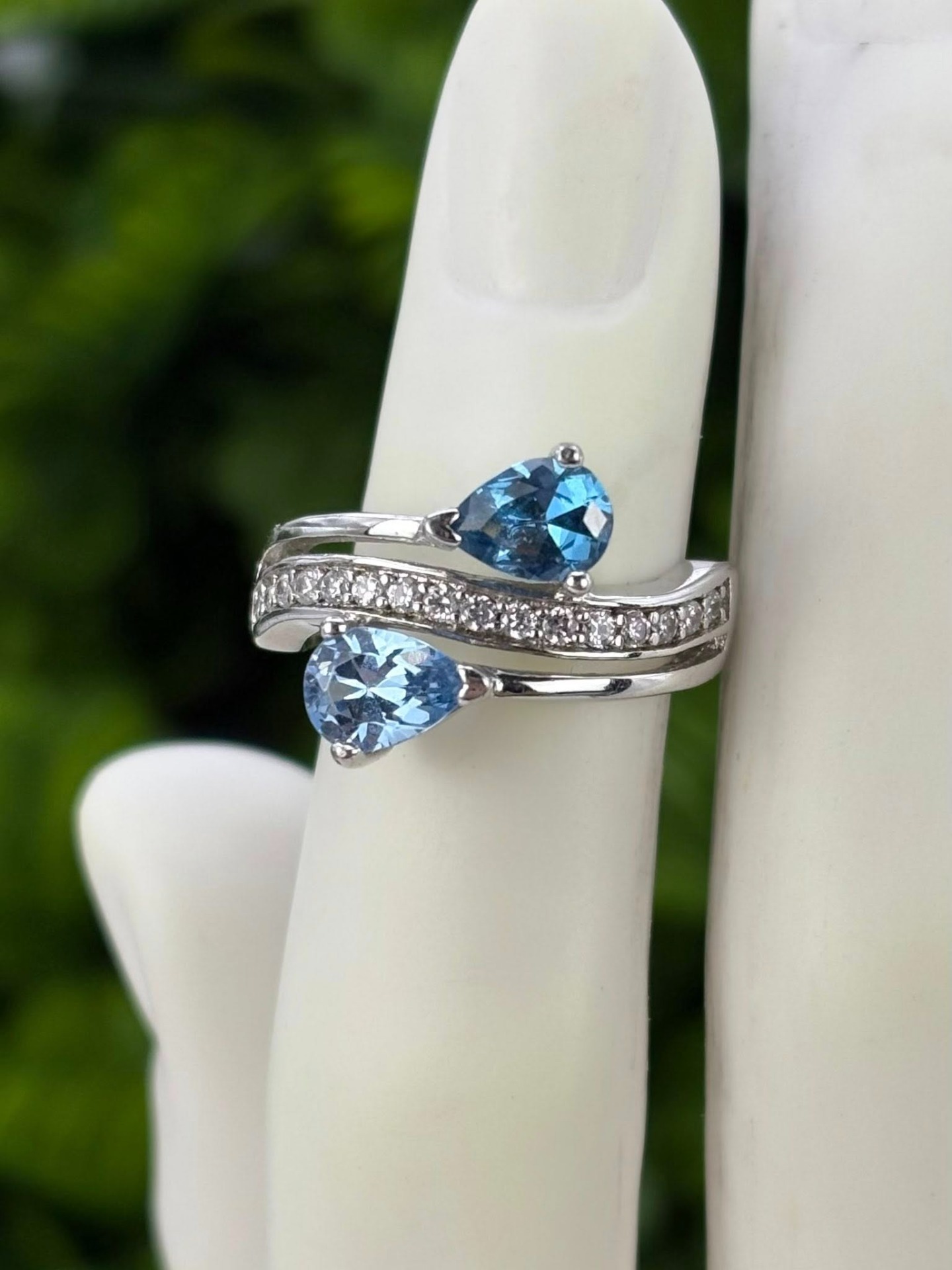 Inel vechi din argint, cu 2 topaze naturale superbe și pietre cubic zirconia.