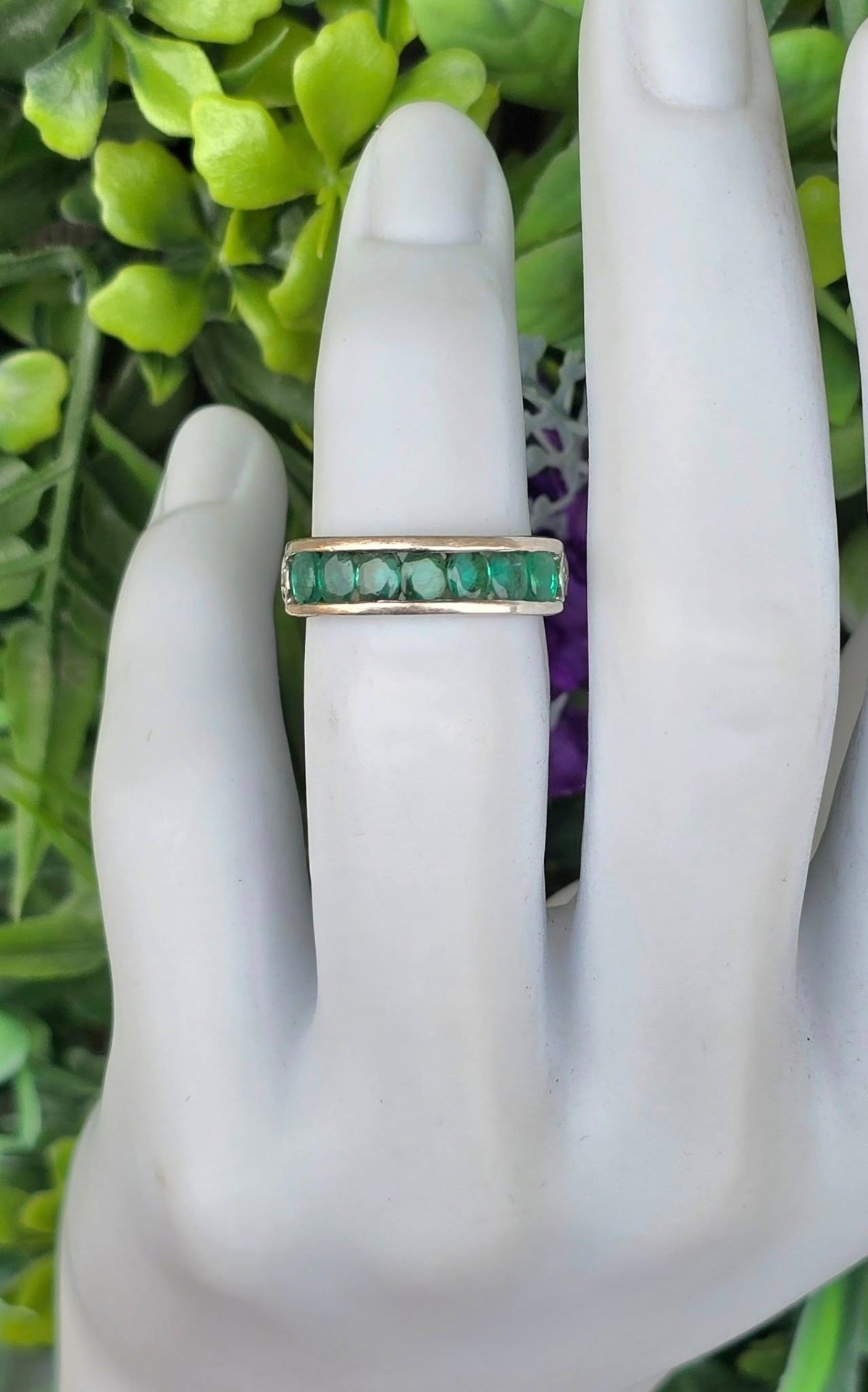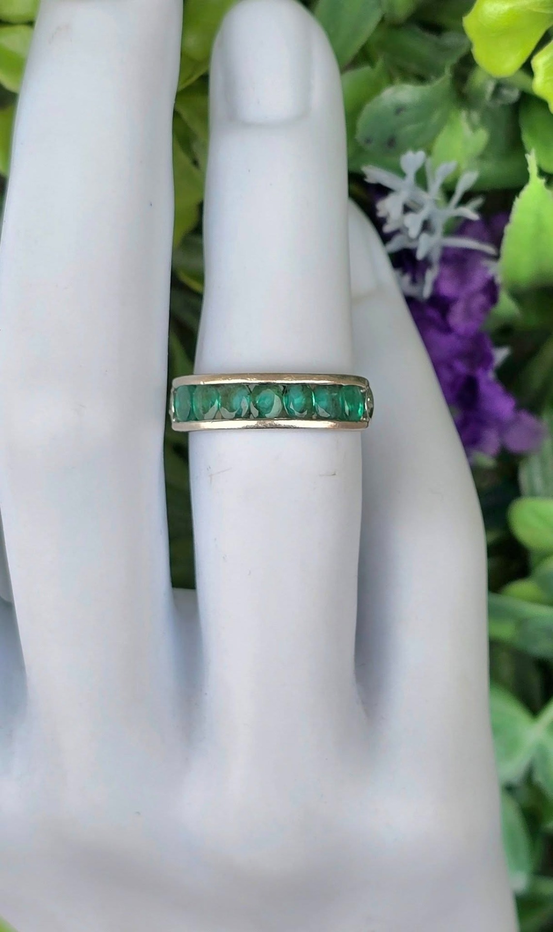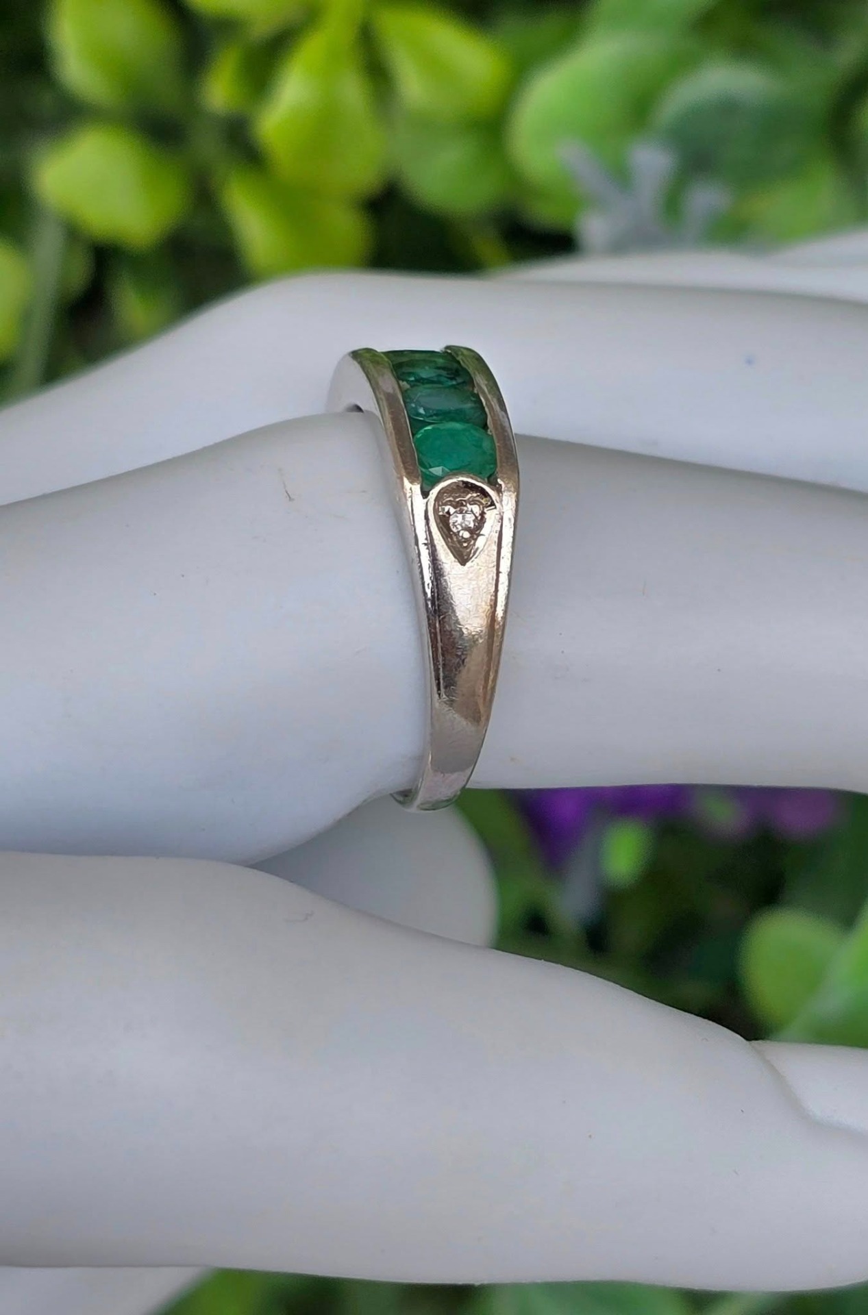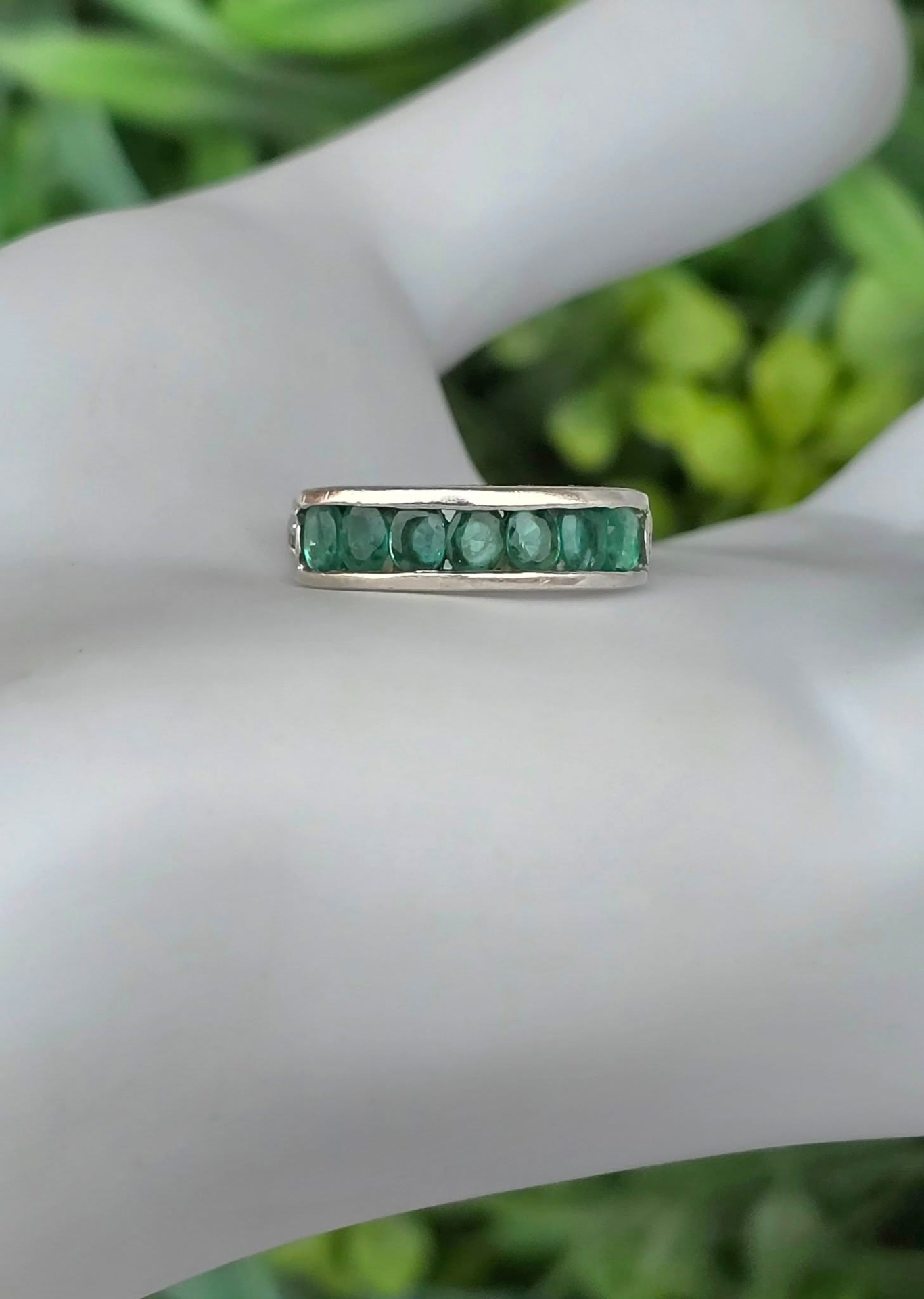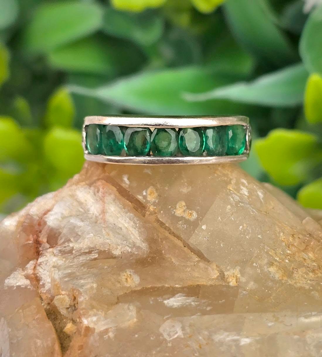 Inel vechi din argint, cu 7 smaralde naturale.