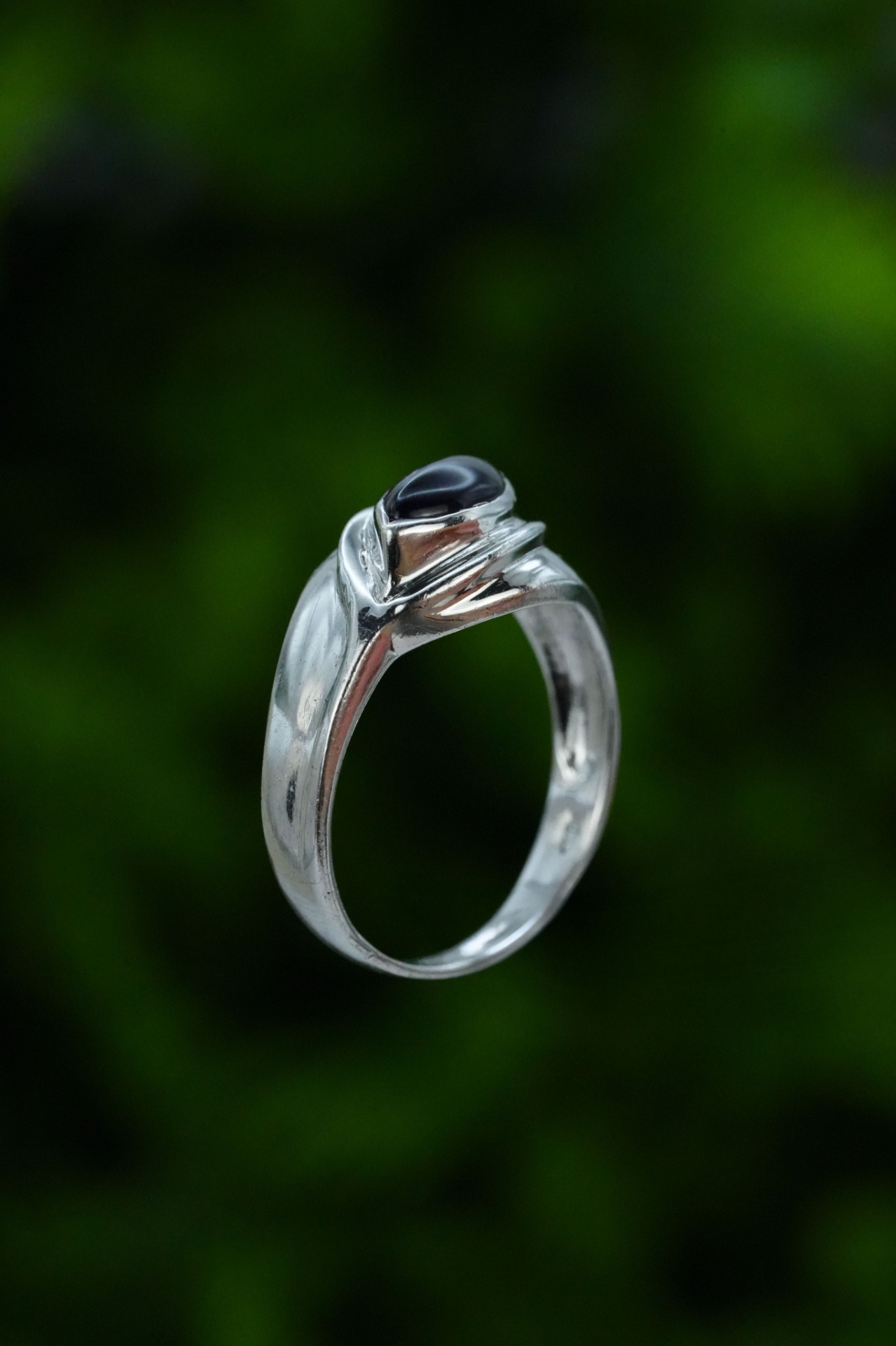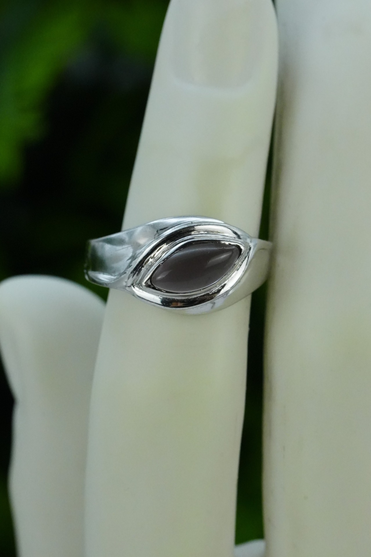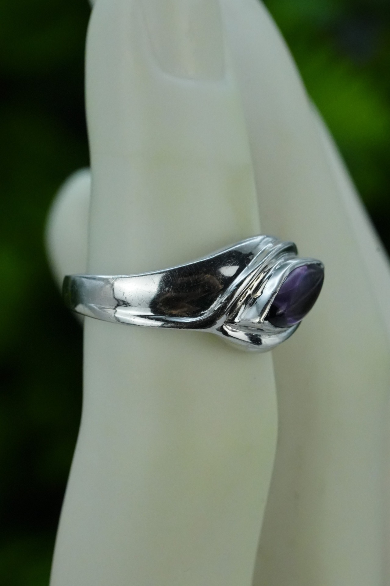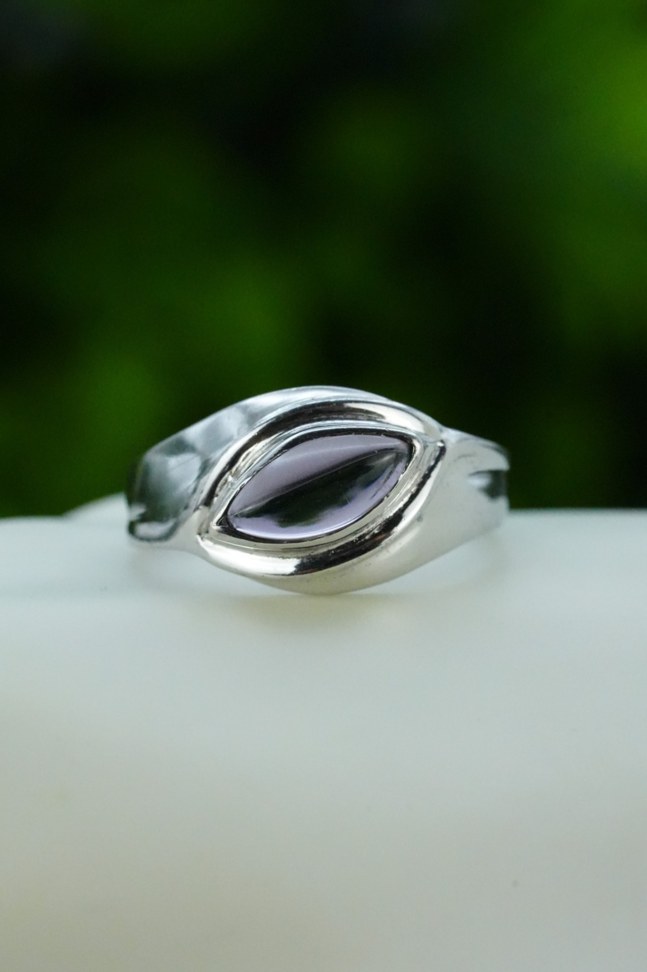 Inel vechi din argint, cu ametist simulat.