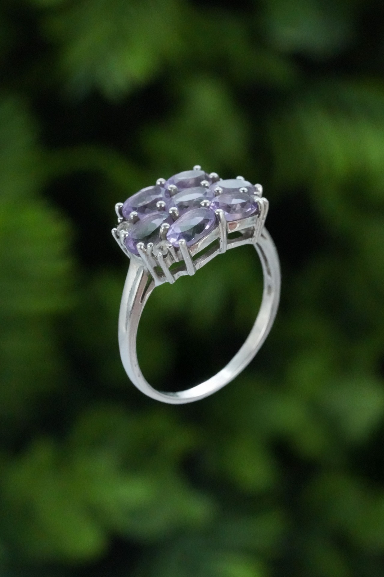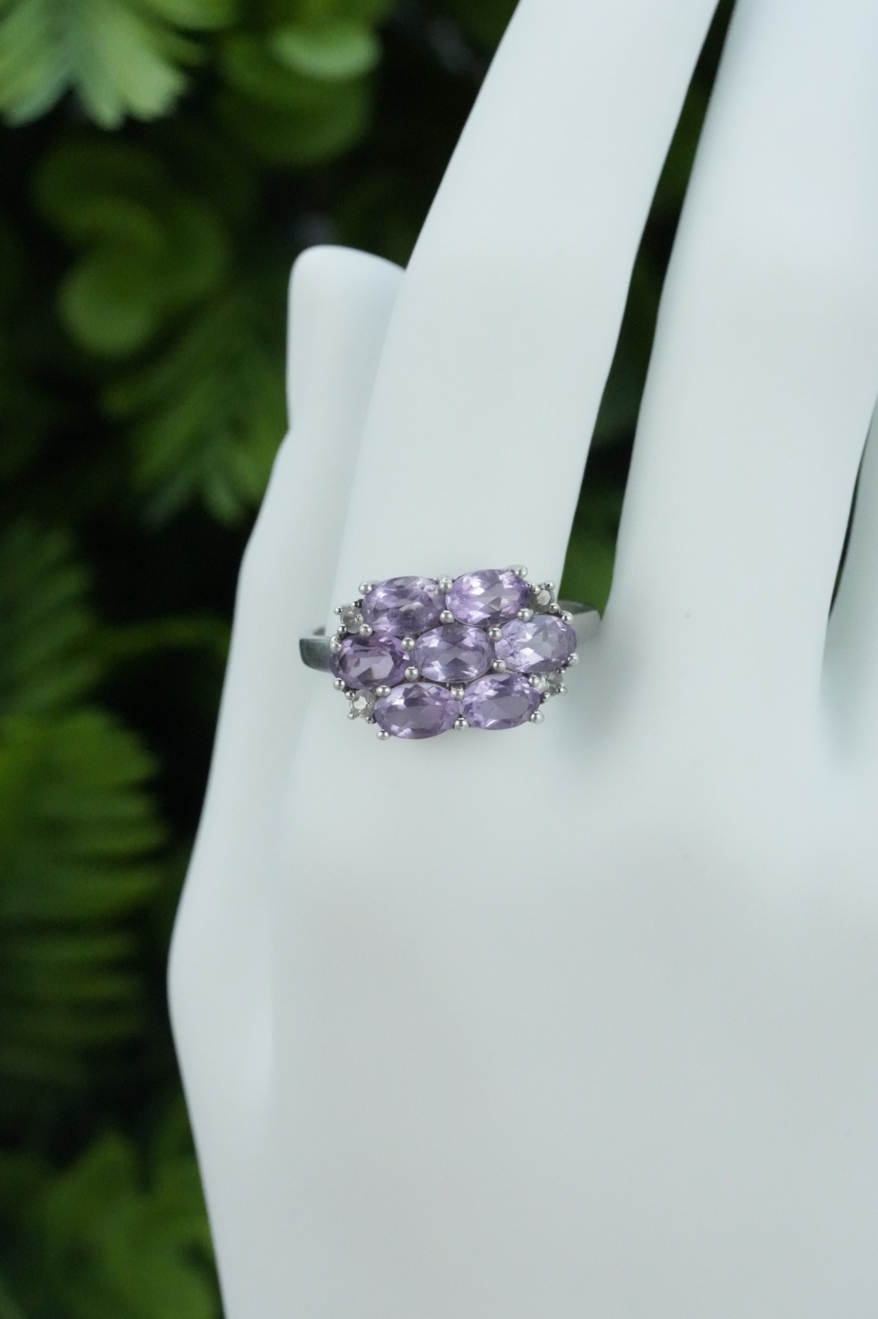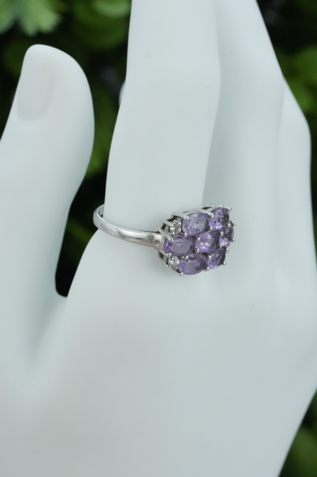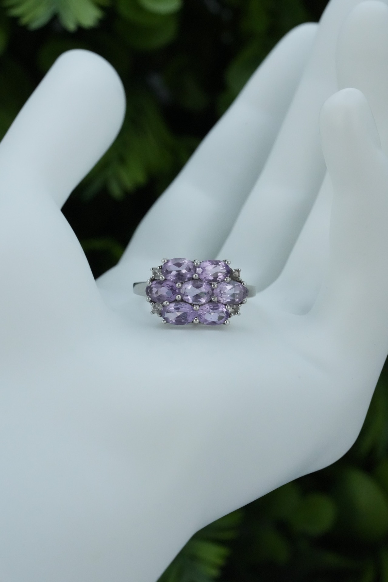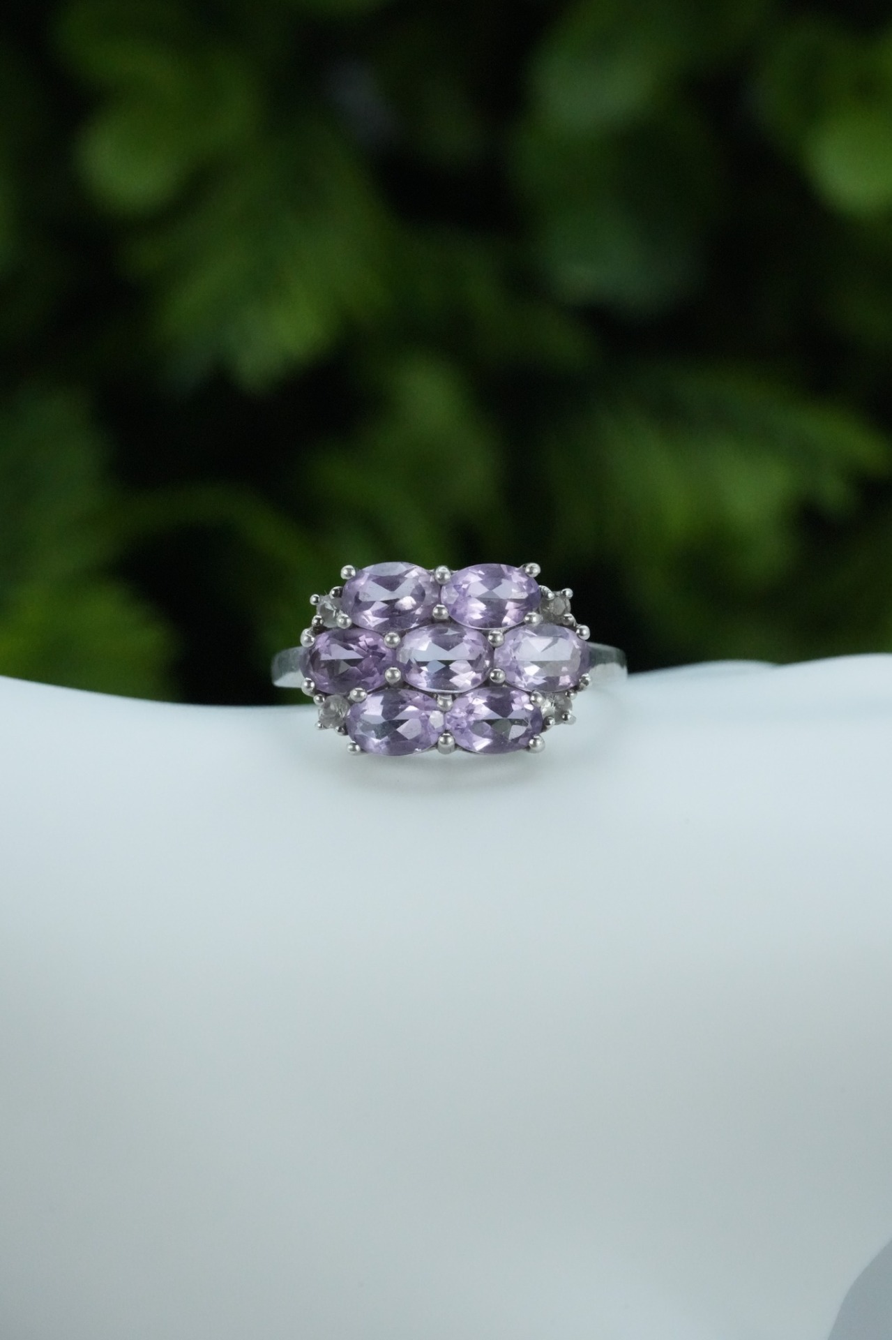 Inel vechi din argint, cu ametiste și topaze naturale.