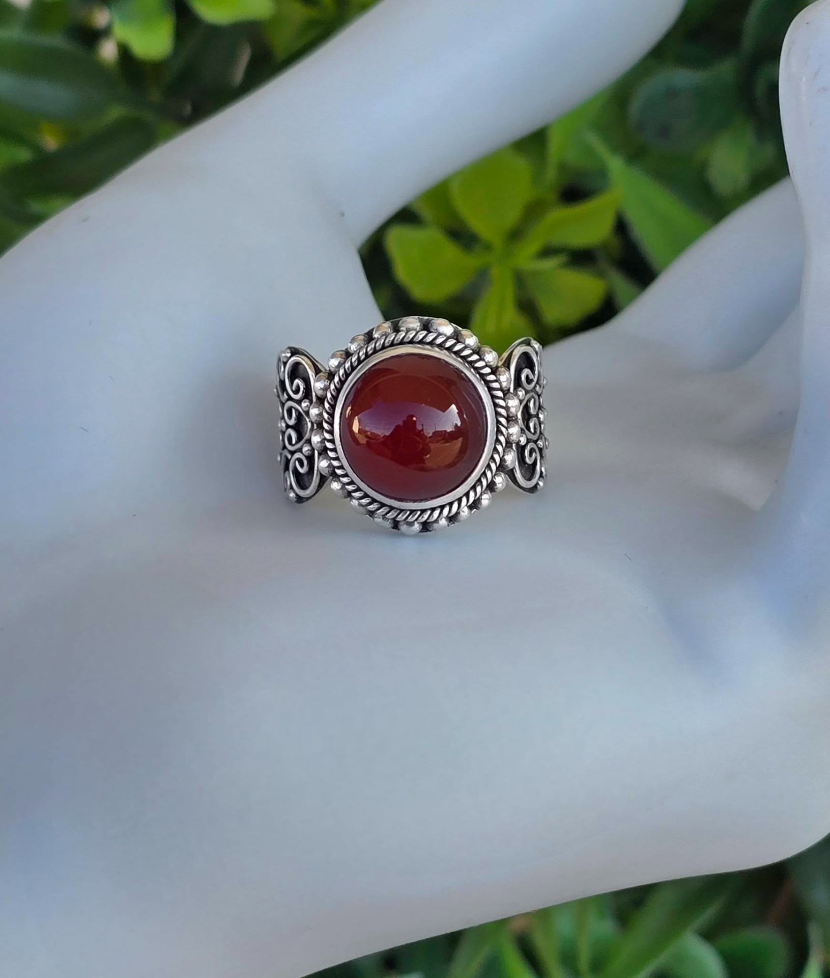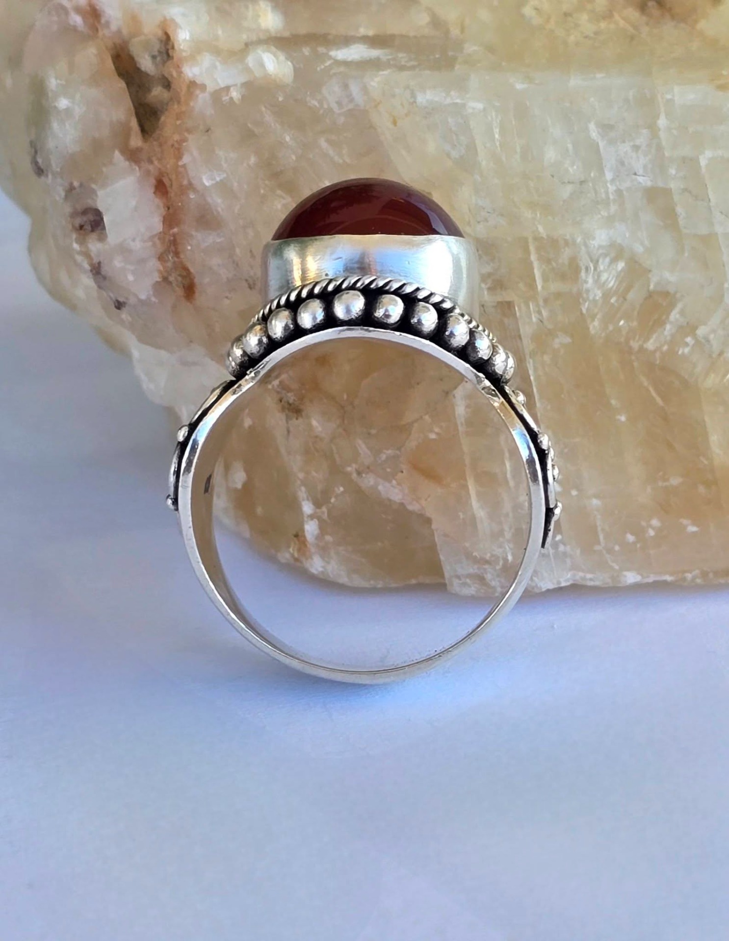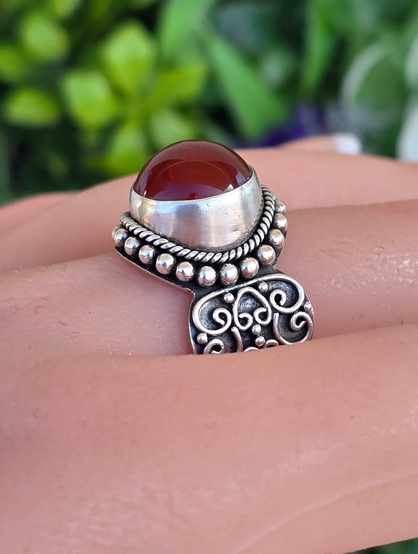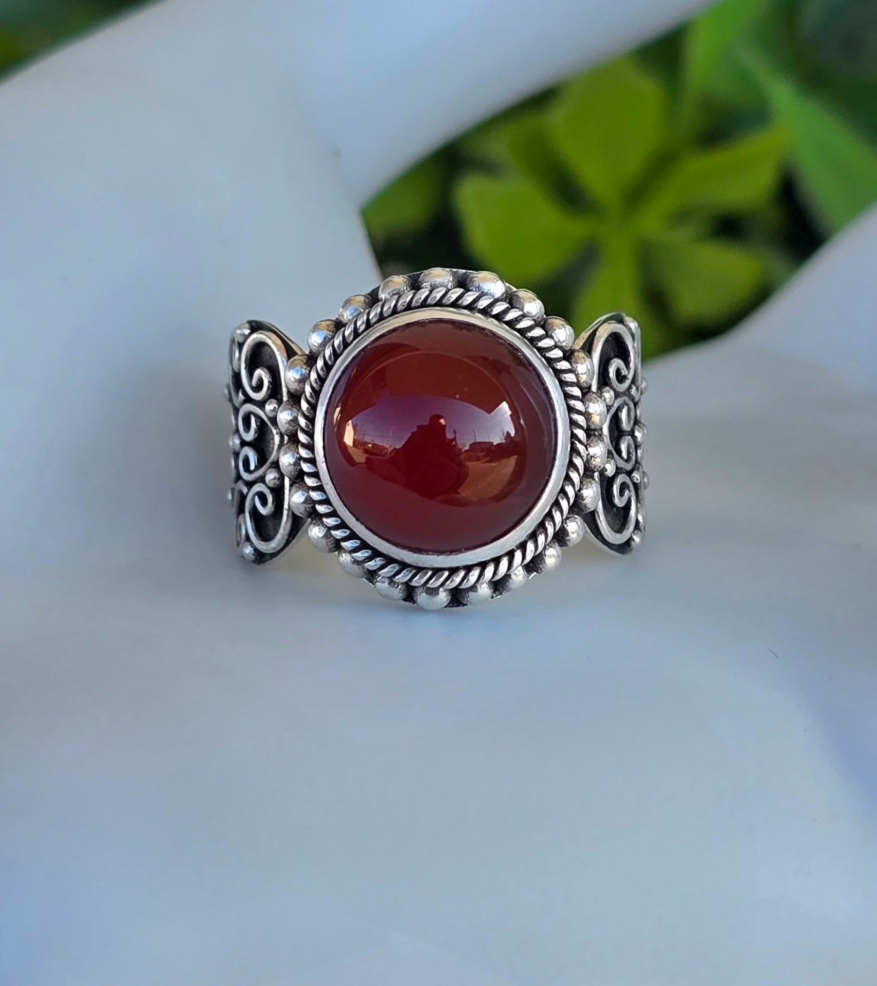 Inel vechi din argint, cu carneol natural.