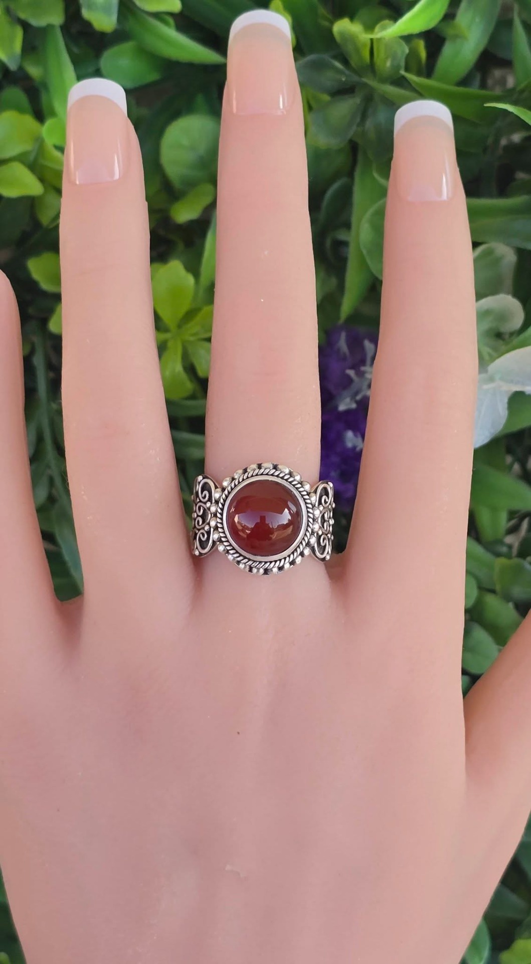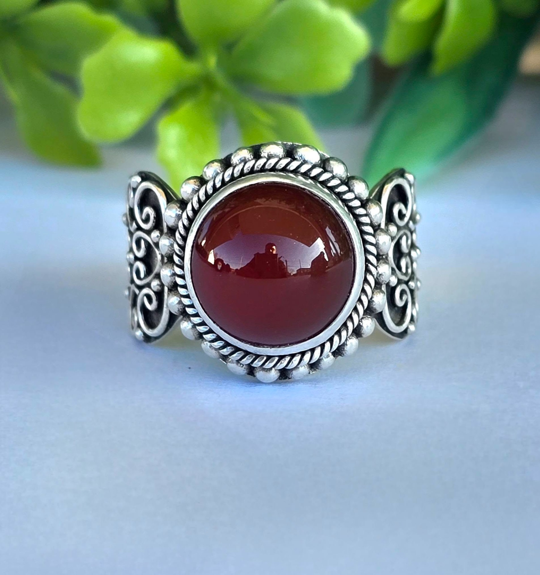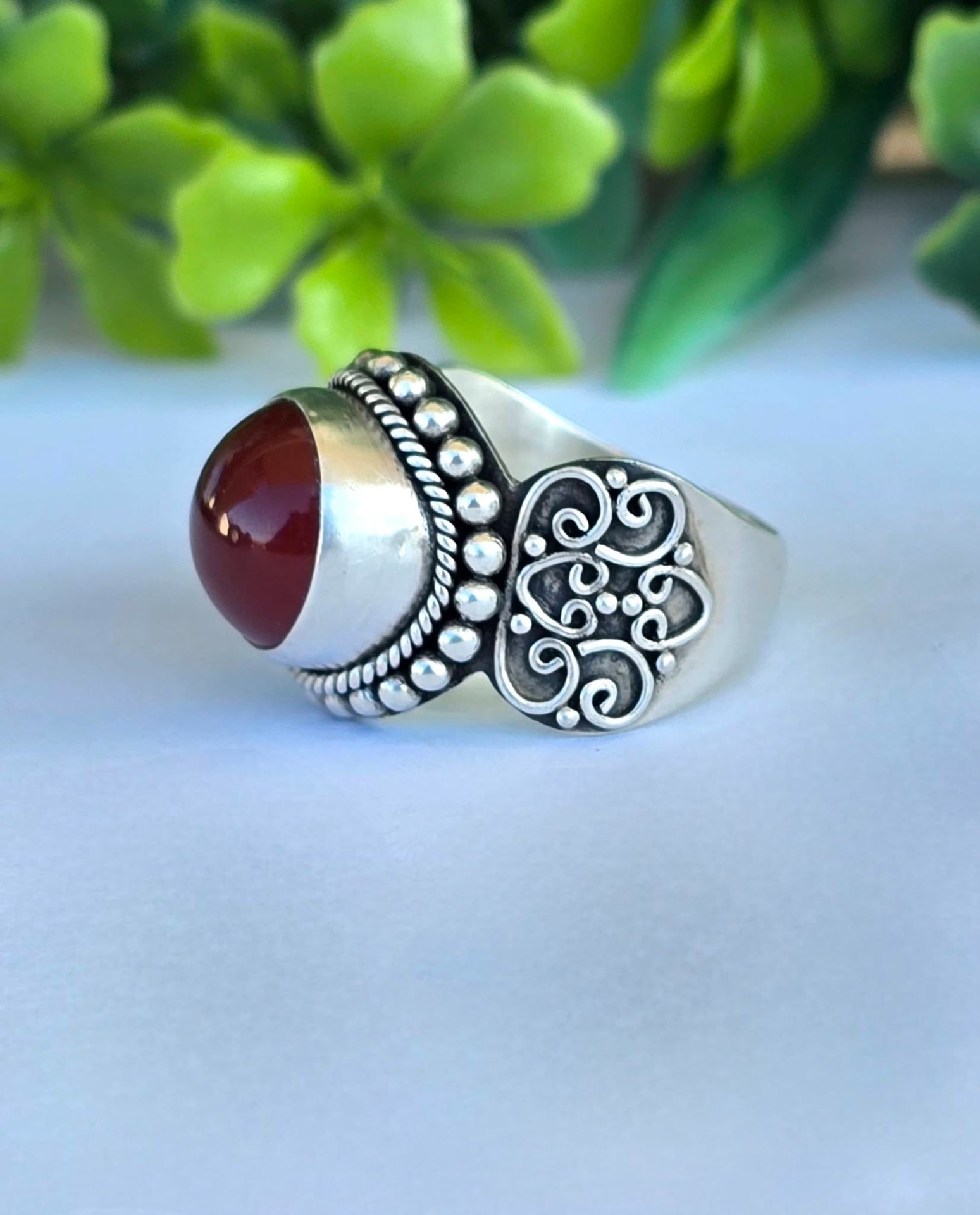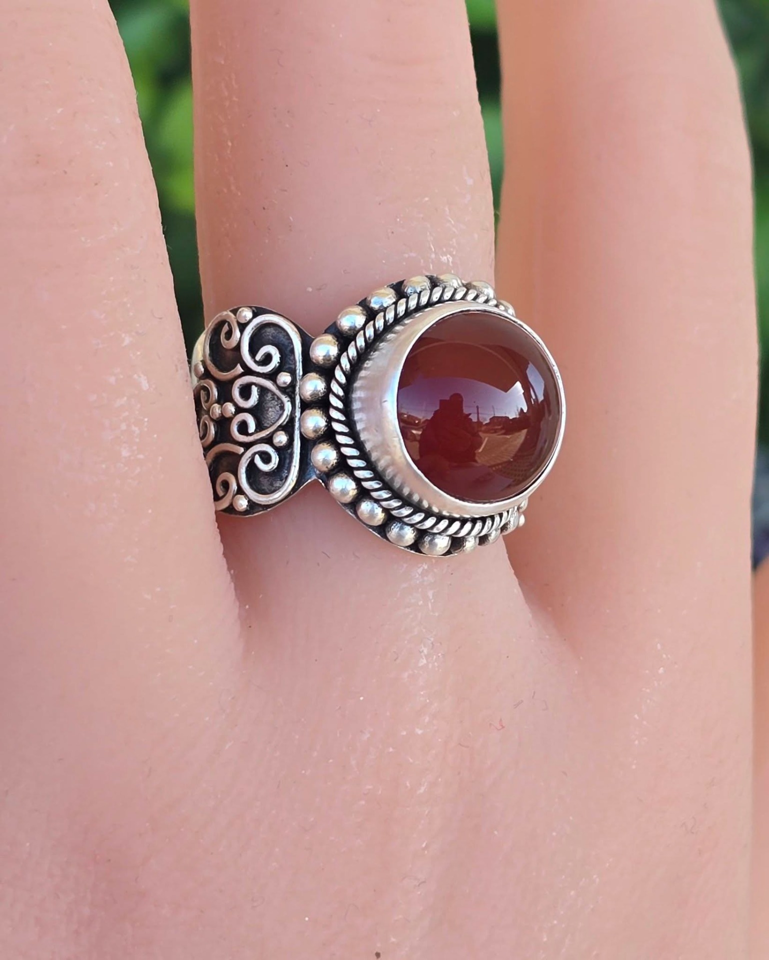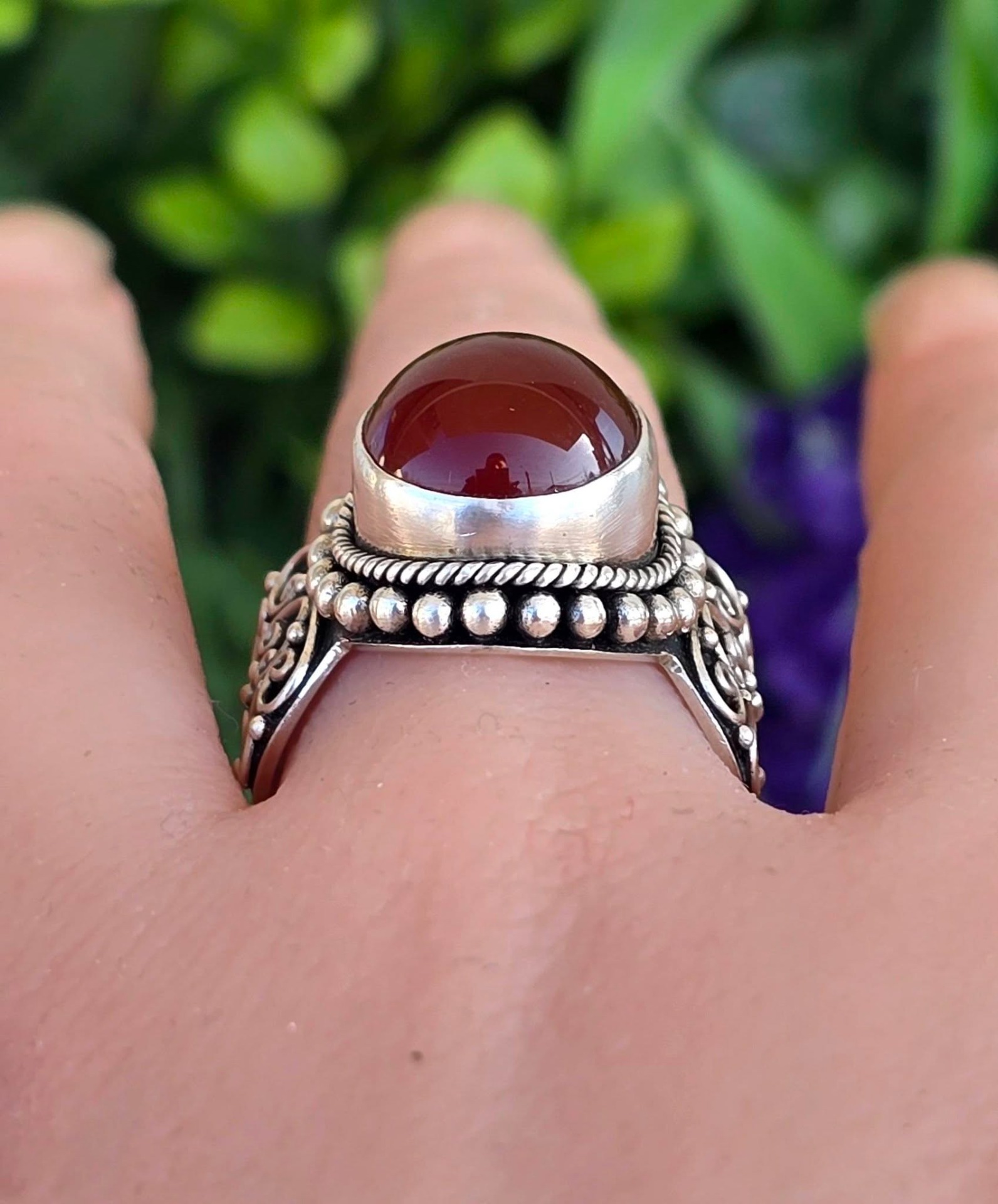 Inel vechi din argint, cu carneol natural.